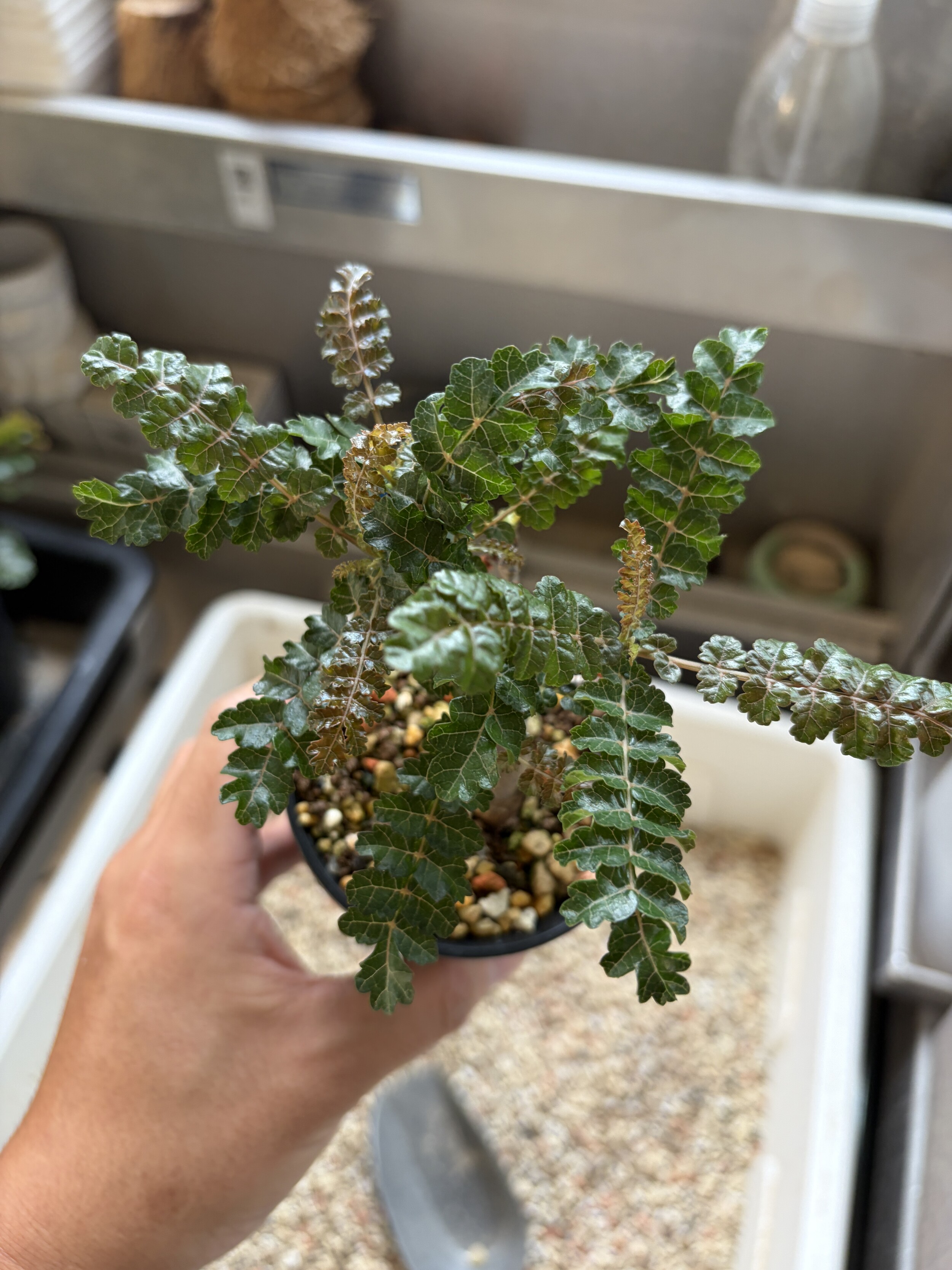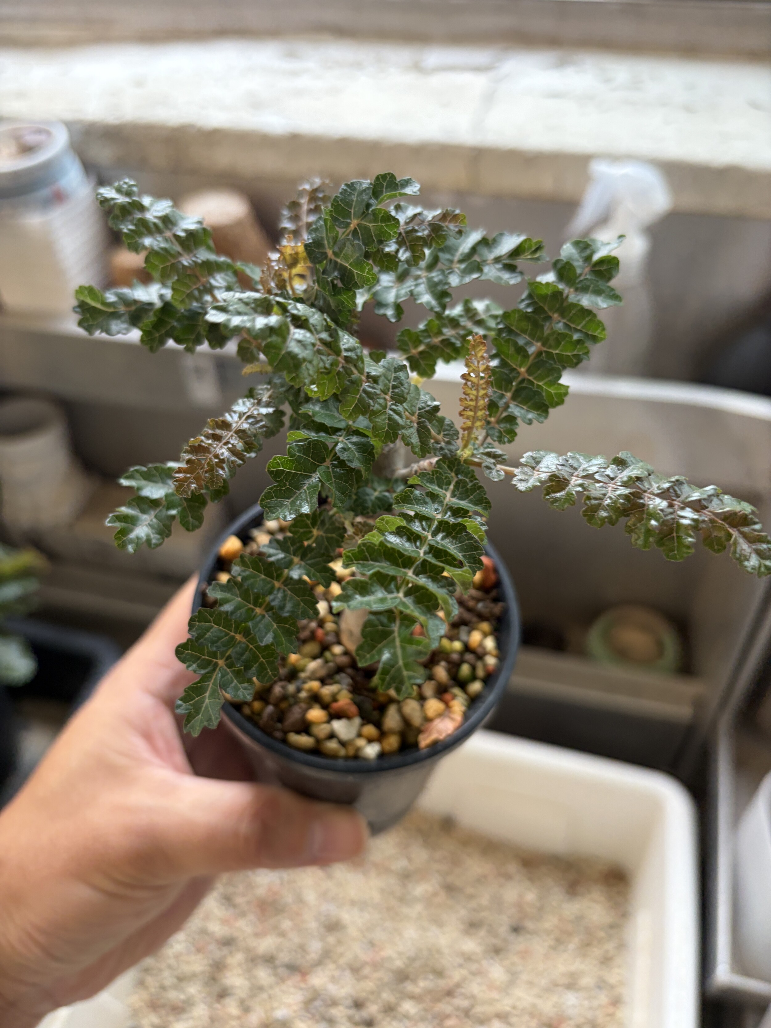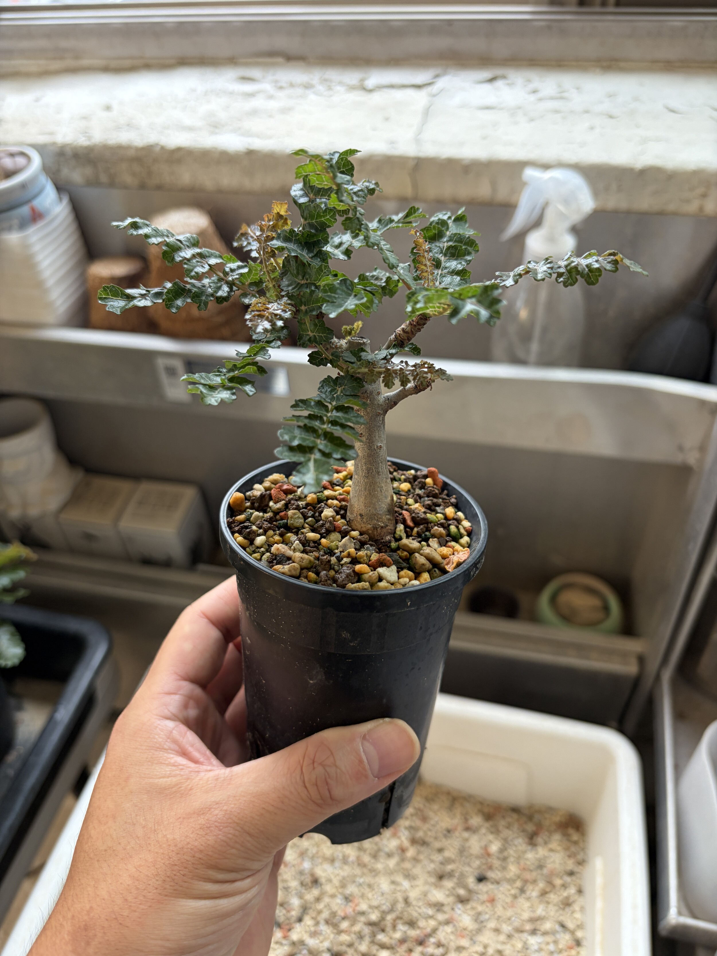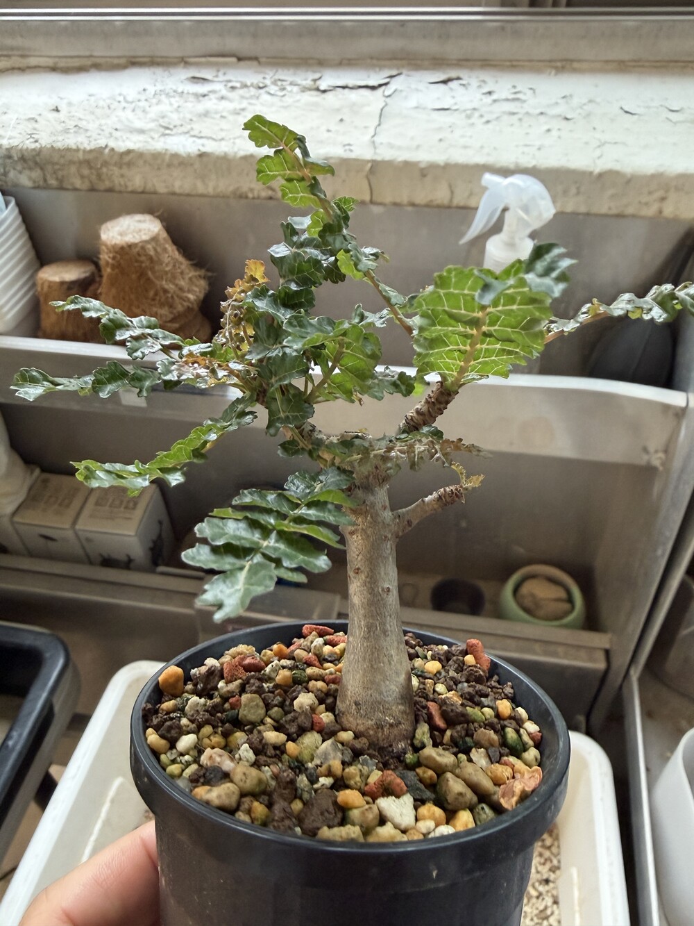 'Caudex' 식물들은 늦가을부터 자연스럽게 잎이 떨어집니다. (환경에 따라 잎이 지지 않을 수 있습니다.) 잎이 떨어지기 시작하면 서서히 물을 줄여나가며 휴면기인 겨울 동안에는 2-3주 1회 가볍게 분무 해주시면 됩니다.