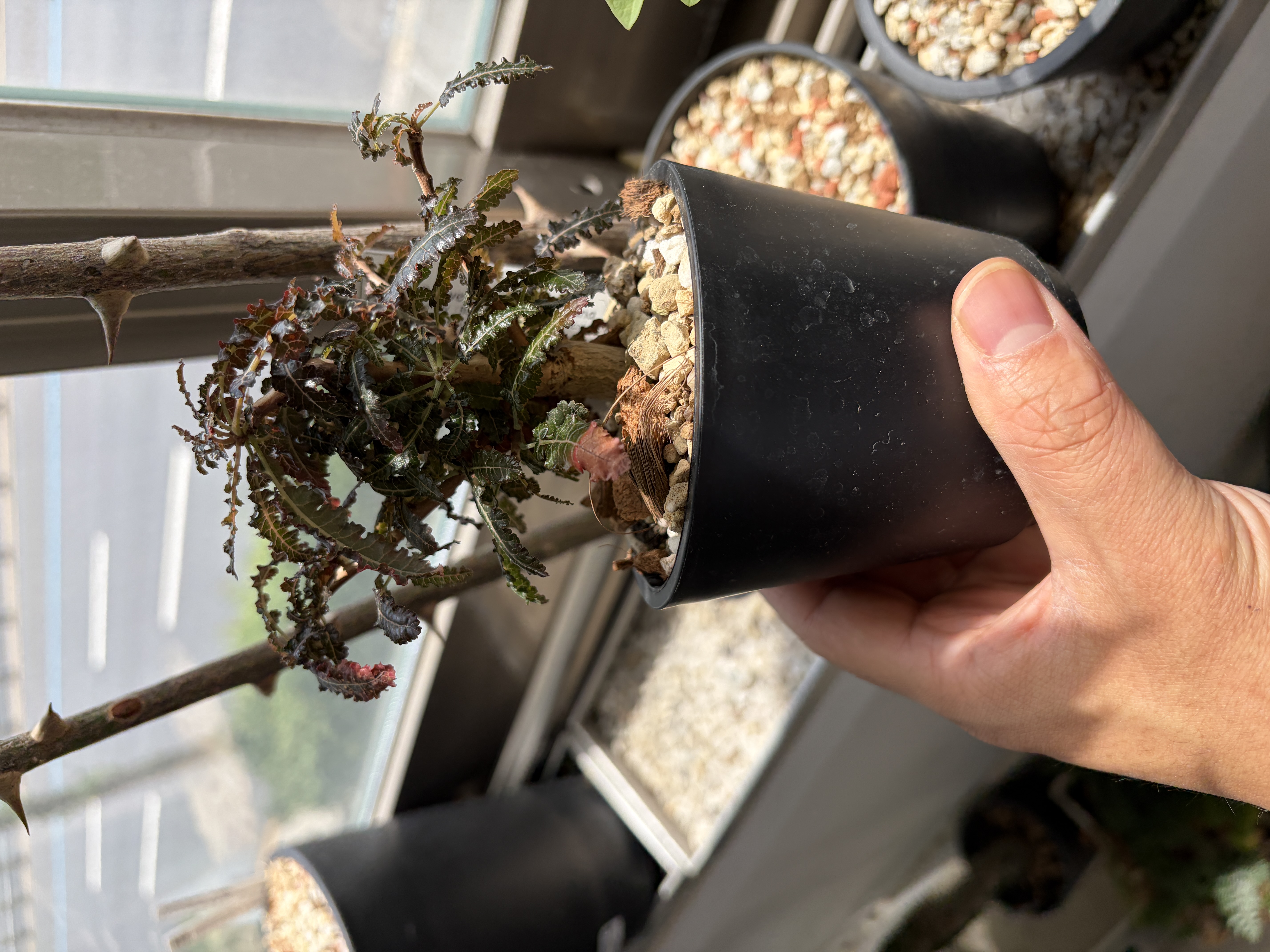 'Caudex' 식물들은 늦가을부터 자연스럽게 잎이 떨어집니다. (환경에 따라 잎이 지지 않을 수 있습니다.) 잎이 떨어지기 시작하면 서서히 물을 줄여나가며 휴면기인 겨울 동안에는 2-3주 1회 가볍게 분무 해주시면 됩니다.