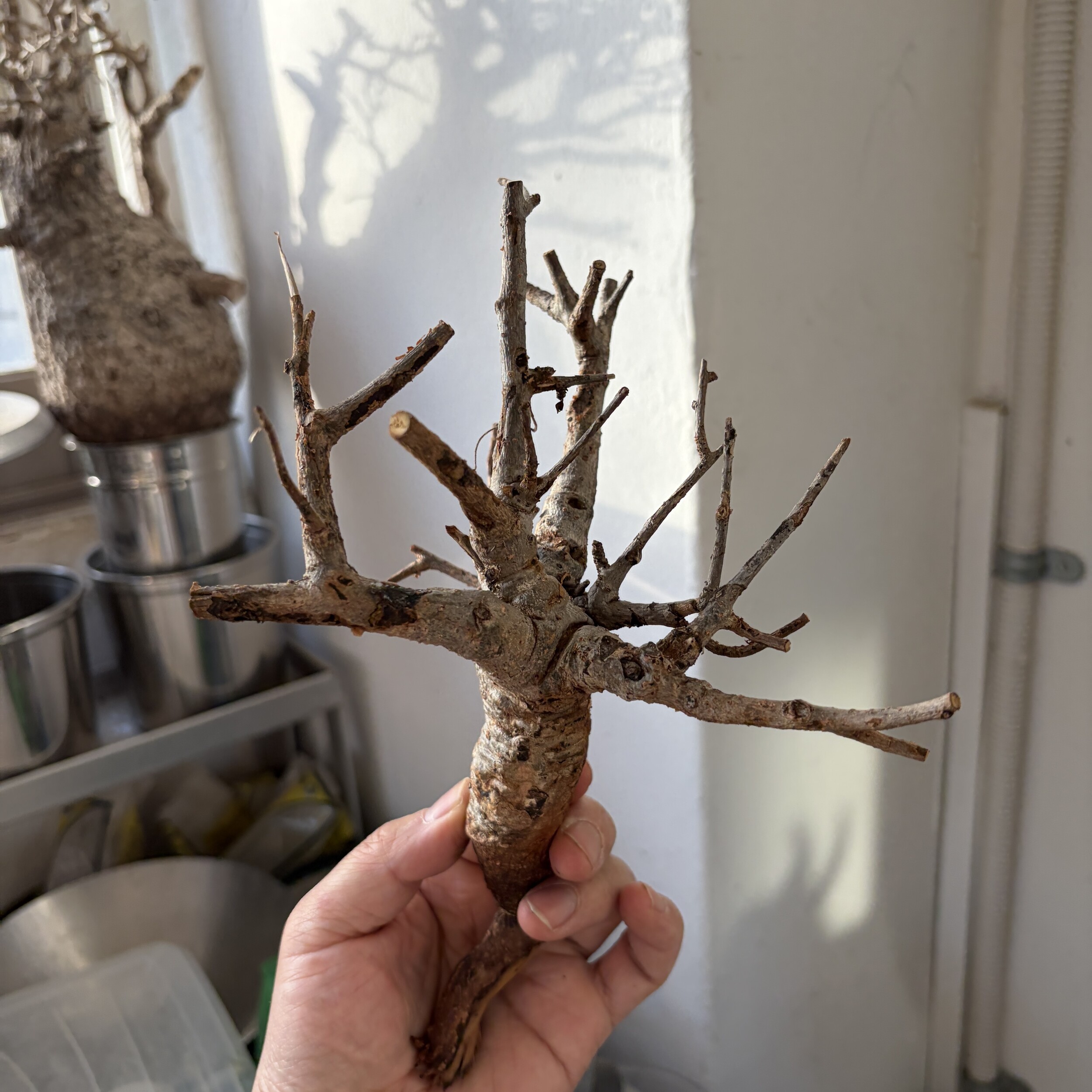 'Caudex' 식물들은 늦가을부터 자연스럽게 잎이 떨어집니다. (환경에 따라 잎이 지지 않을 수 있습니다.) 잎이 떨어지기 시작하면 서서히 물을 줄여나가며 휴면기인 겨울 동안에는 2-3주 1회 가볍게 분무 해주시면 됩니다.