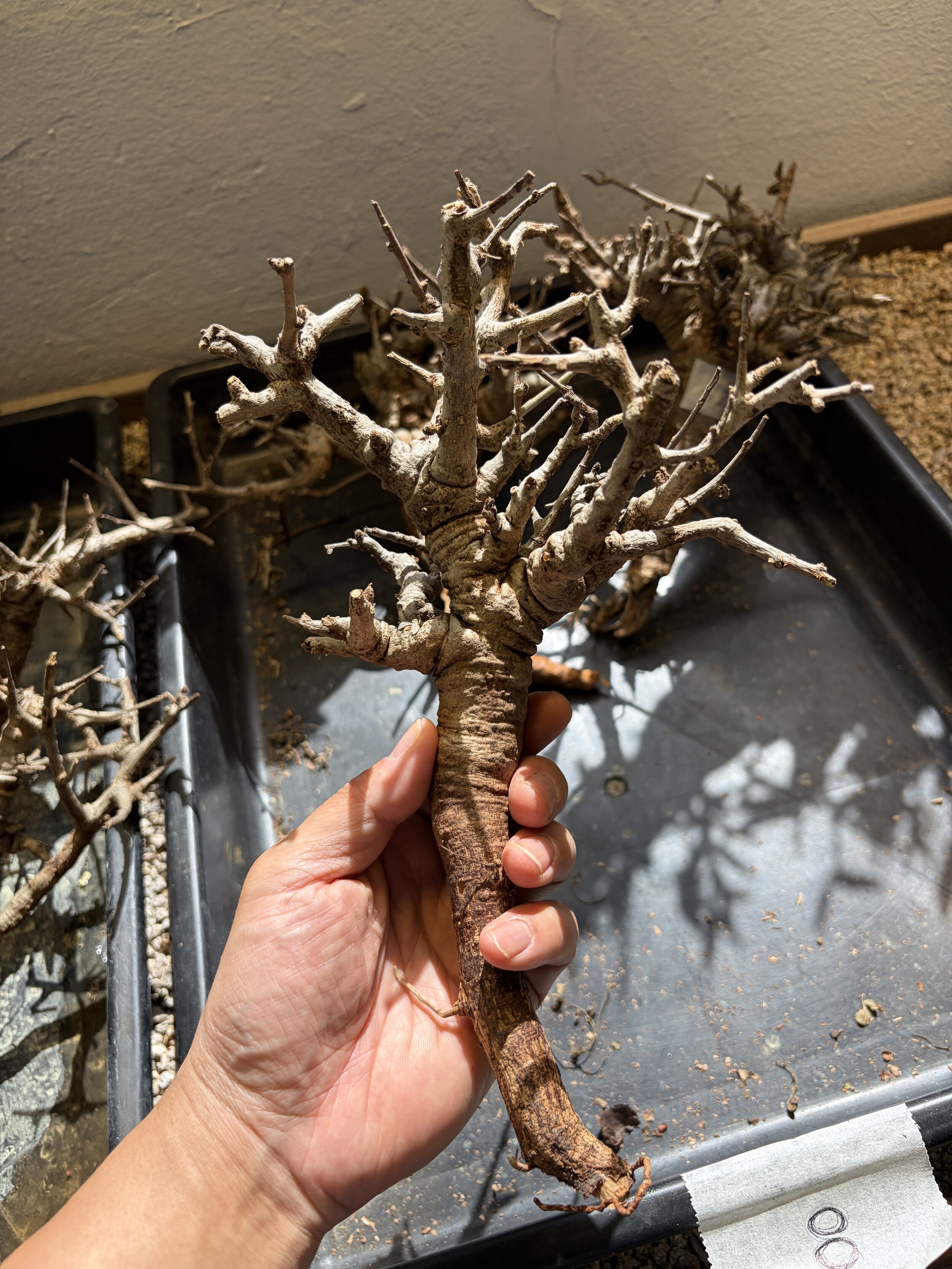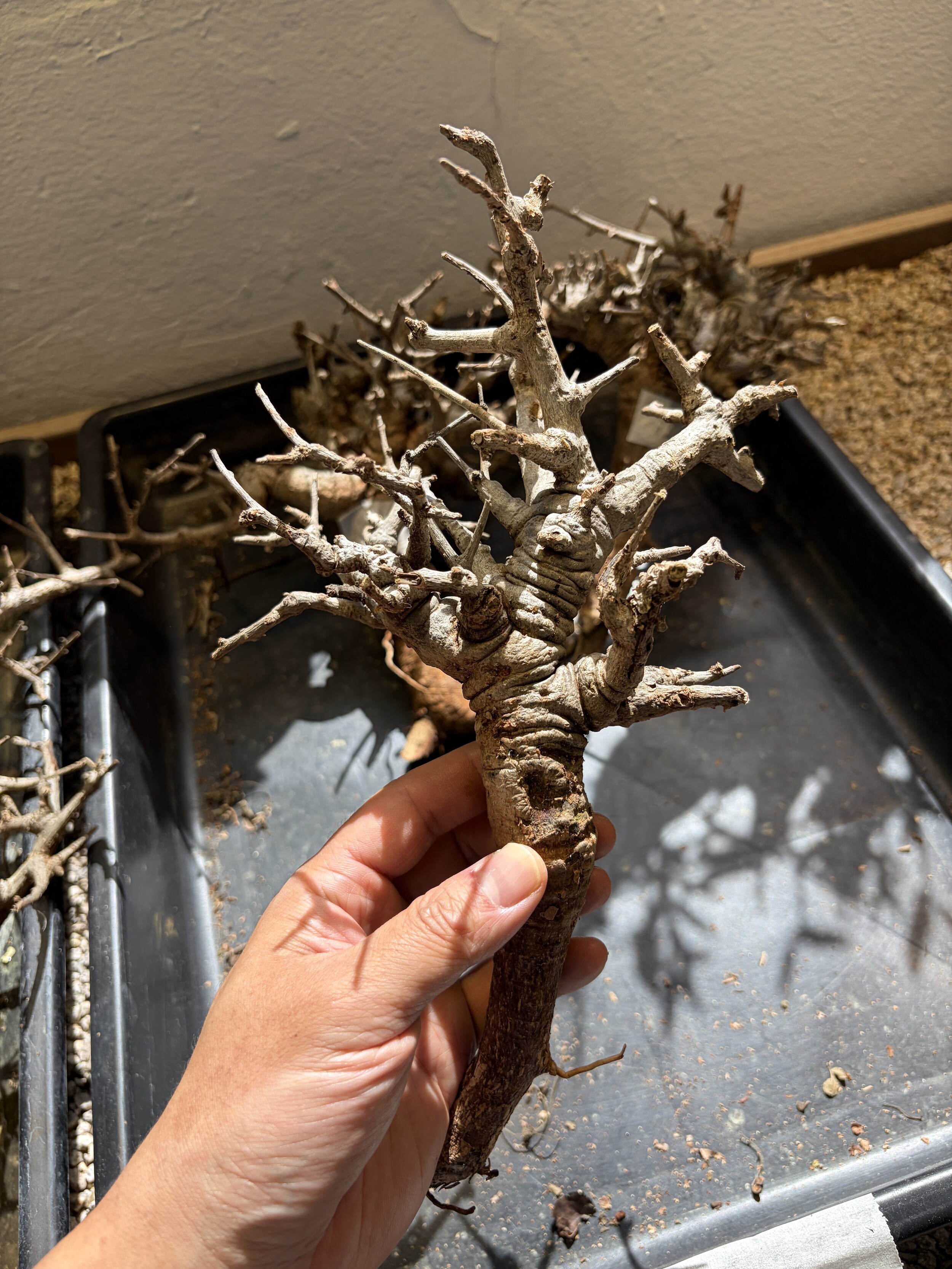 'Caudex' 식물들은 늦가을부터 자연스럽게 잎이 떨어집니다. (환경에 따라 잎이 지지 않을 수 있습니다.) 잎이 떨어지기 시작하면 서서히 물을 줄여나가며 휴면기인 겨울 동안에는 2-3주 1회 가볍게 분무 해주시면 됩니다.