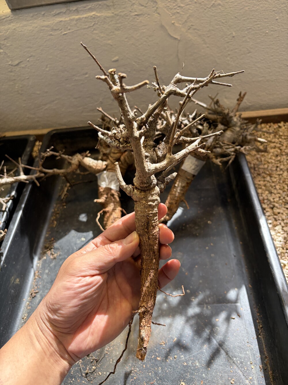 'Caudex' 식물들은 늦가을부터 자연스럽게 잎이 떨어집니다. (환경에 따라 잎이 지지 않을 수 있습니다.) 잎이 떨어지기 시작하면 서서히 물을 줄여나가며 휴면기인 겨울 동안에는 2-3주 1회 가볍게 분무 해주시면 됩니다.