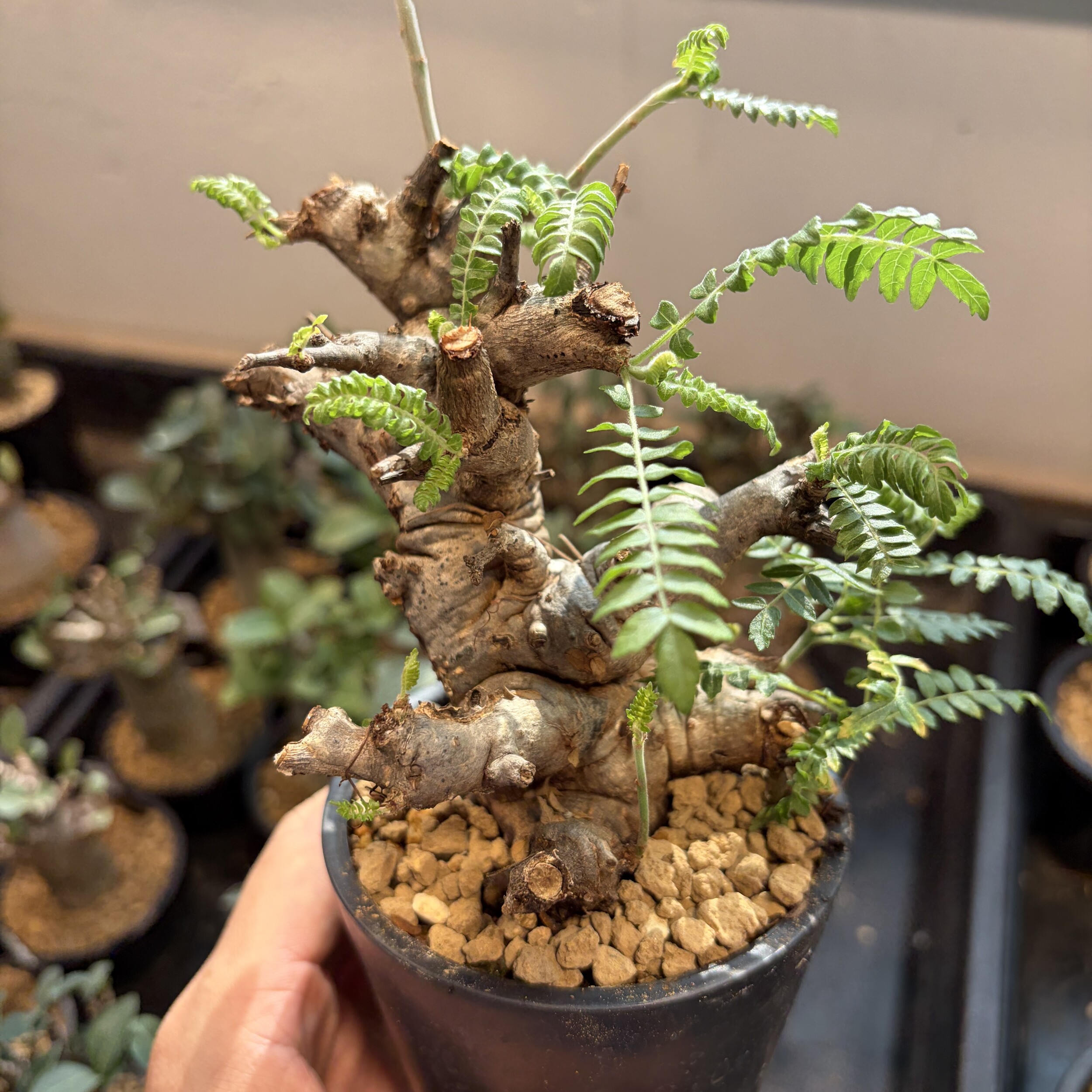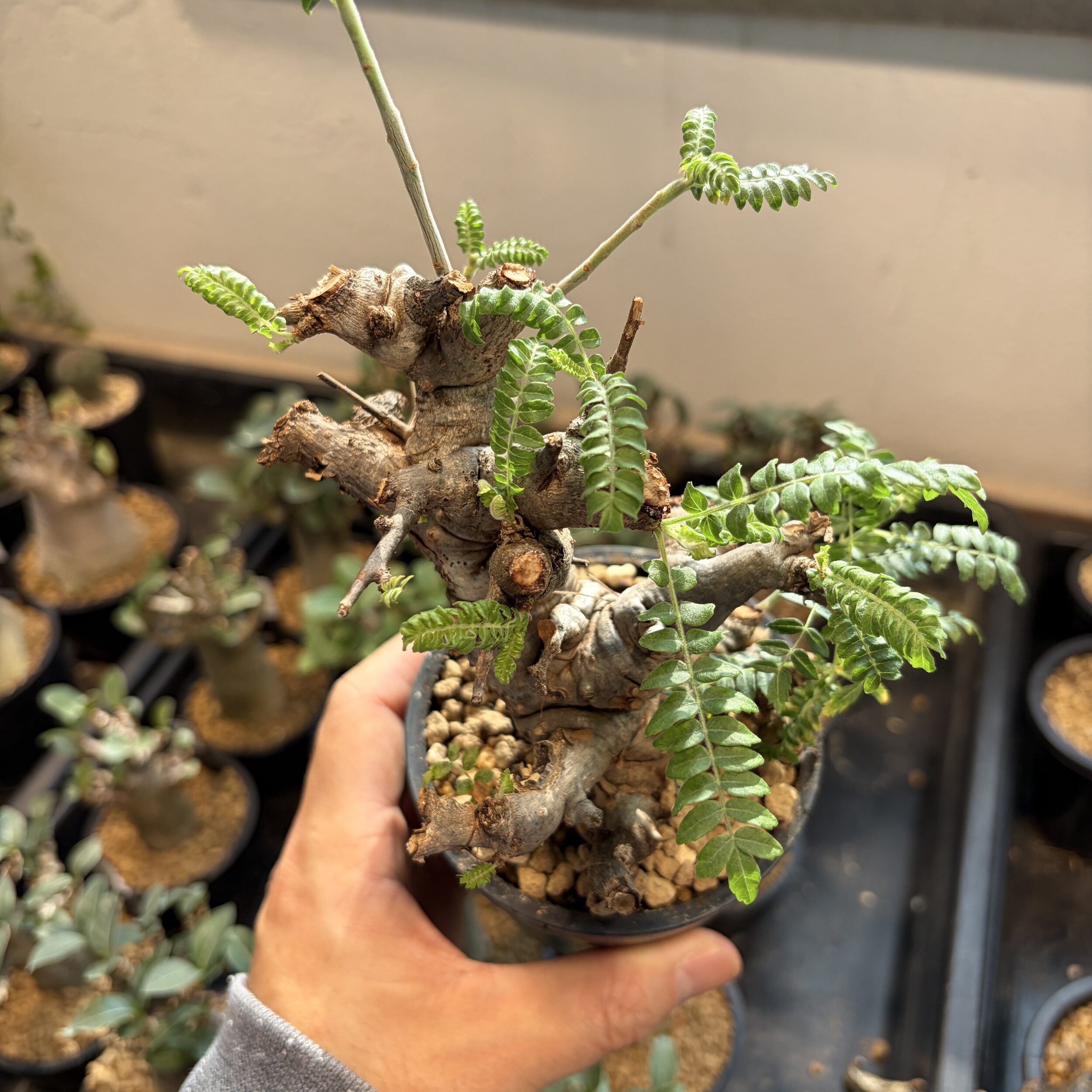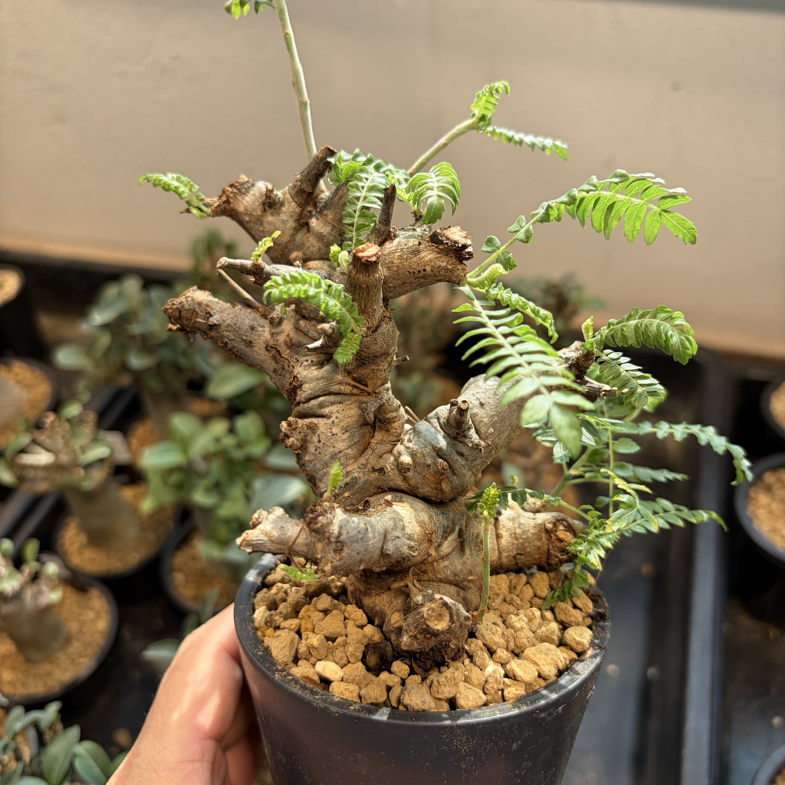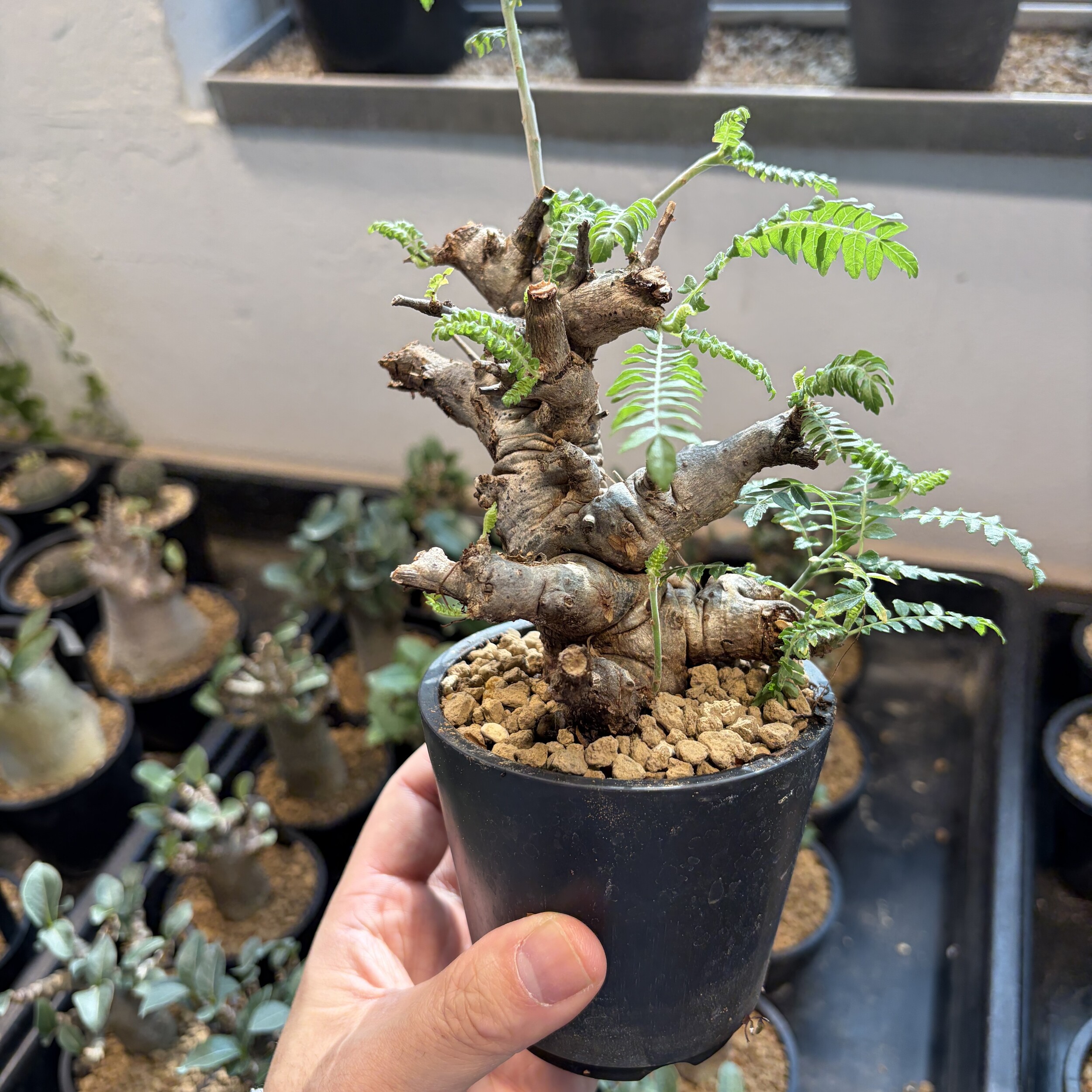 'Caudex' 식물들은 늦가을부터 자연스럽게 잎이 떨어집니다. (환경에 따라 잎이 지지 않을 수 있습니다.) 잎이 떨어지기 시작하면 서서히 물을 줄여나가며 휴면기인 겨울 동안에는 2-3주 1회 가볍게 분무 해주시면 됩니다.