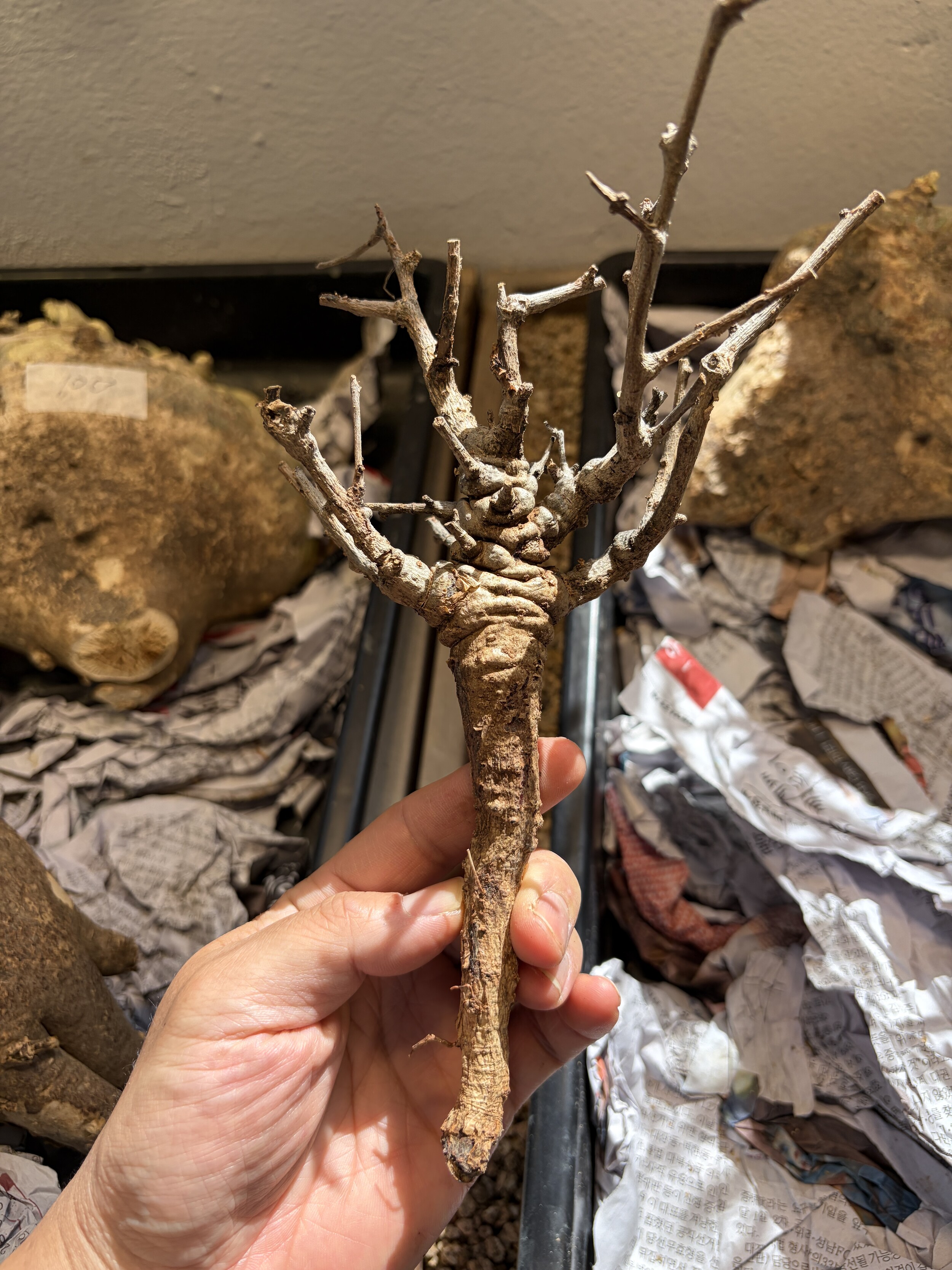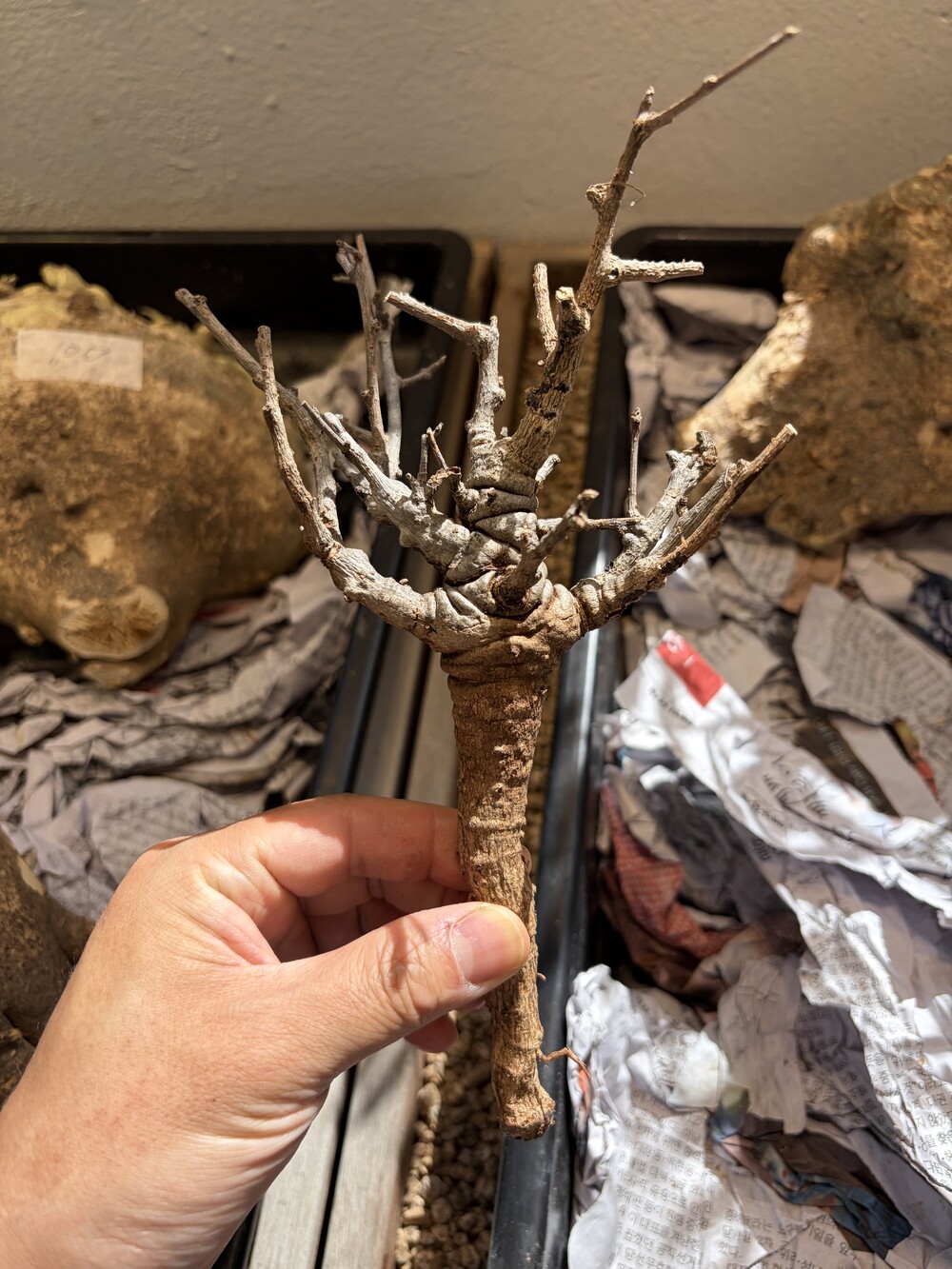 'Caudex' 식물들은 늦가을부터 자연스럽게 잎이 떨어집니다. (환경에 따라 잎이 지지 않을 수 있습니다.) 잎이 떨어지기 시작하면 서서히 물을 줄여나가며 휴면기인 겨울 동안에는 2-3주 1회 가볍게 분무 해주시면 됩니다.