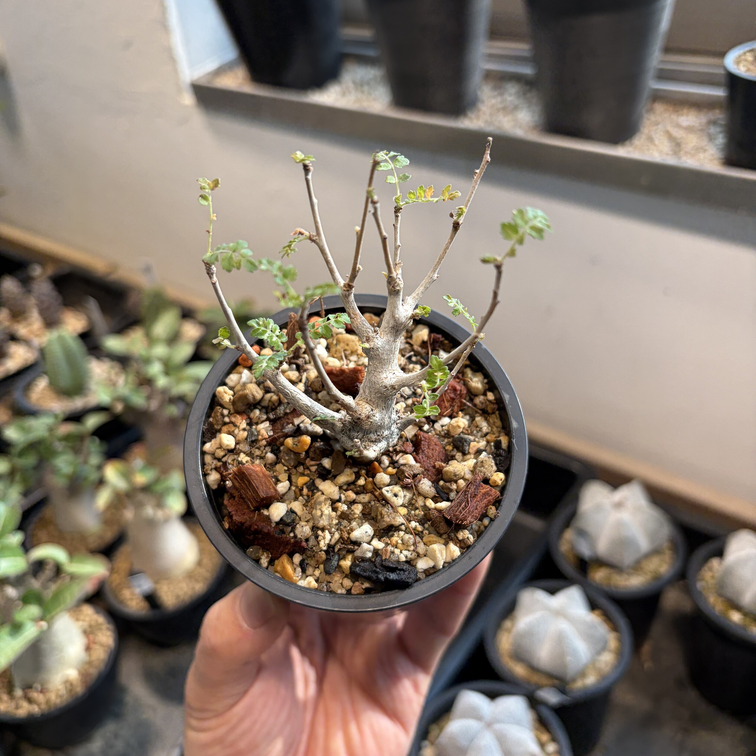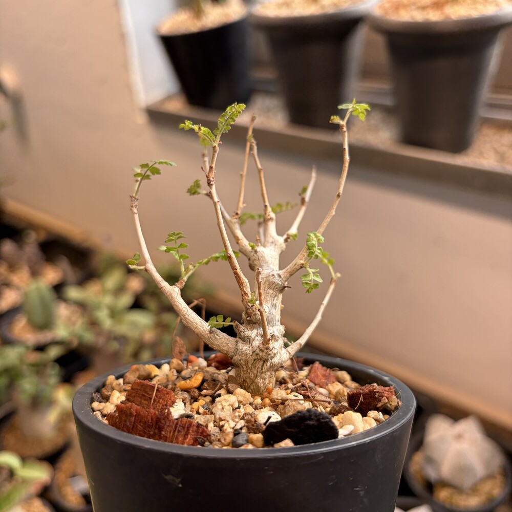 'Caudex' 식물들은 늦가을부터 자연스럽게 잎이 떨어집니다. (환경에 따라 잎이 지지 않을 수 있습니다.) 잎이 떨어지기 시작하면 서서히 물을 줄여나가며 휴면기인 겨울 동안에는 2-3주 1회 가볍게 분무 해주시면 됩니다.