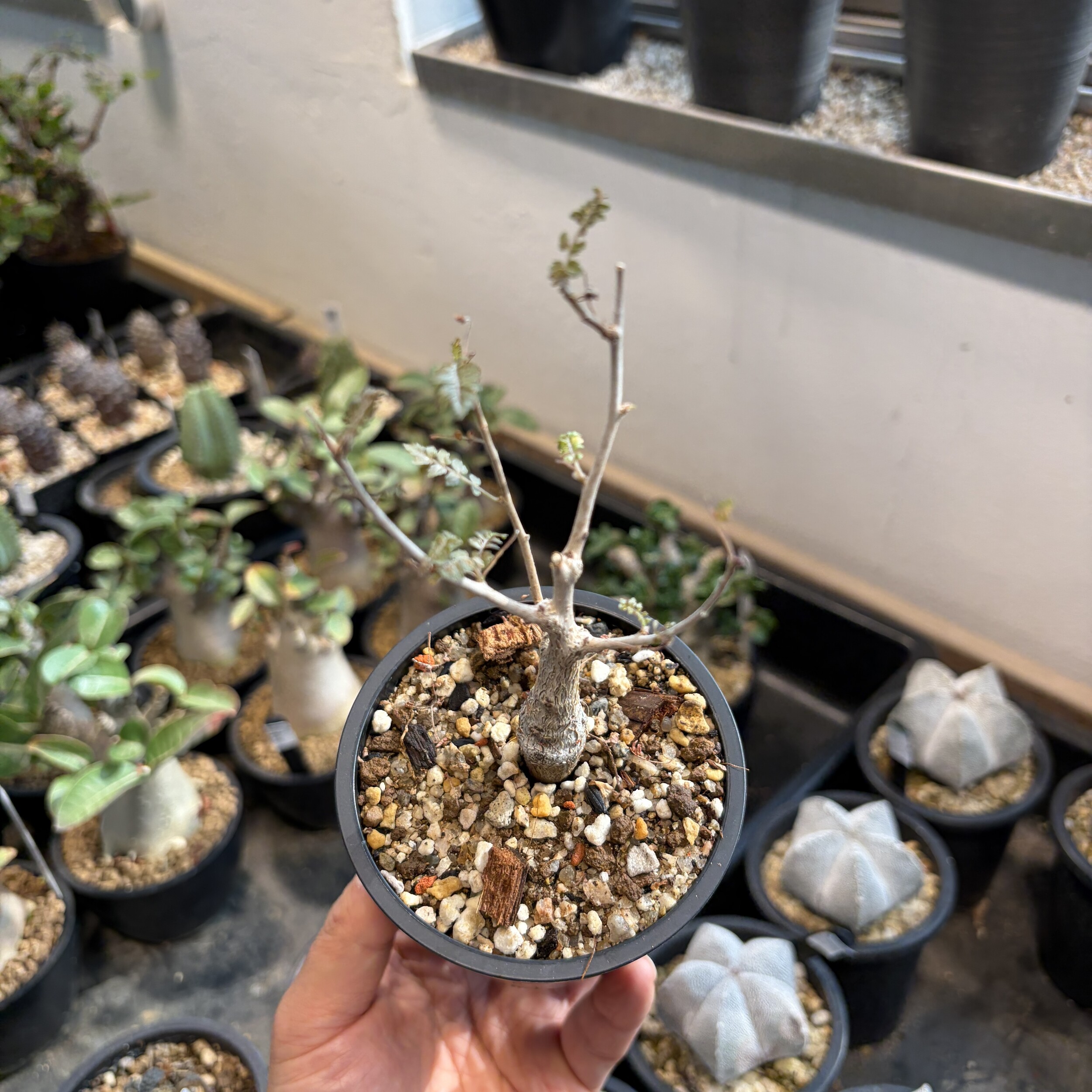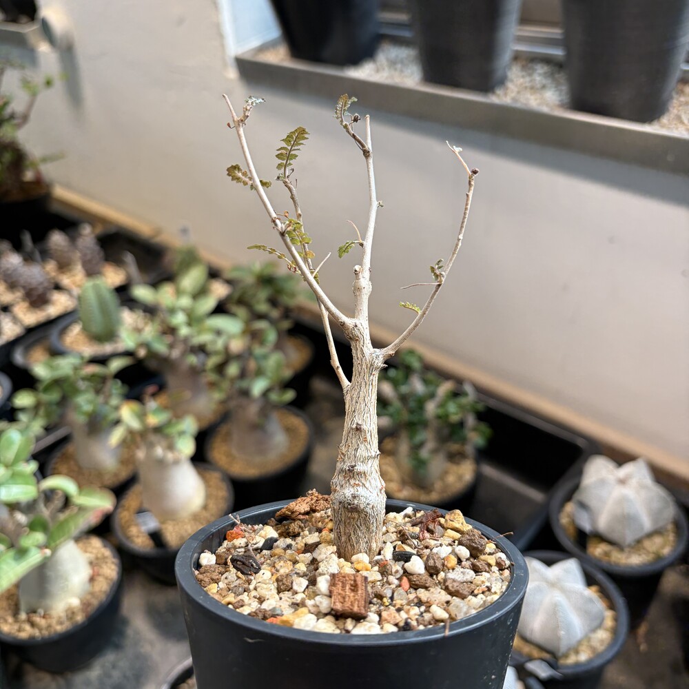 'Caudex' 식물들은 늦가을부터 자연스럽게 잎이 떨어집니다. (환경에 따라 잎이 지지 않을 수 있습니다.) 잎이 떨어지기 시작하면 서서히 물을 줄여나가며 휴면기인 겨울 동안에는 2-3주 1회 가볍게 분무 해주시면 됩니다.