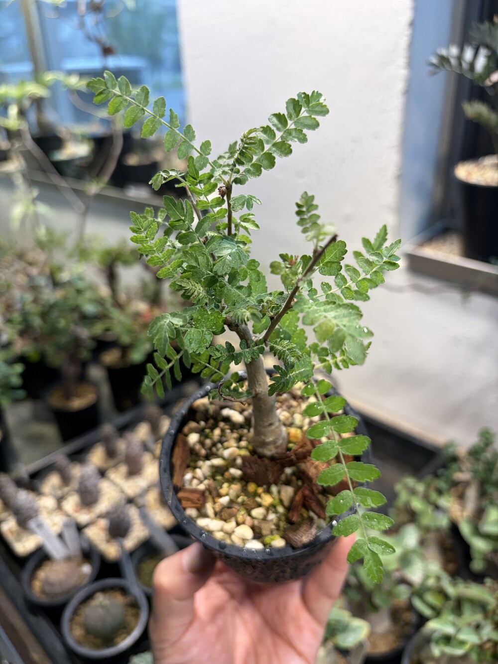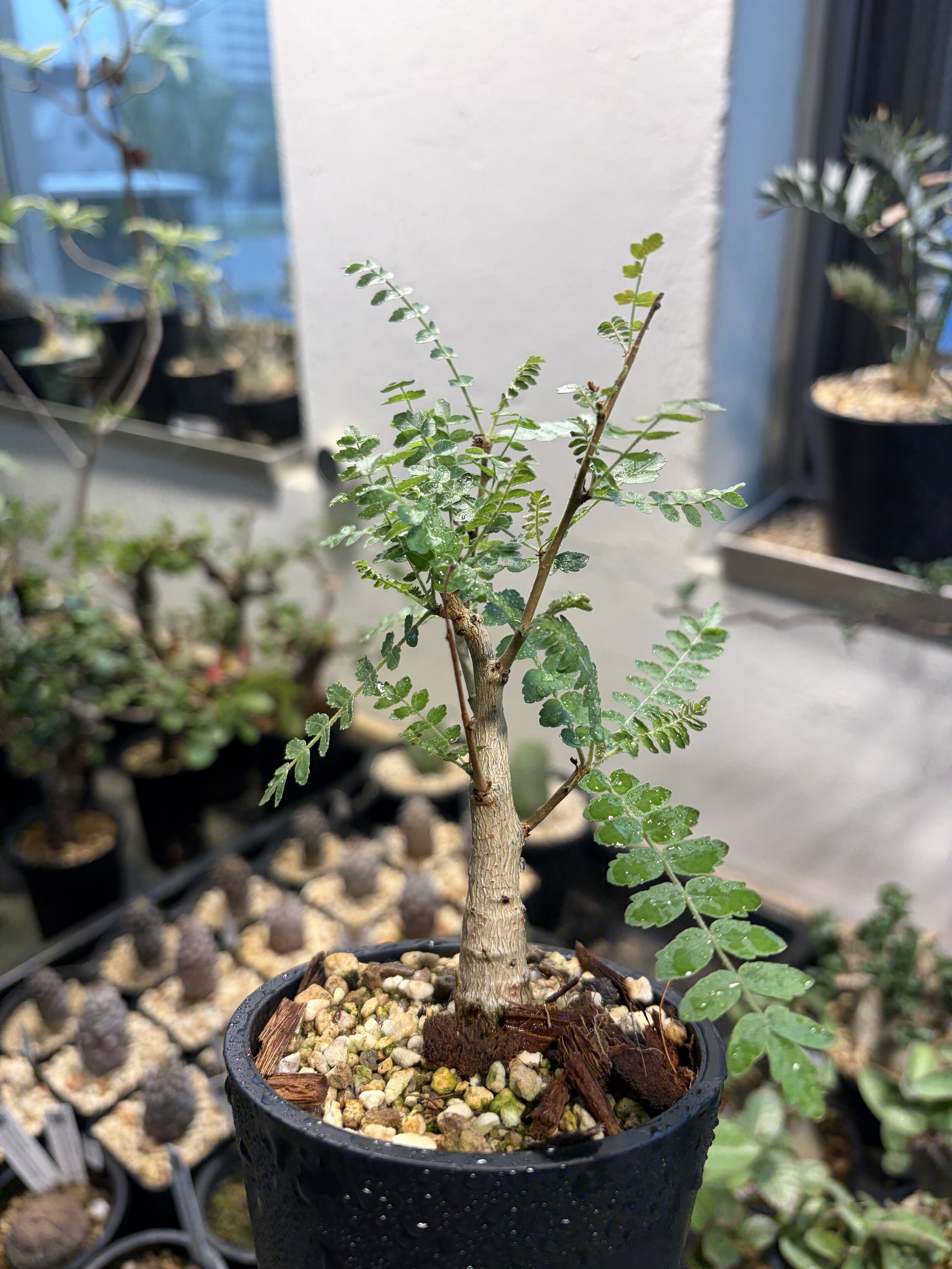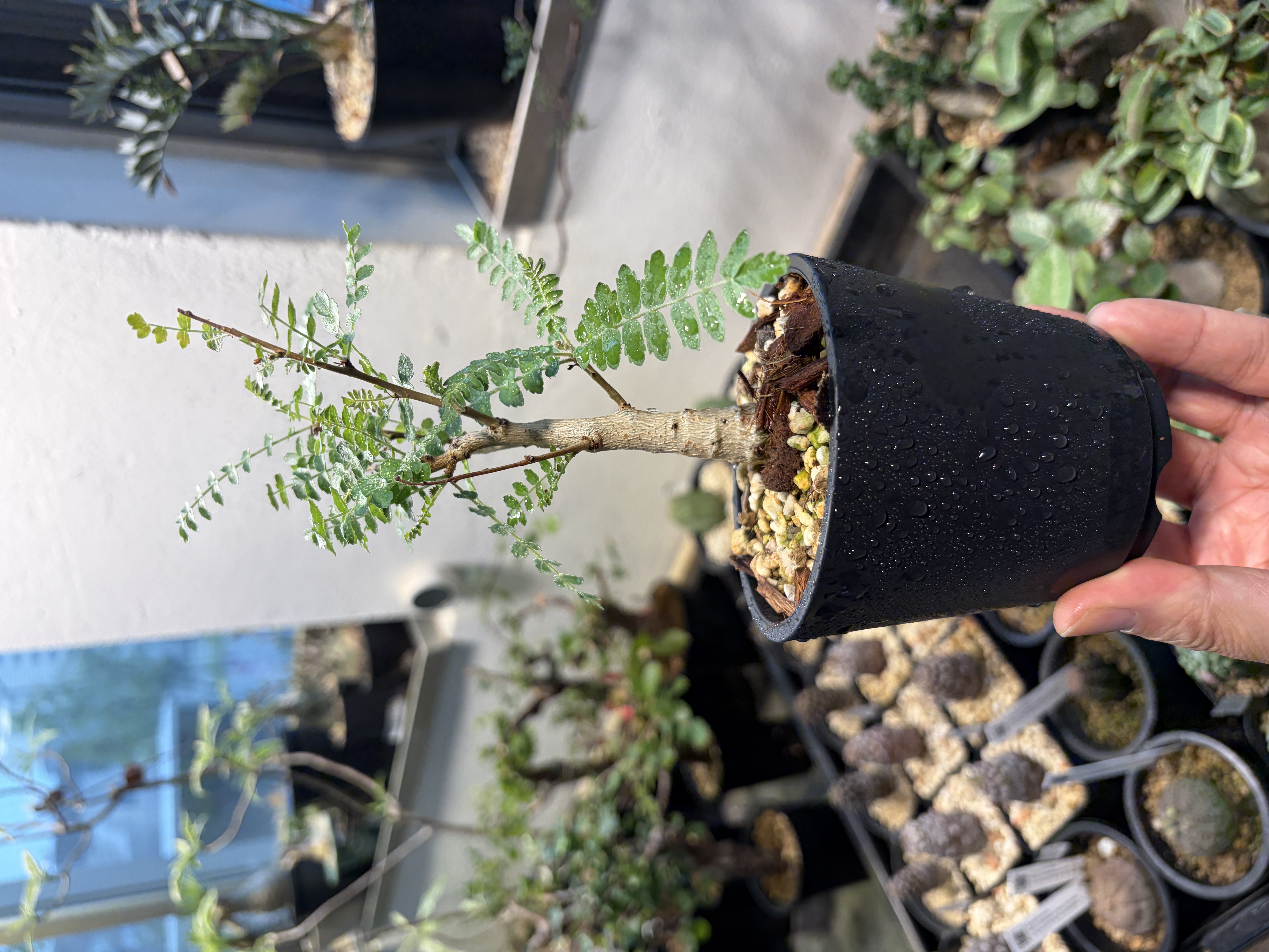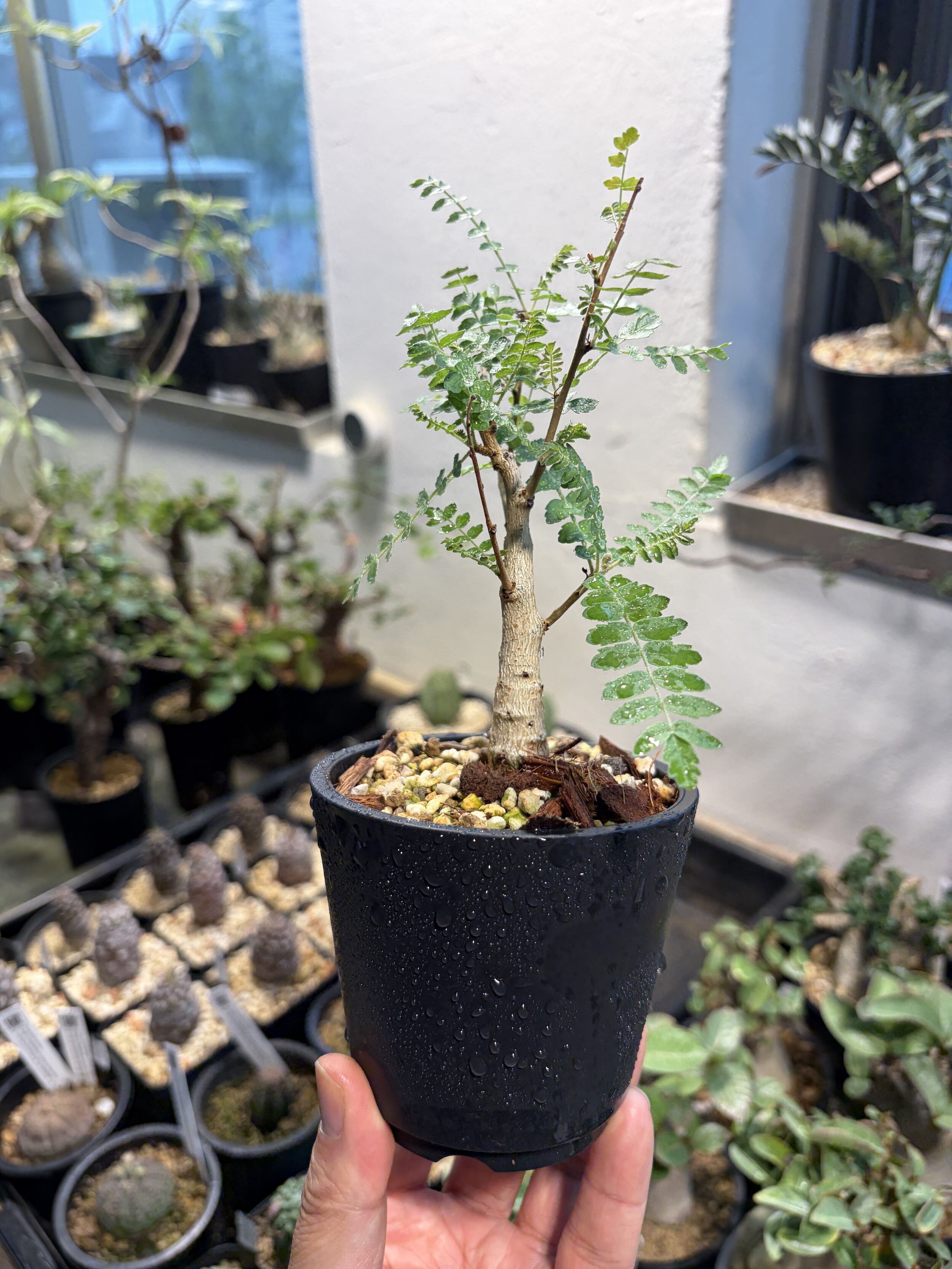 'Caudex' 식물들은 늦가을부터 자연스럽게 잎이 떨어집니다. (환경에 따라 잎이 지지 않을 수 있습니다.) 잎이 떨어지기 시작하면 서서히 물을 줄여나가며 휴면기인 겨울 동안에는 2-3주 1회 가볍게 분무 해주시면 됩니다.