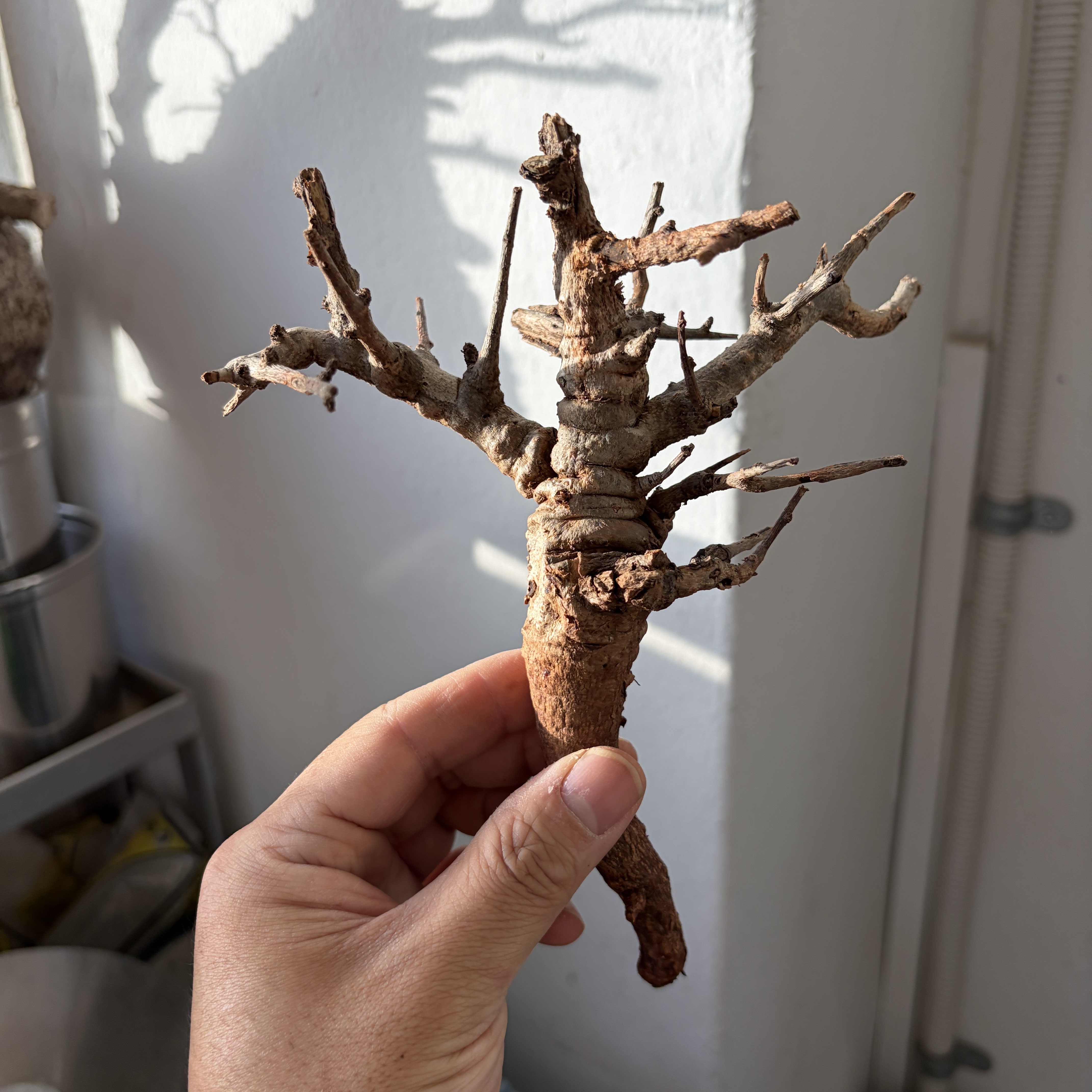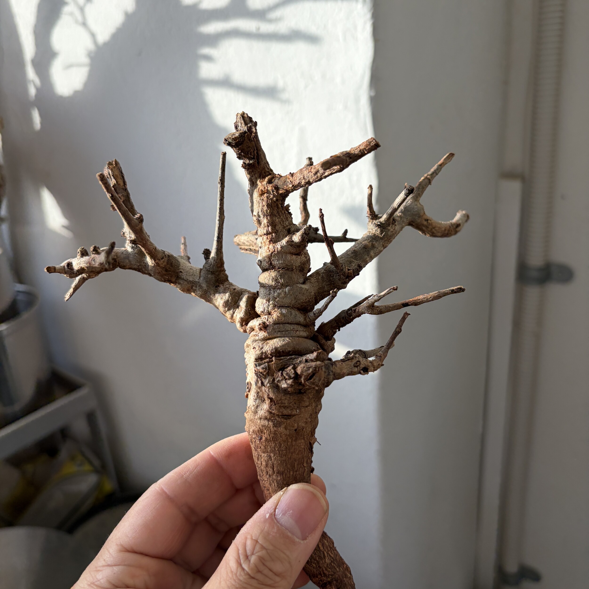 'Caudex' 식물들은 늦가을부터 자연스럽게 잎이 떨어집니다. (환경에 따라 잎이 지지 않을 수 있습니다.) 잎이 떨어지기 시작하면 서서히 물을 줄여나가며 휴면기인 겨울 동안에는 2-3주 1회 가볍게 분무 해주시면 됩니다.