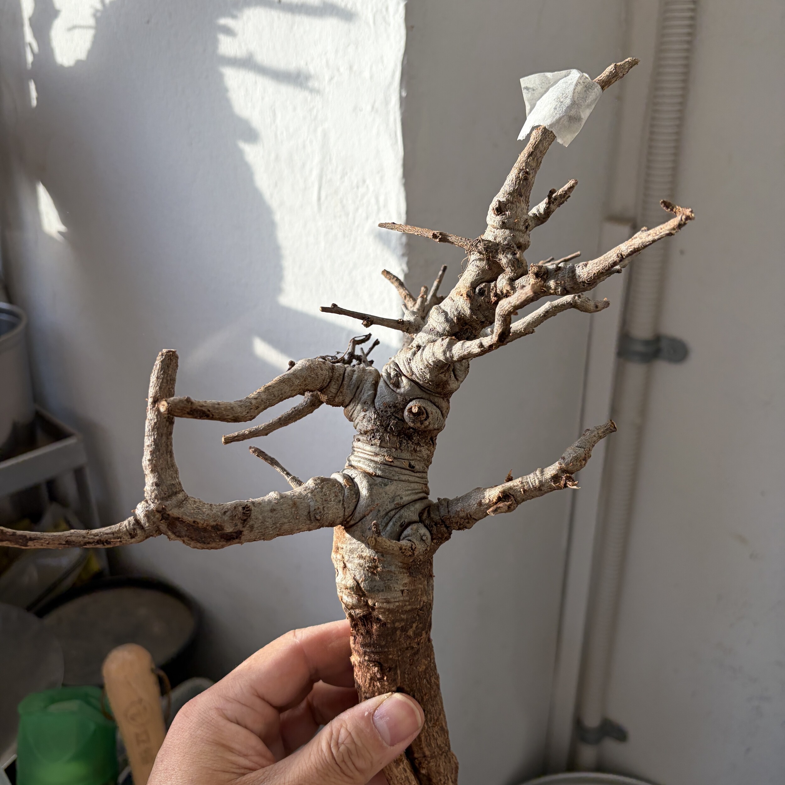 'Caudex' 식물들은 늦가을부터 자연스럽게 잎이 떨어집니다. (환경에 따라 잎이 지지 않을 수 있습니다.) 잎이 떨어지기 시작하면 서서히 물을 줄여나가며 휴면기인 겨울 동안에는 2-3주 1회 가볍게 분무 해주시면 됩니다.