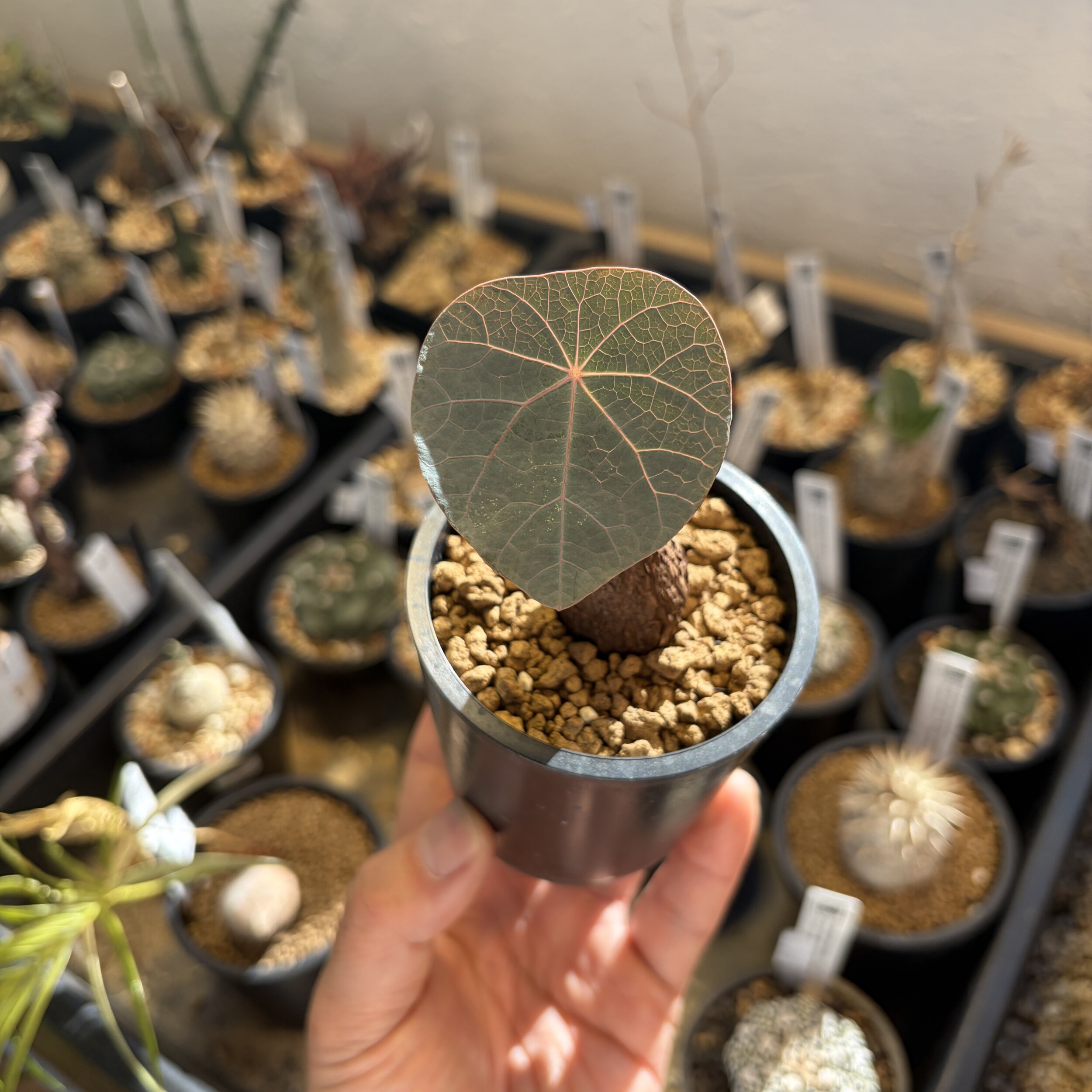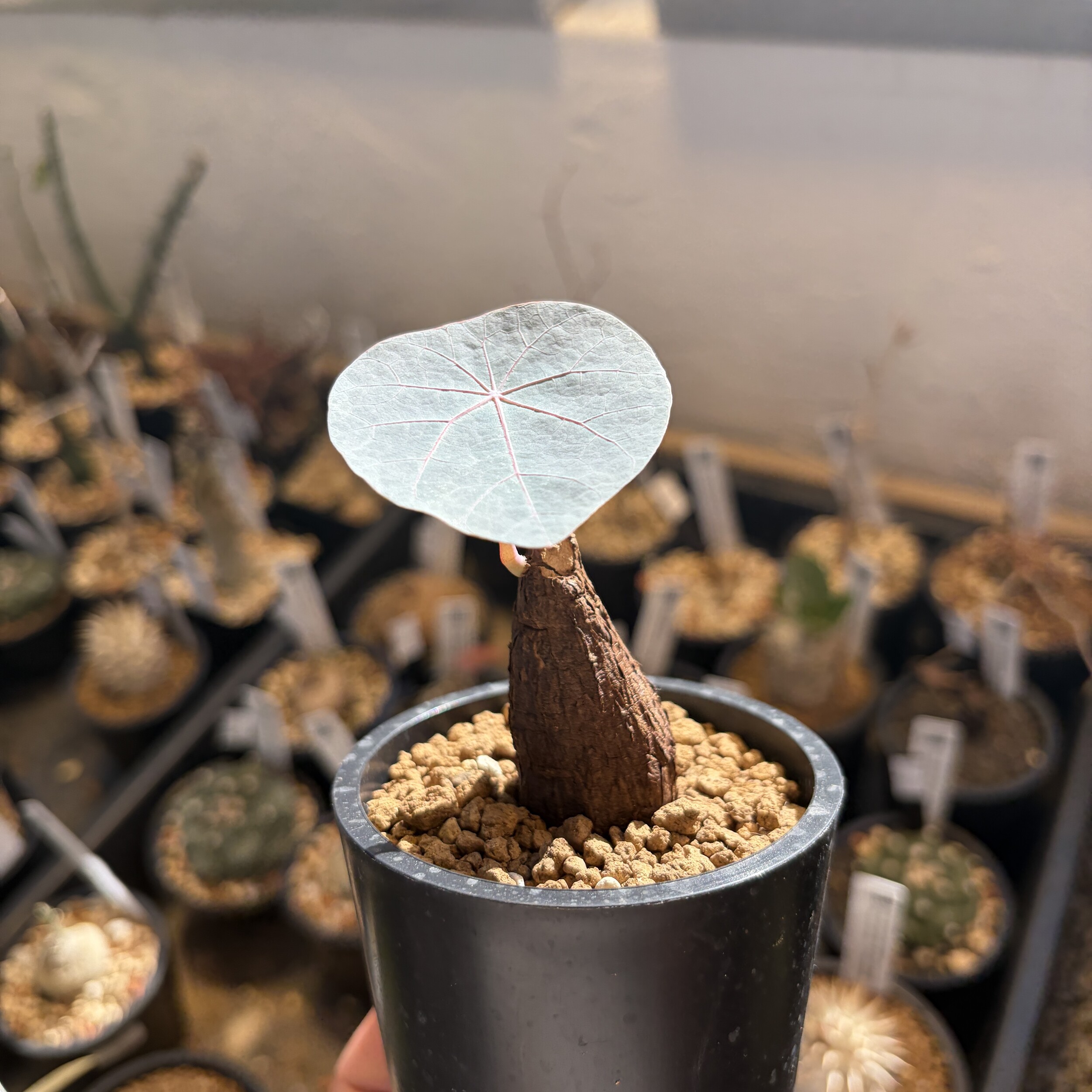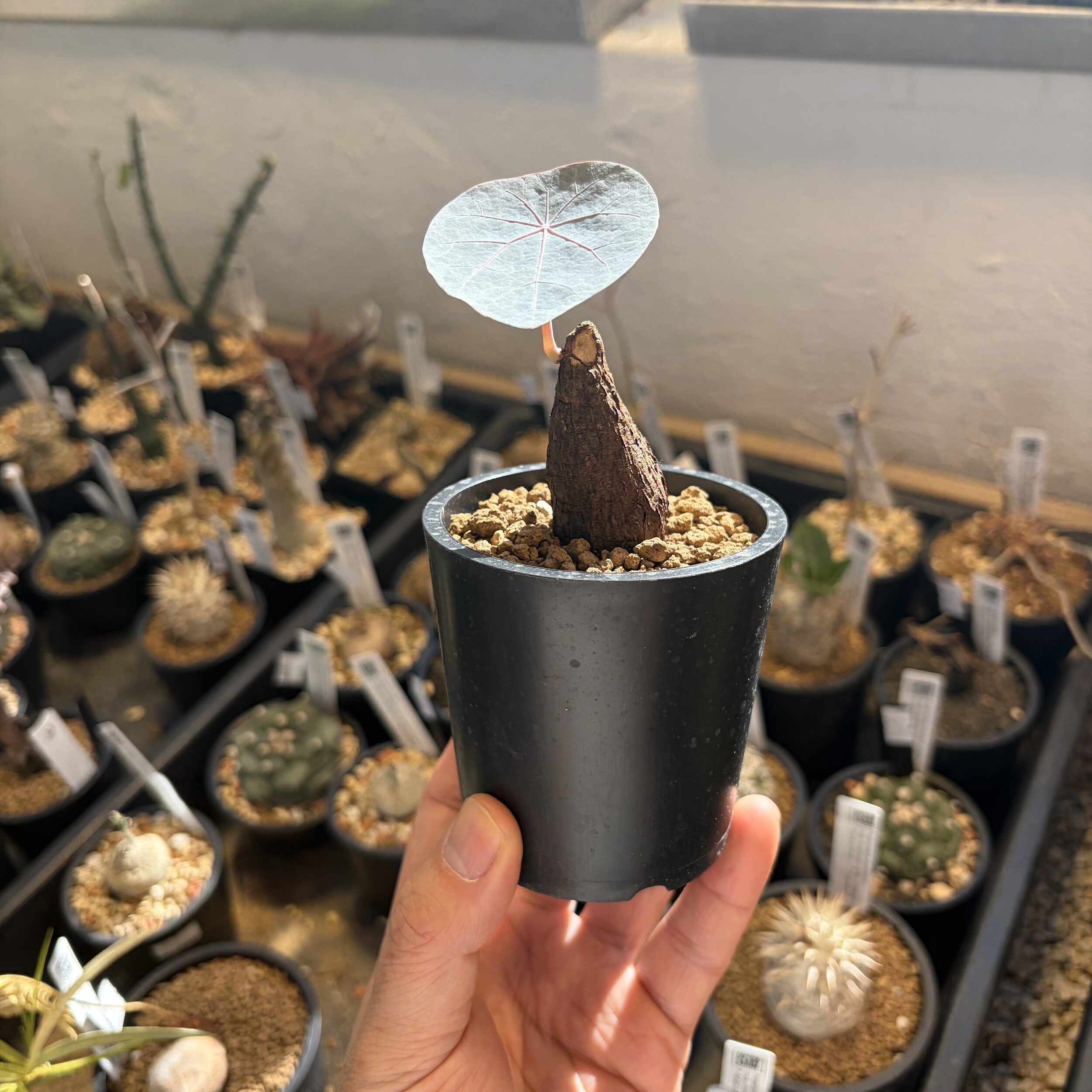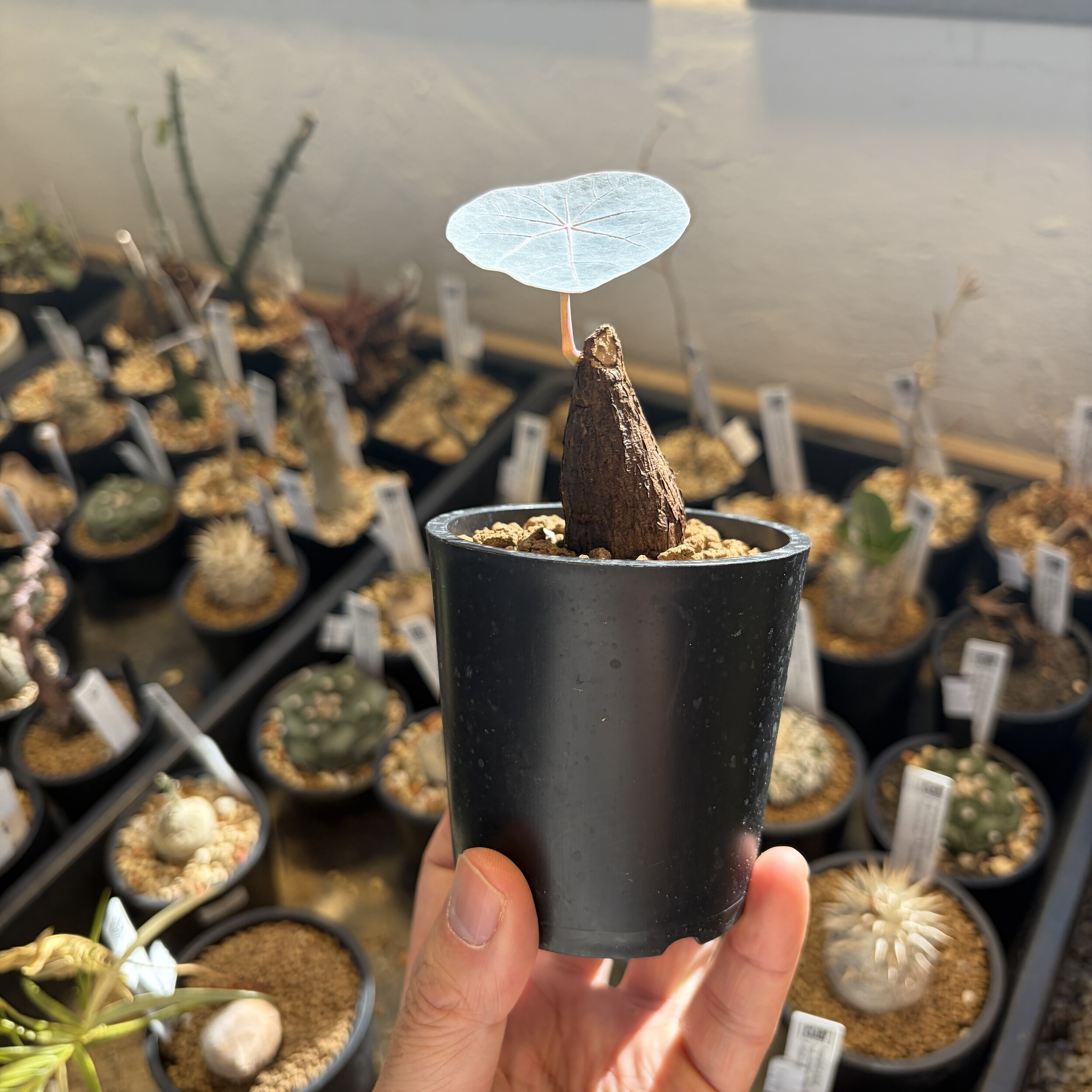 'Caudex' 식물들은 늦가을부터 자연스럽게 잎이 떨어집니다. (환경에 따라 잎이 지지 않을 수 있습니다.) 잎이 떨어지기 시작하면 서서히 물을 줄여나가며 휴면기인 겨울 동안에는 2-3주 1회 가볍게 분무 해주시면 됩니다.