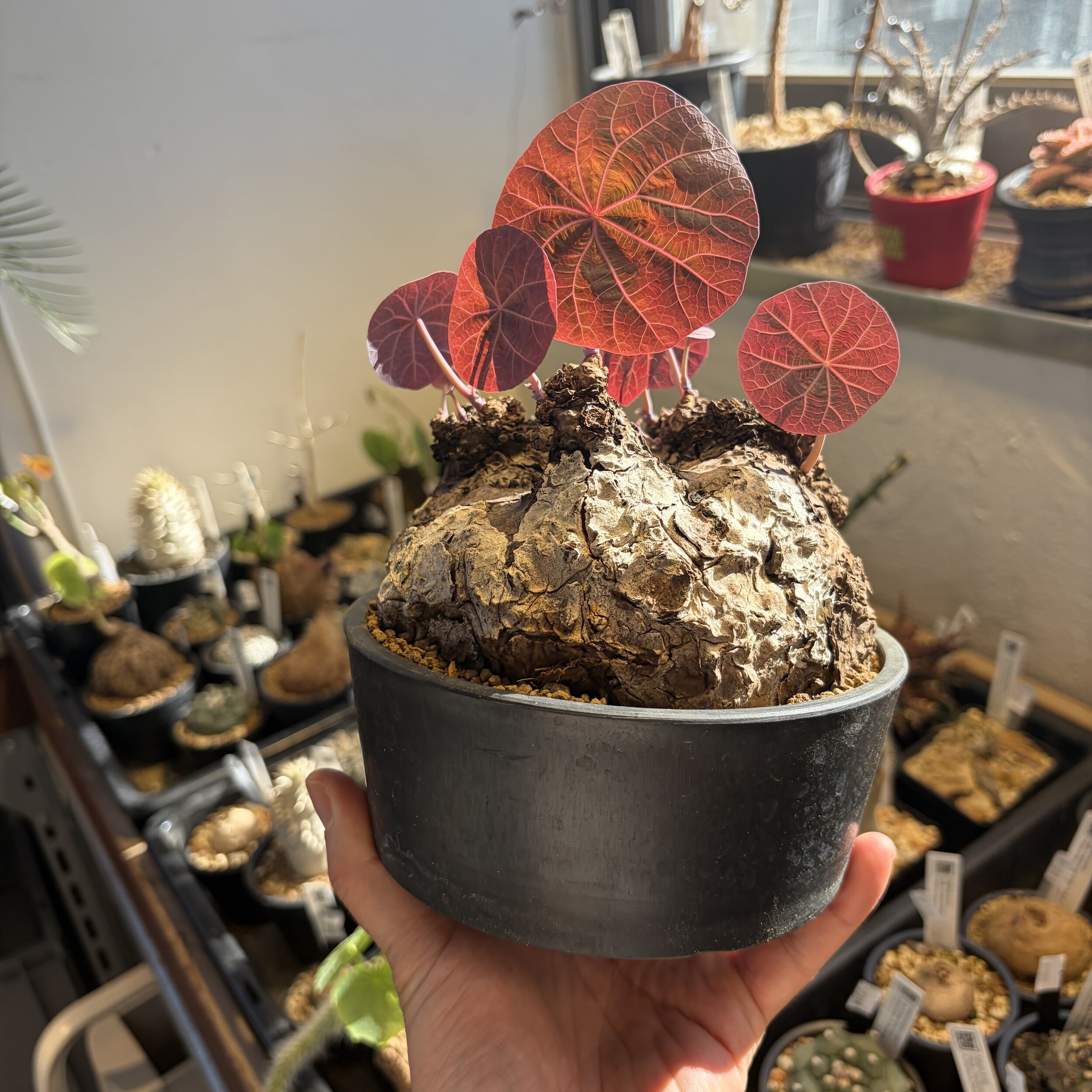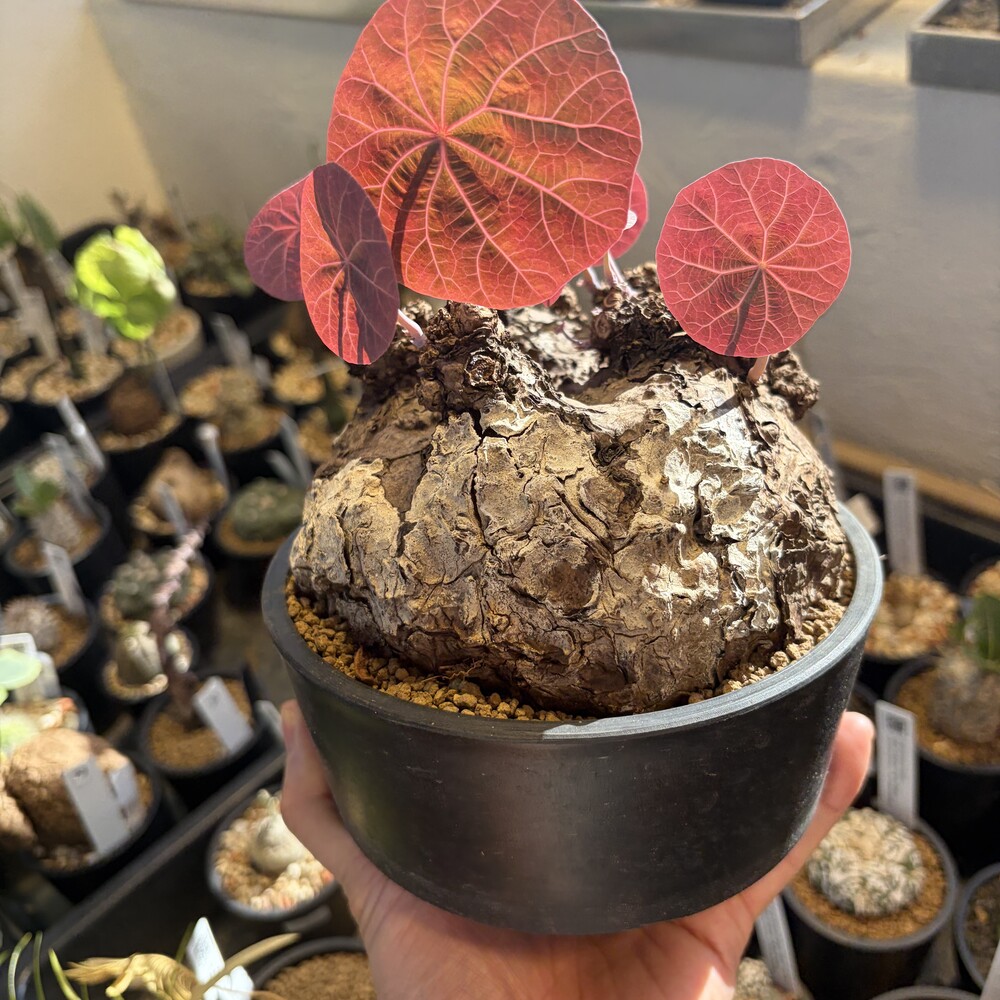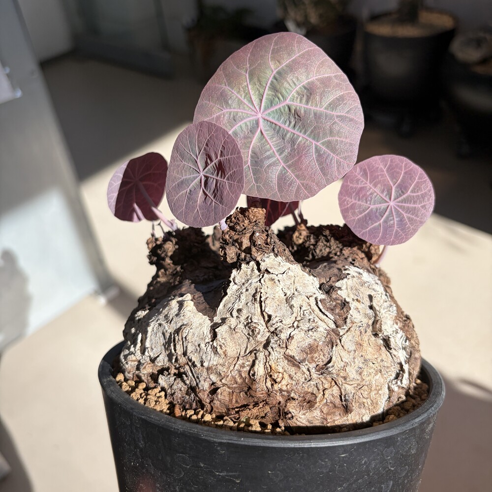 'Caudex' 식물들은 늦가을부터 자연스럽게 잎이 떨어집니다. (환경에 따라 잎이 지지 않을 수 있습니다.) 잎이 떨어지기 시작하면 서서히 물을 줄여나가며 휴면기인 겨울 동안에는 2-3주 1회 가볍게 분무 해주시면 됩니다.