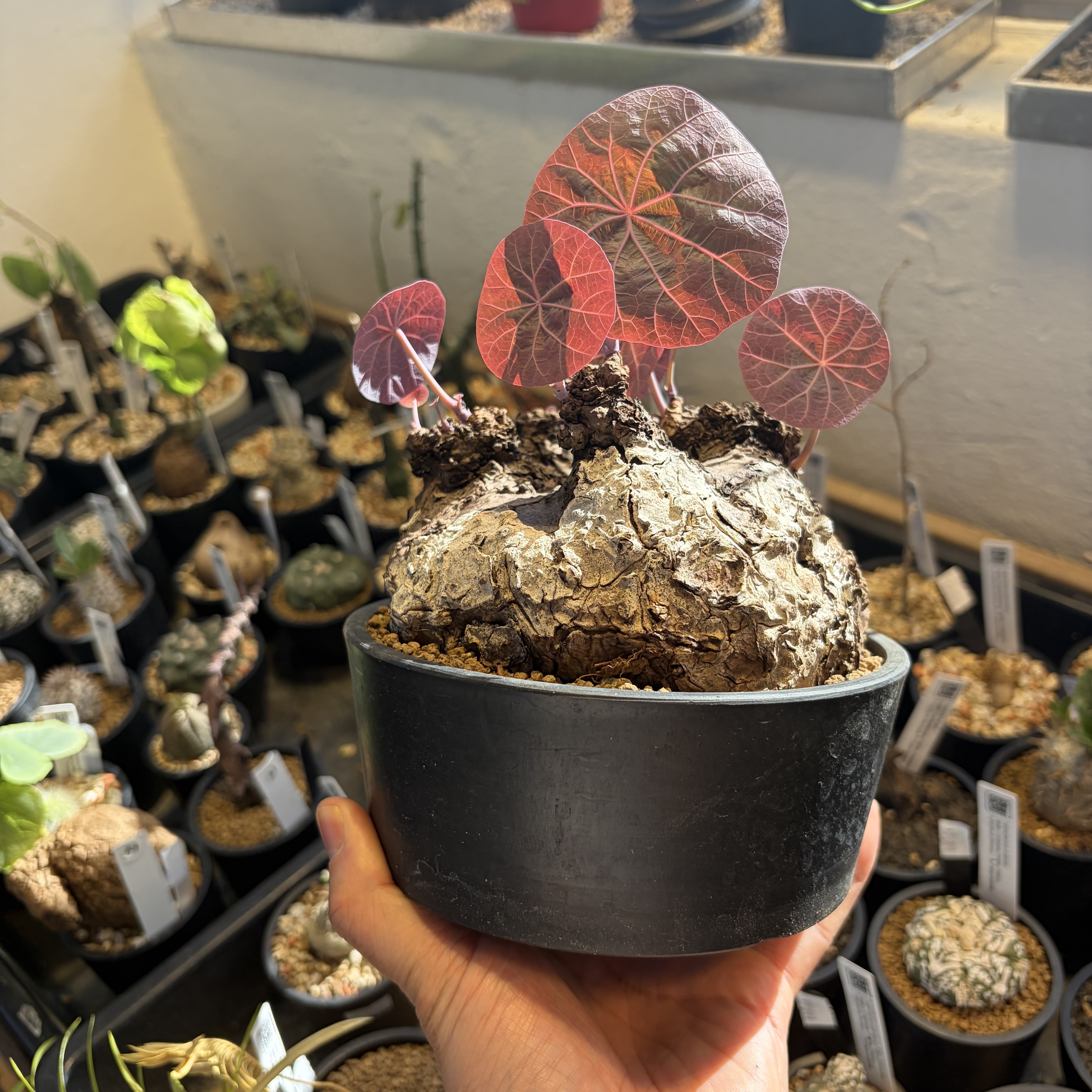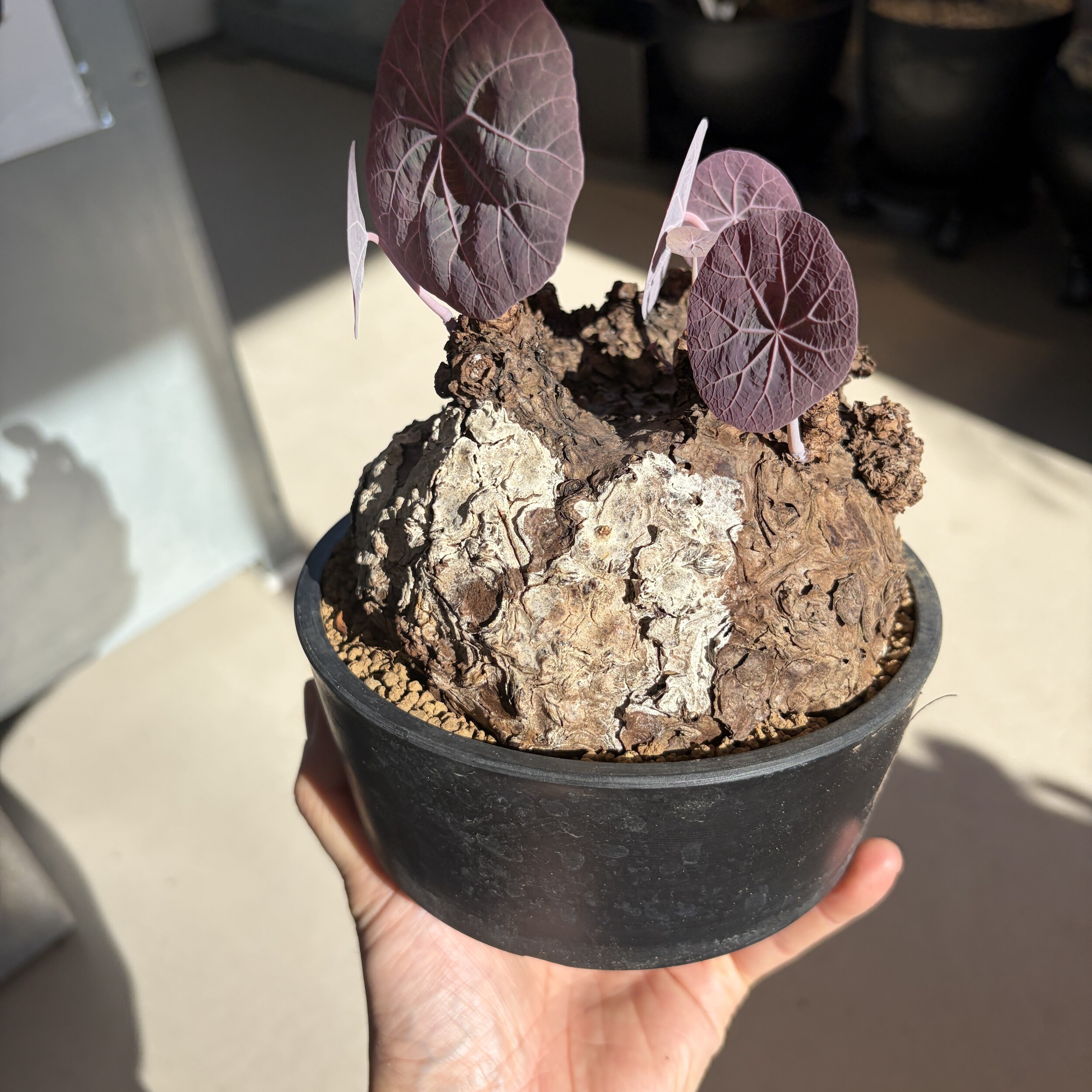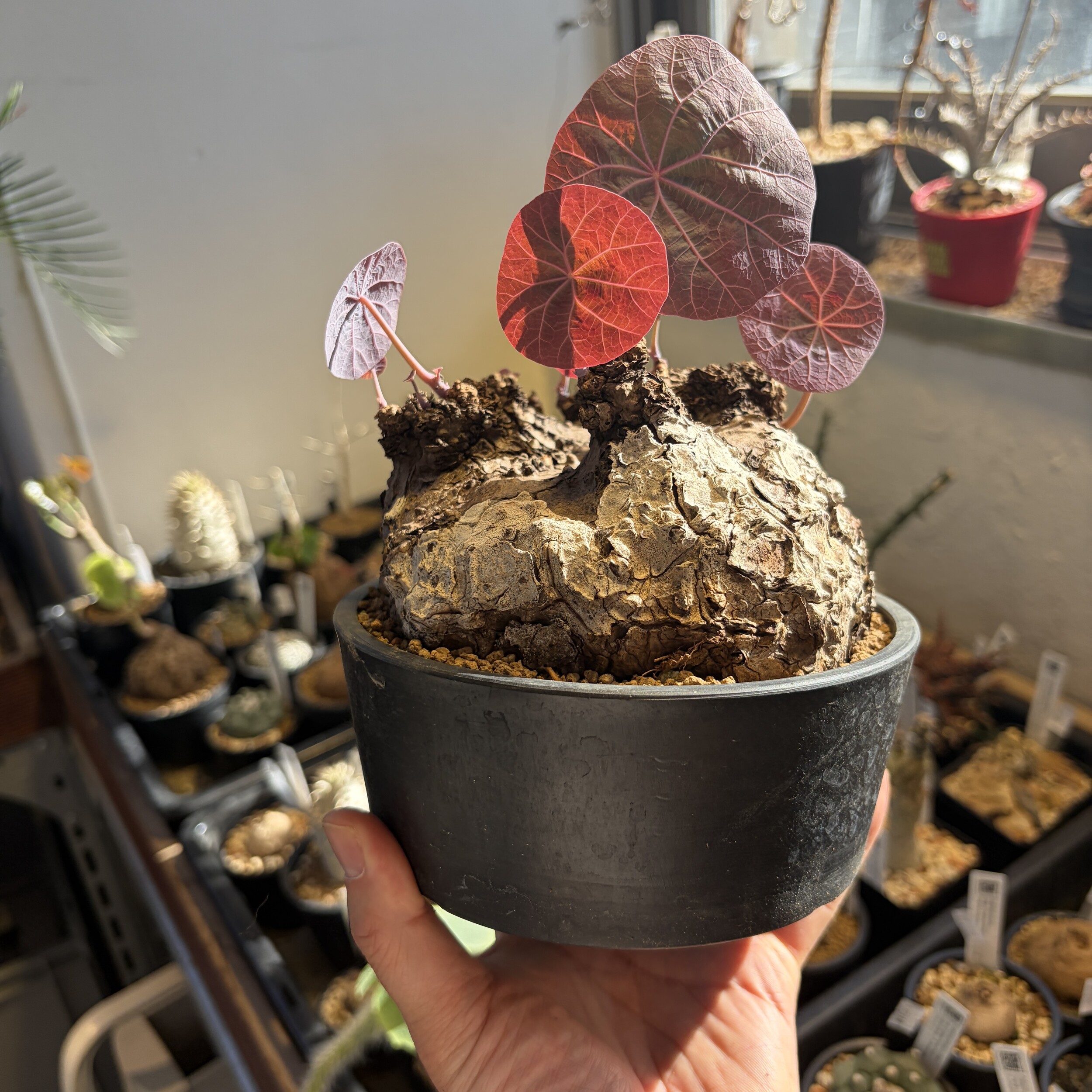 'Caudex' 식물들은 늦가을부터 자연스럽게 잎이 떨어집니다. (환경에 따라 잎이 지지 않을 수 있습니다.) 잎이 떨어지기 시작하면 서서히 물을 줄여나가며 휴면기인 겨울 동안에는 2-3주 1회 가볍게 분무 해주시면 됩니다.