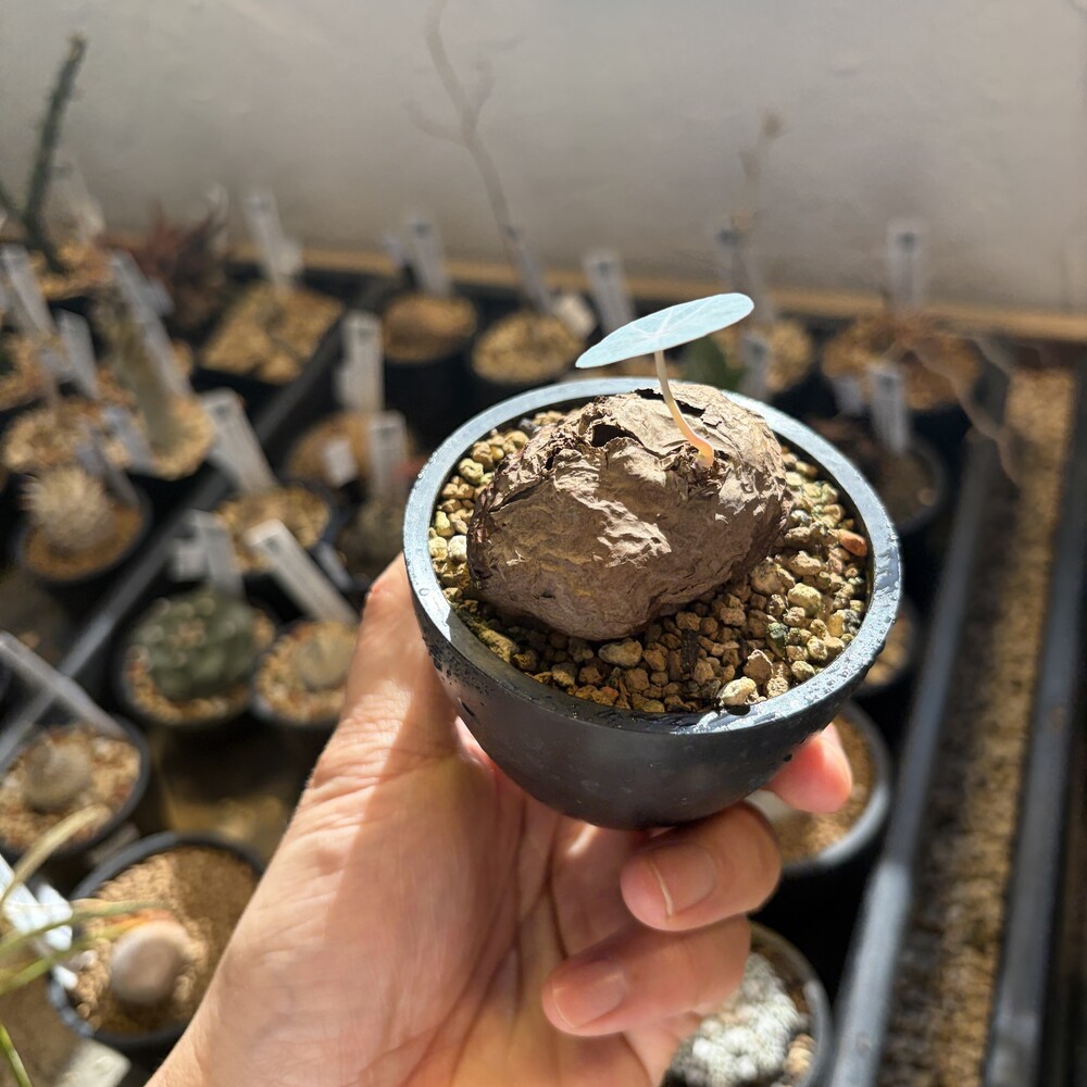 'Caudex' 식물들은 늦가을부터 자연스럽게 잎이 떨어집니다. (환경에 따라 잎이 지지 않을 수 있습니다.) 잎이 떨어지기 시작하면 서서히 물을 줄여나가며 휴면기인 겨울 동안에는 2-3주 1회 가볍게 분무 해주시면 됩니다.