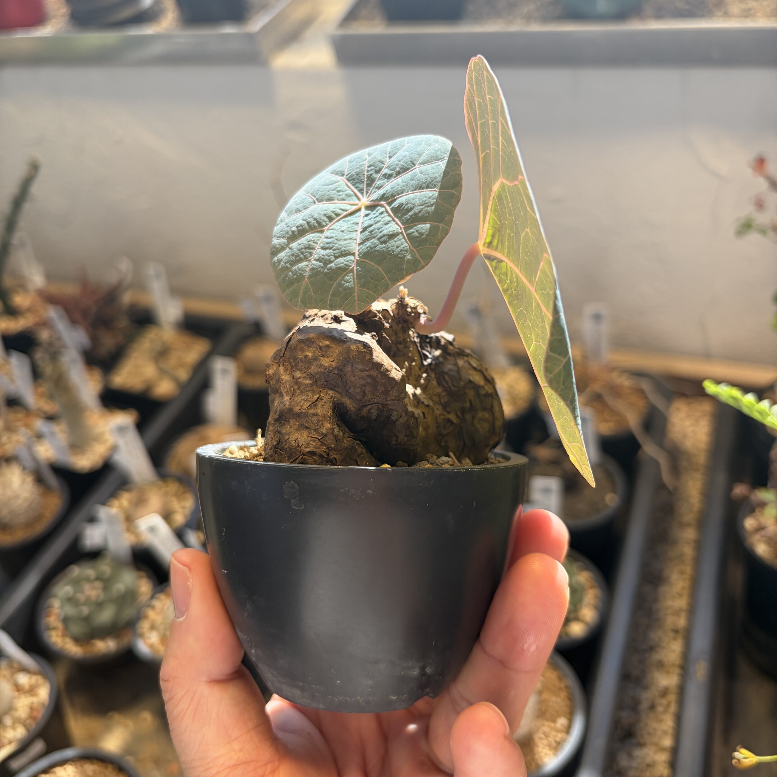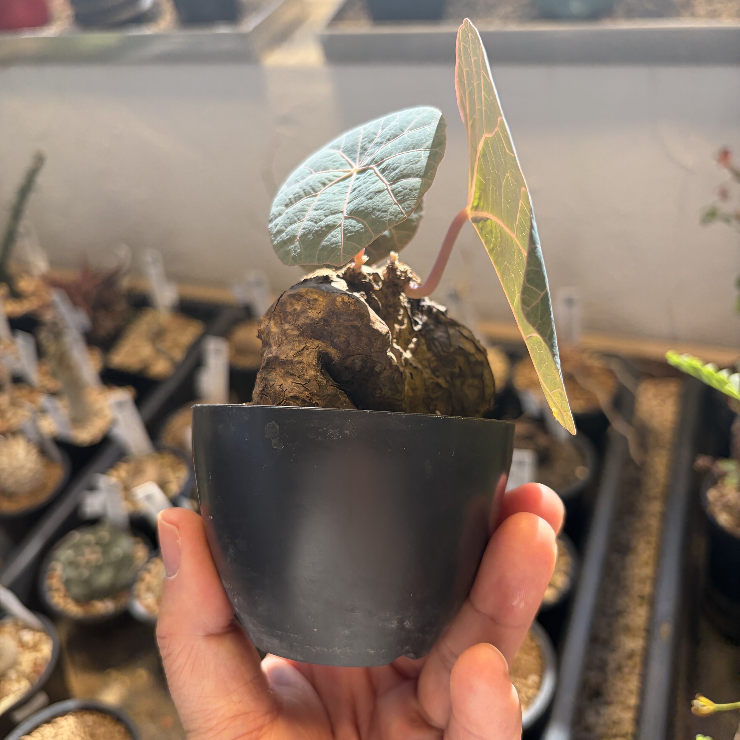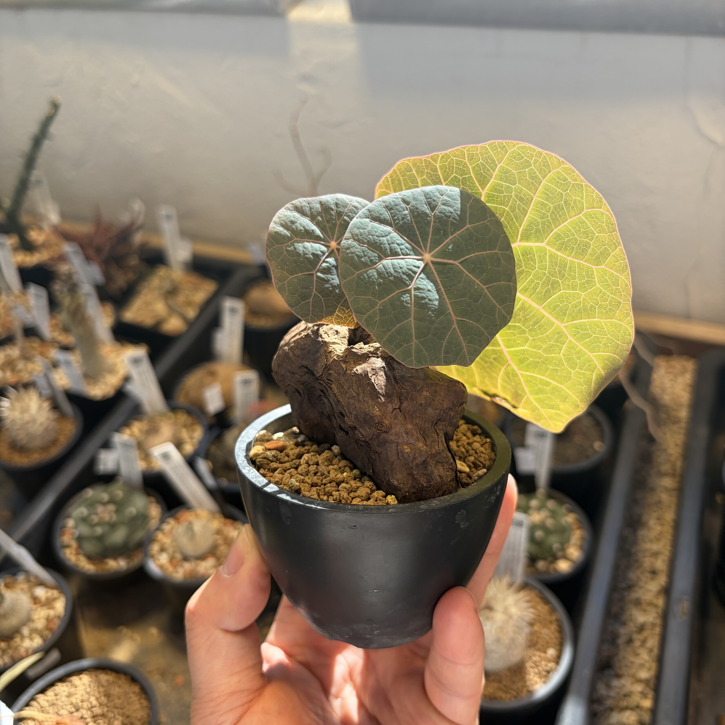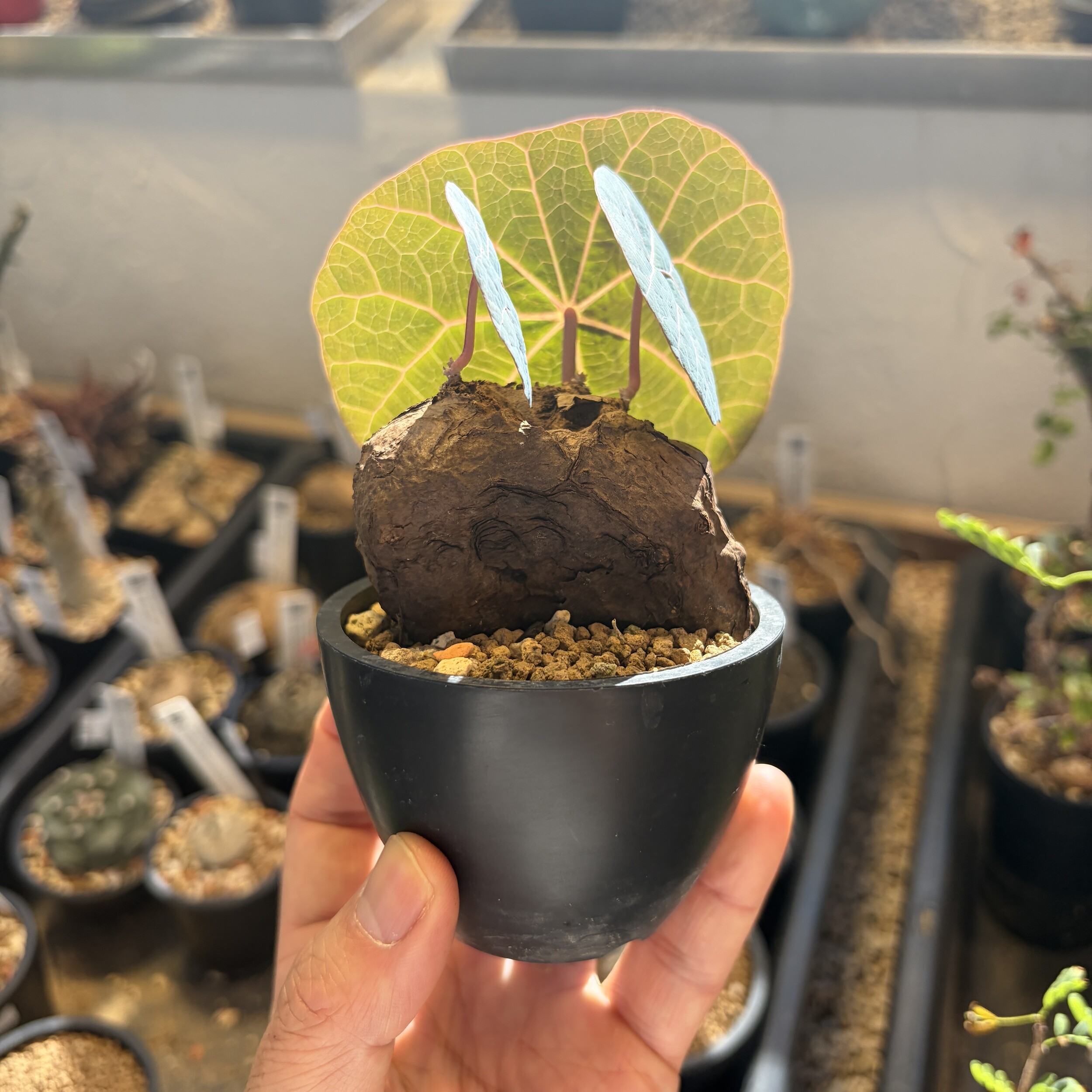 'Caudex' 식물들은 늦가을부터 자연스럽게 잎이 떨어집니다. (환경에 따라 잎이 지지 않을 수 있습니다.) 잎이 떨어지기 시작하면 서서히 물을 줄여나가며 휴면기인 겨울 동안에는 2-3주 1회 가볍게 분무 해주시면 됩니다.