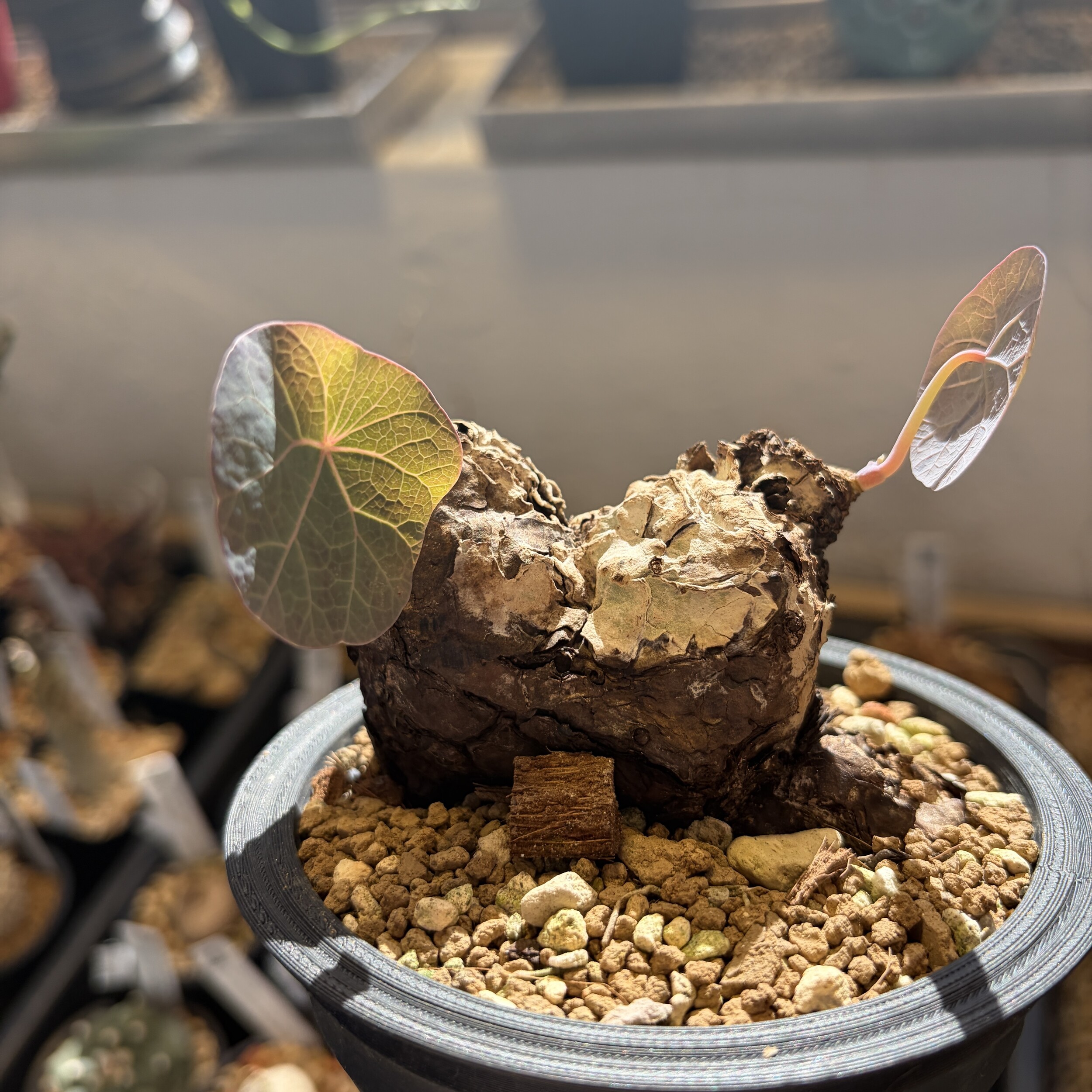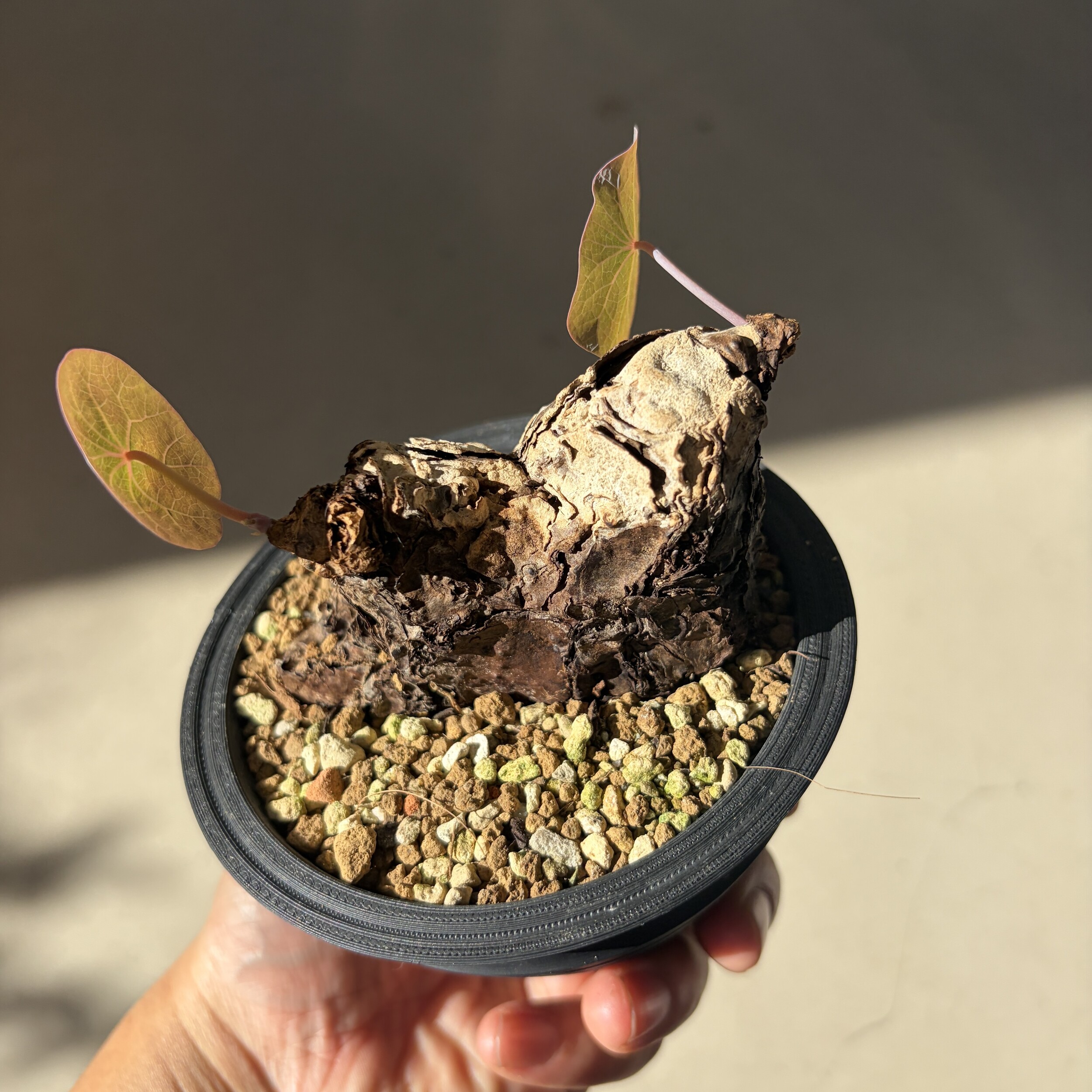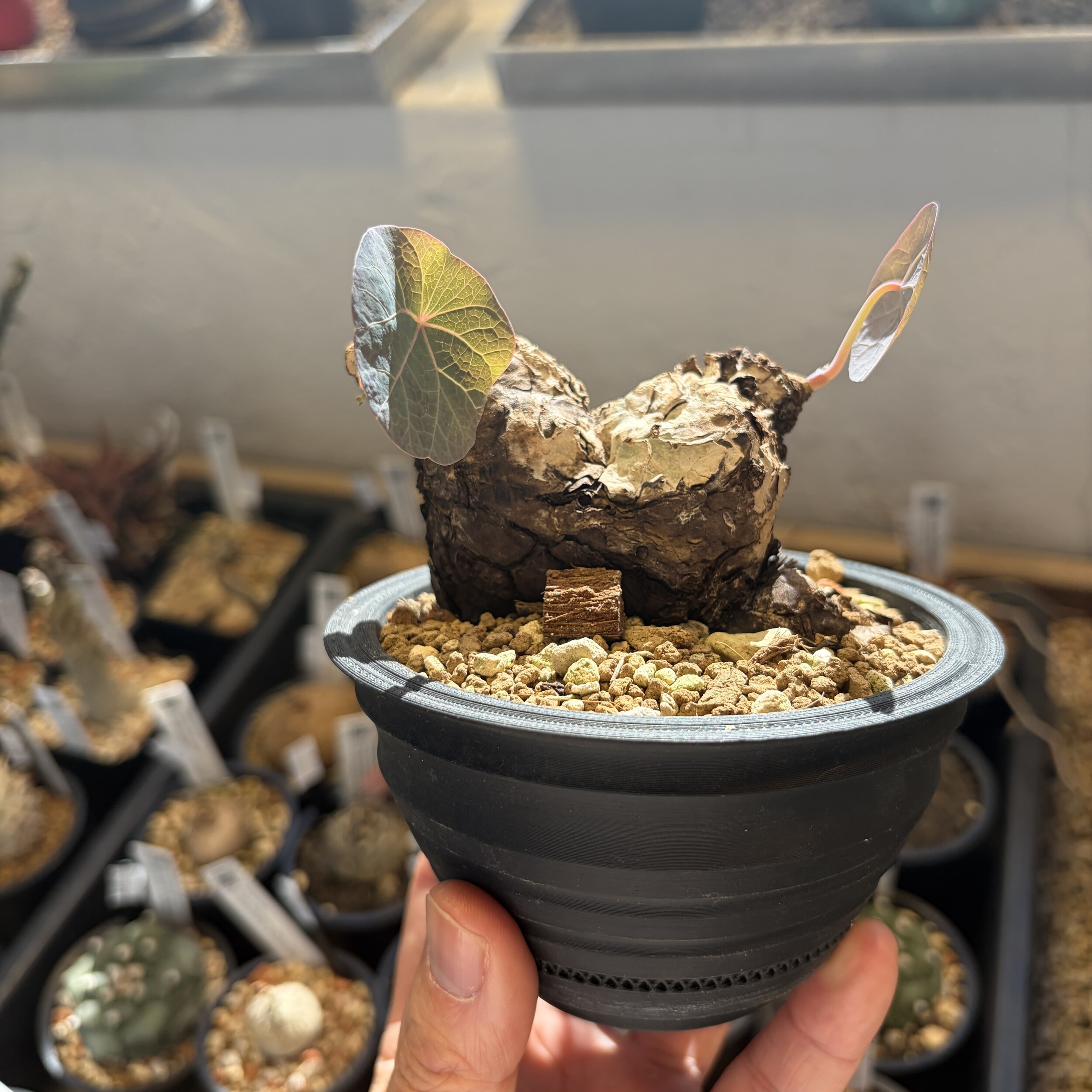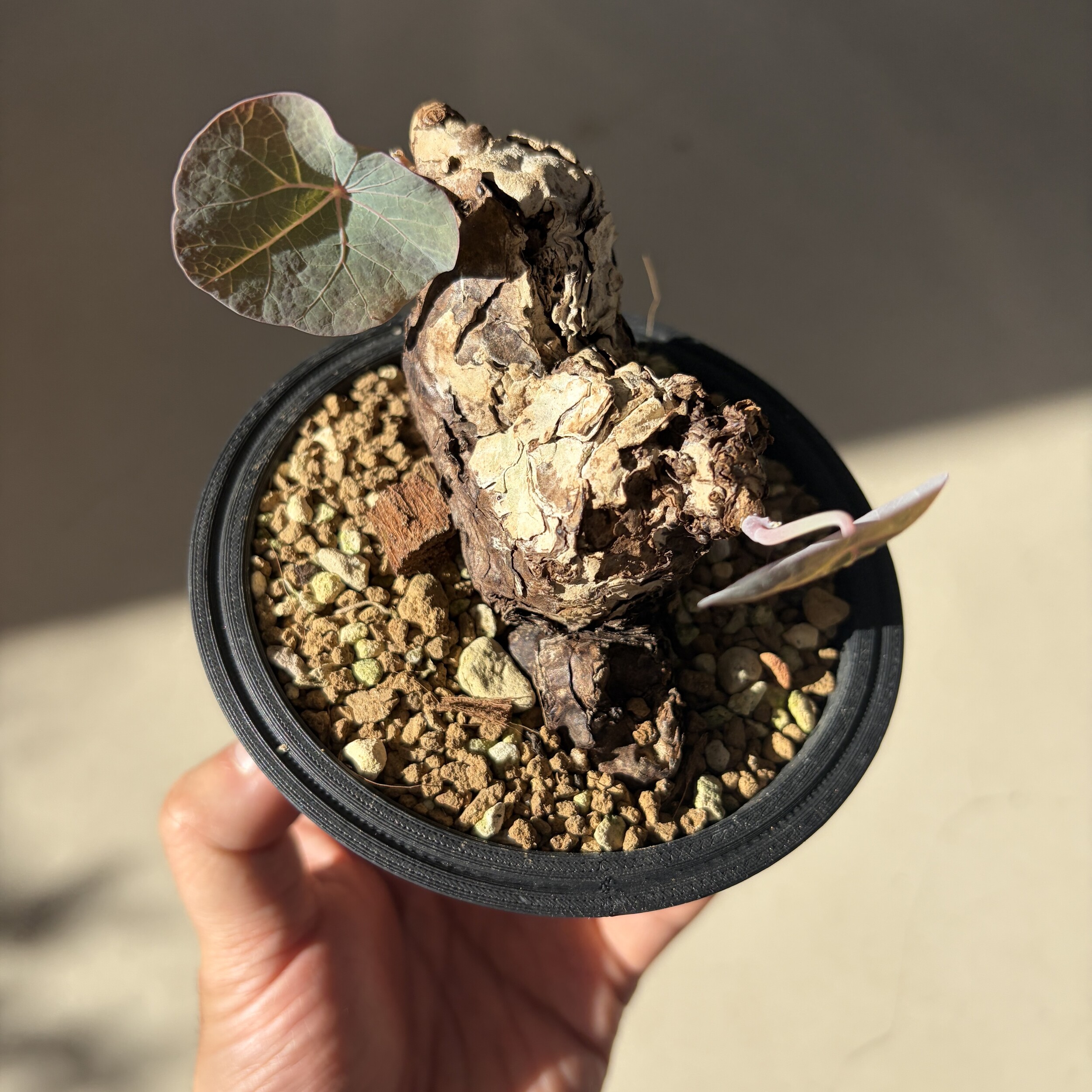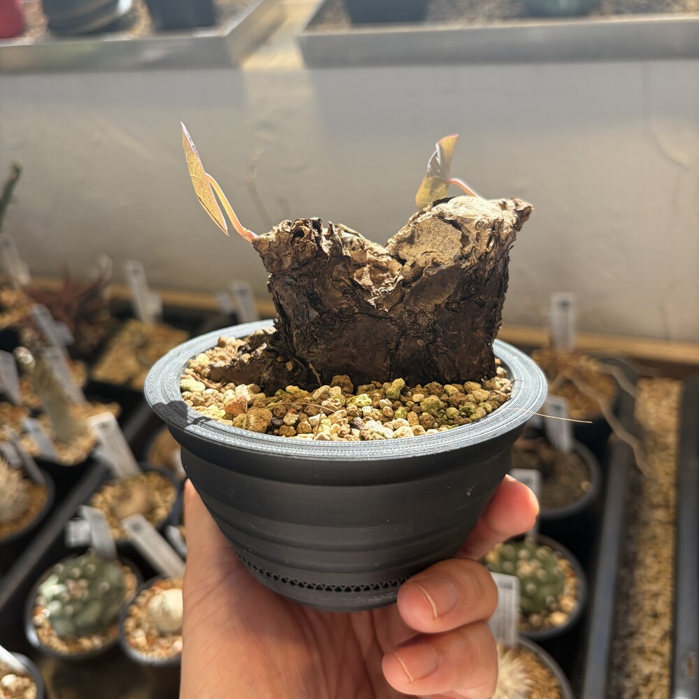 'Caudex' 식물들은 늦가을부터 자연스럽게 잎이 떨어집니다. (환경에 따라 잎이 지지 않을 수 있습니다.) 잎이 떨어지기 시작하면 서서히 물을 줄여나가며 휴면기인 겨울 동안에는 2-3주 1회 가볍게 분무 해주시면 됩니다.
