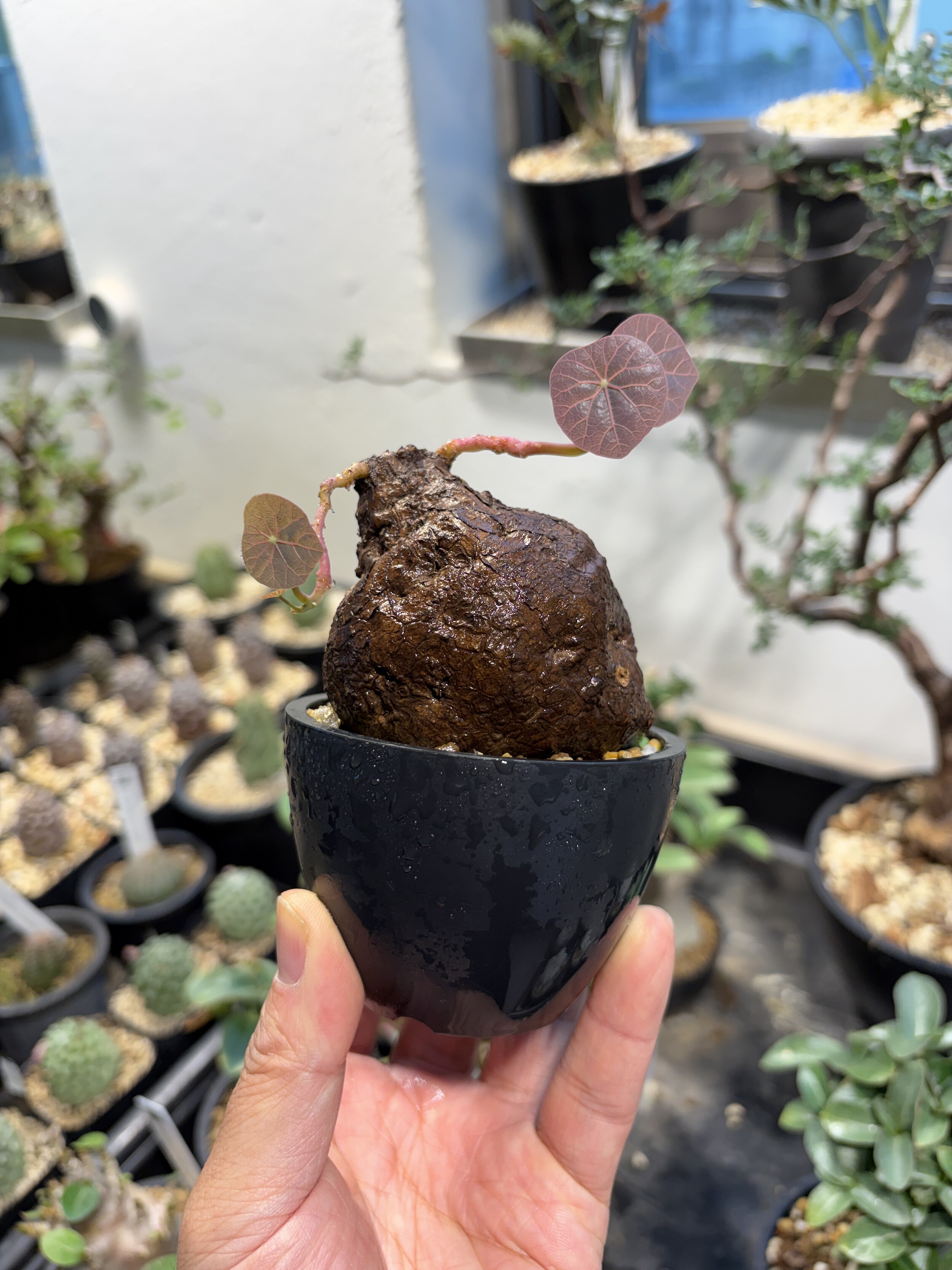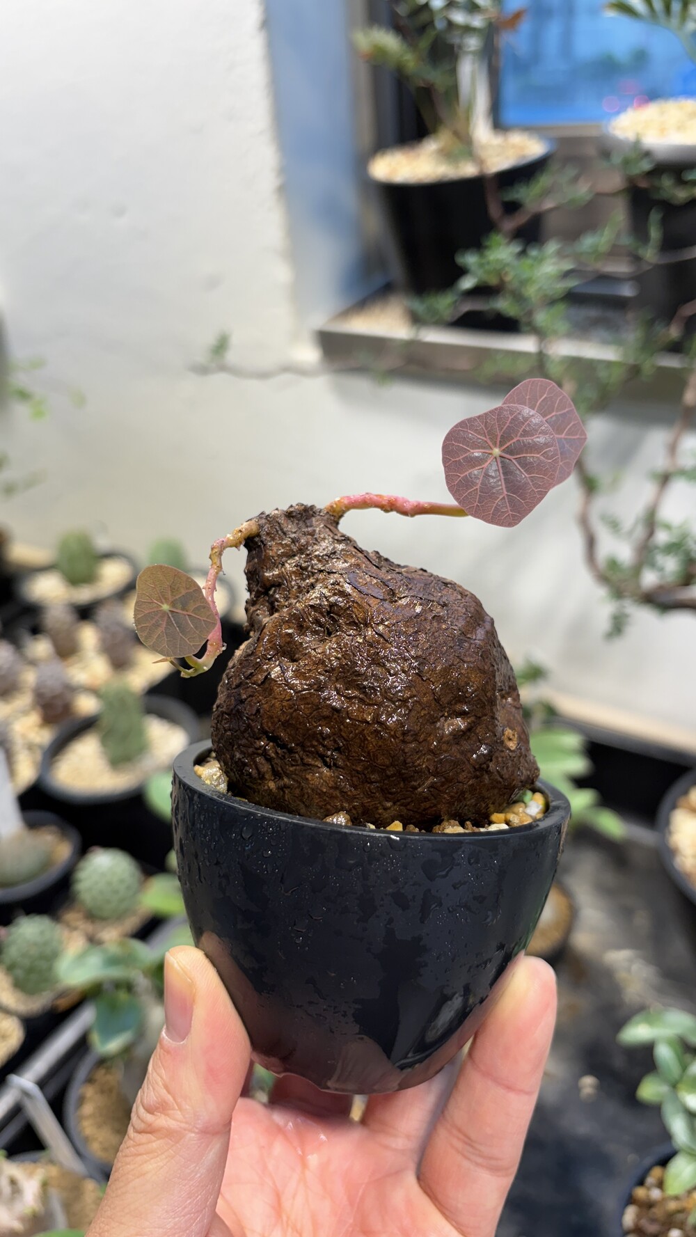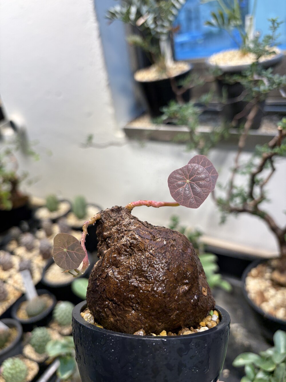 'Caudex' 식물들은 늦가을부터 자연스럽게 잎이 떨어집니다. (환경에 따라 잎이 지지 않을 수 있습니다.) 잎이 떨어지기 시작하면 서서히 물을 줄여나가며 휴면기인 겨울 동안에는 2-3주 1회 가볍게 분무 해주시면 됩니다.