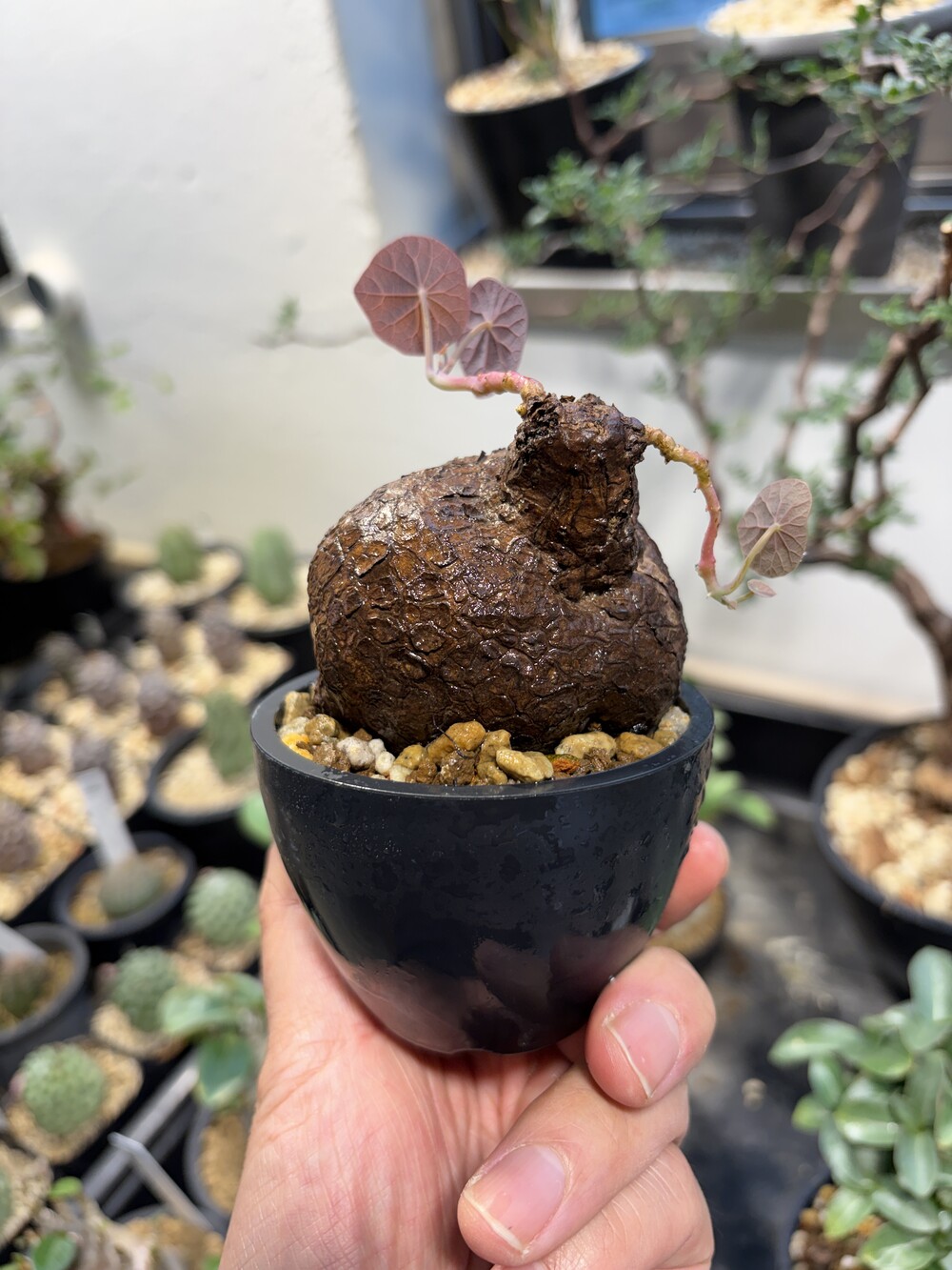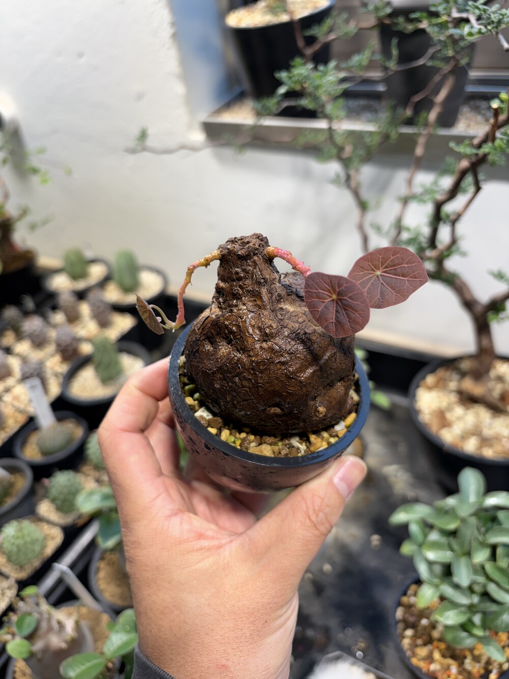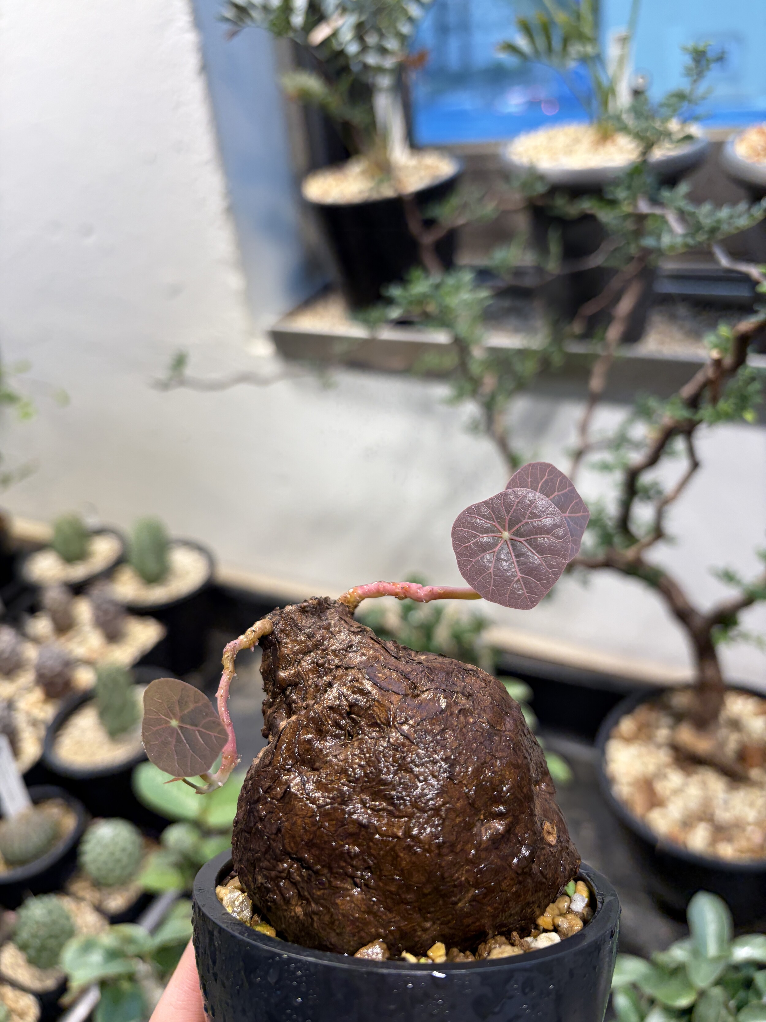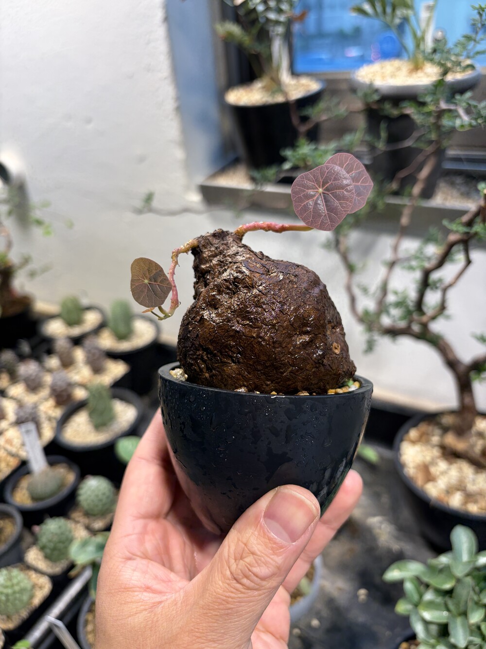 'Caudex' 식물들은 늦가을부터 자연스럽게 잎이 떨어집니다. (환경에 따라 잎이 지지 않을 수 있습니다.) 잎이 떨어지기 시작하면 서서히 물을 줄여나가며 휴면기인 겨울 동안에는 2-3주 1회 가볍게 분무 해주시면 됩니다.