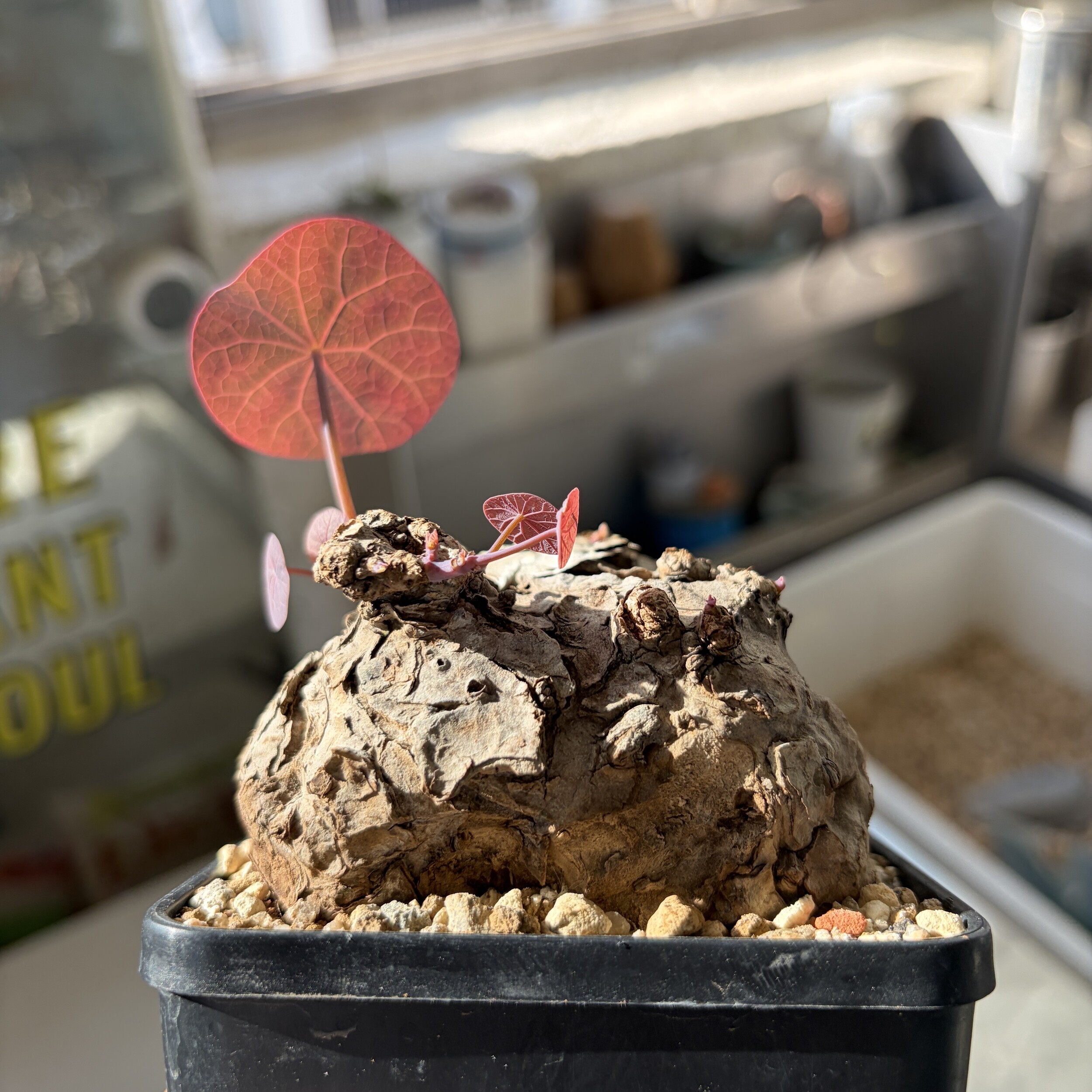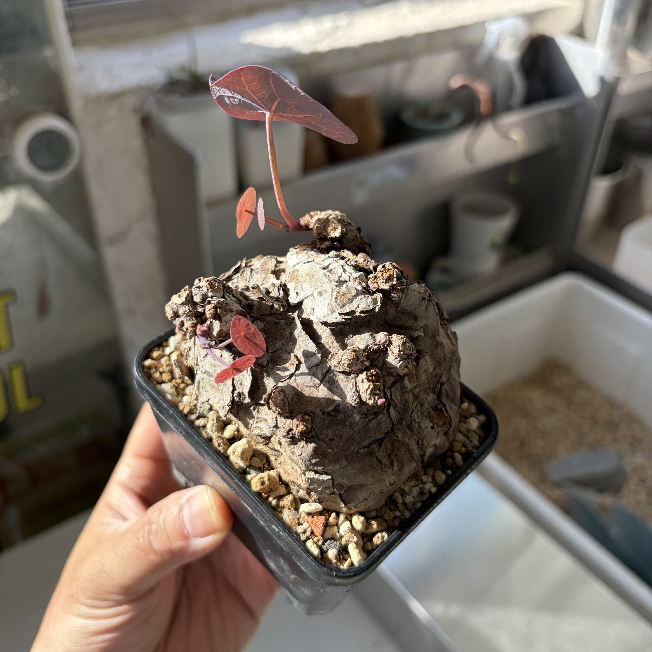 'Caudex' 식물들은 늦가을부터 자연스럽게 잎이 떨어집니다. (환경에 따라 잎이 지지 않을 수 있습니다.) 잎이 떨어지기 시작하면 서서히 물을 줄여나가며 휴면기인 겨울 동안에는 2-3주 1회 가볍게 분무 해주시면 됩니다.