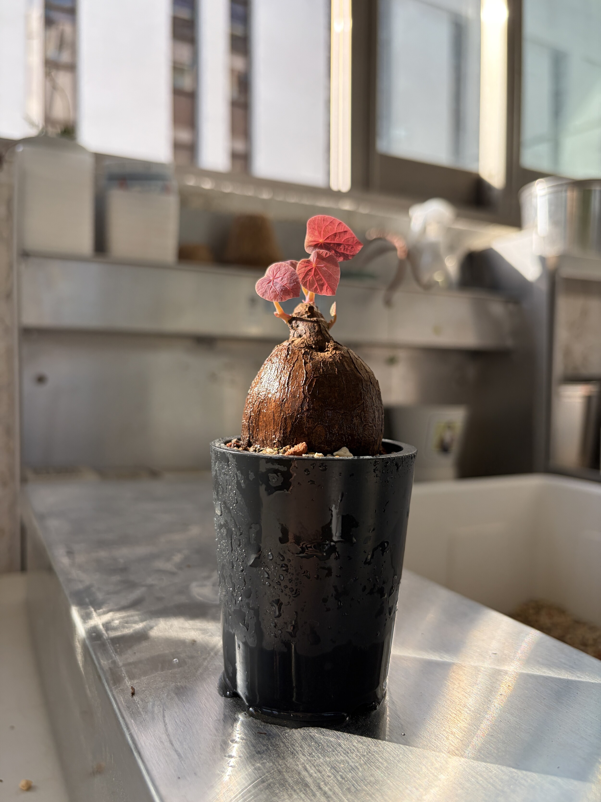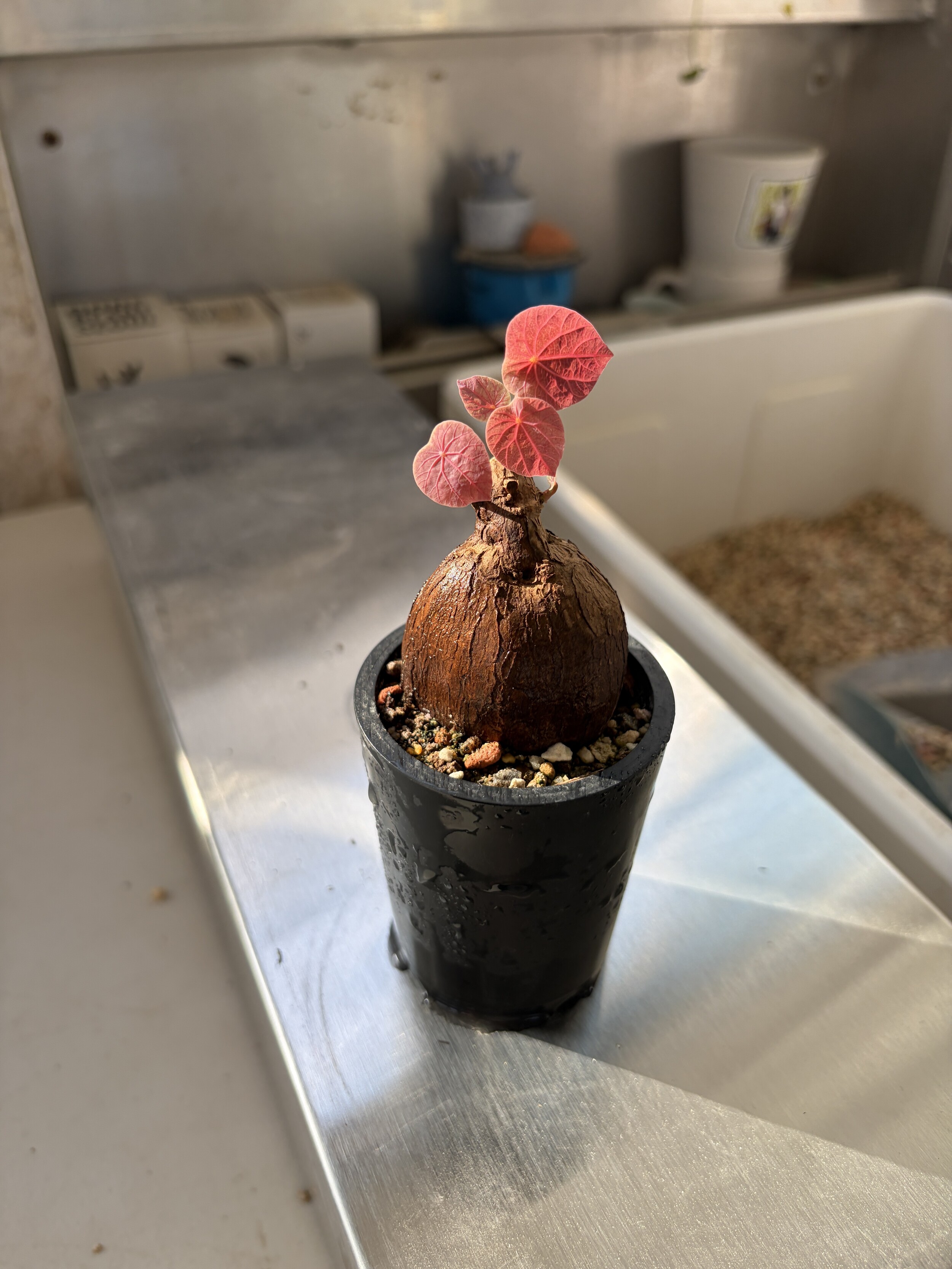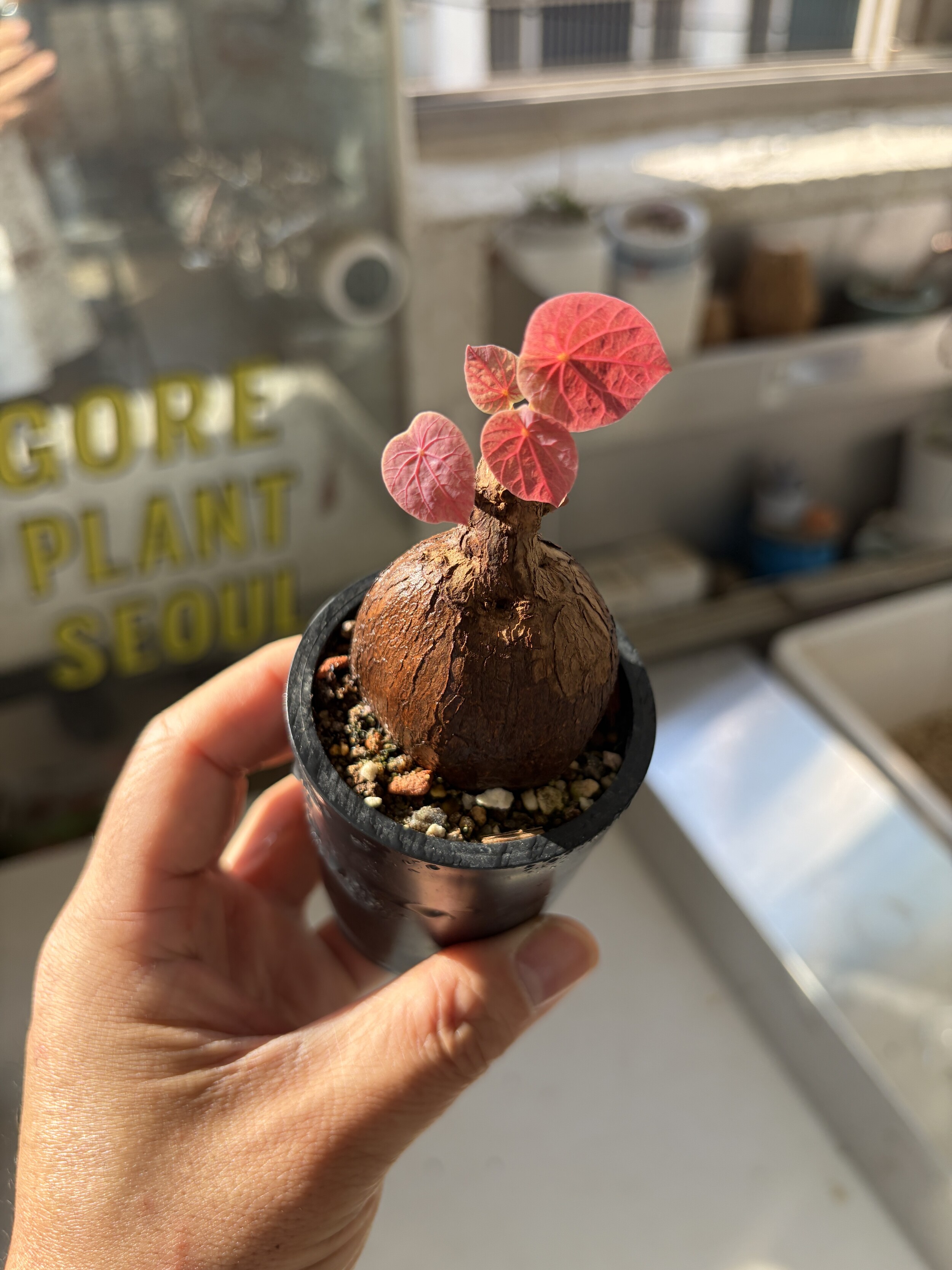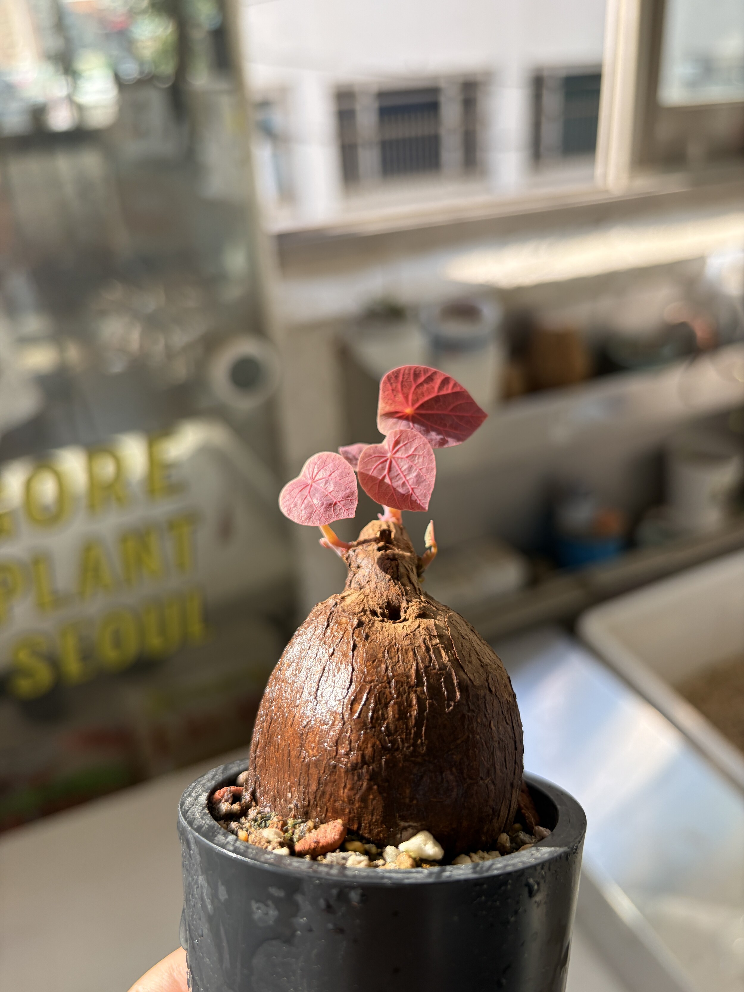 'Caudex' 식물들은 늦가을부터 자연스럽게 잎이 떨어집니다. (환경에 따라 잎이 지지 않을 수 있습니다.) 잎이 떨어지기 시작하면 서서히 물을 줄여나가며 휴면기인 겨울 동안에는 2-3주 1회 가볍게 분무 해주시면 됩니다.