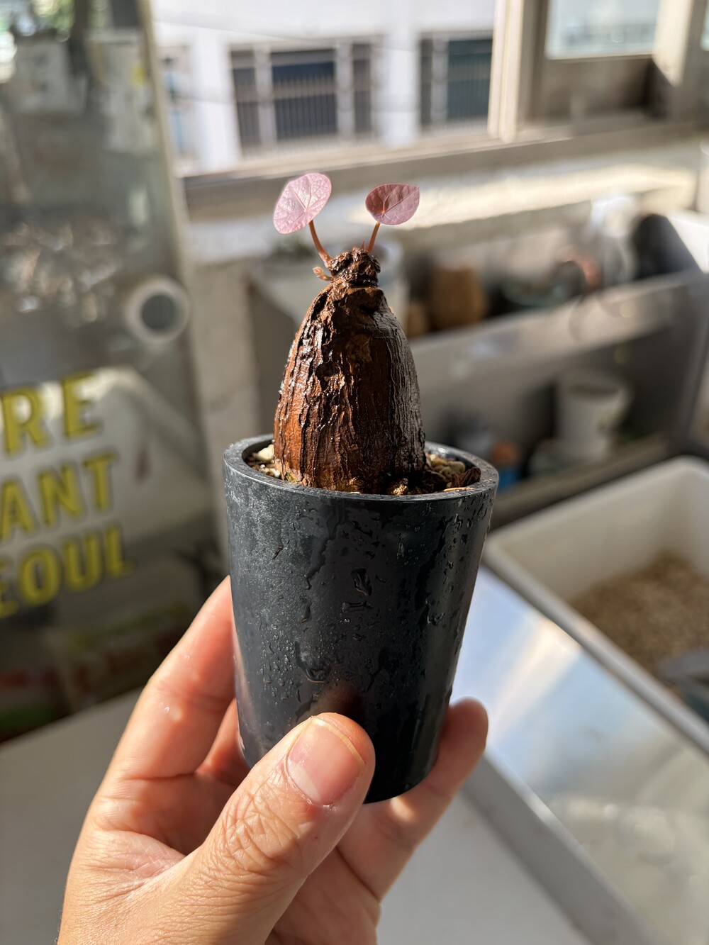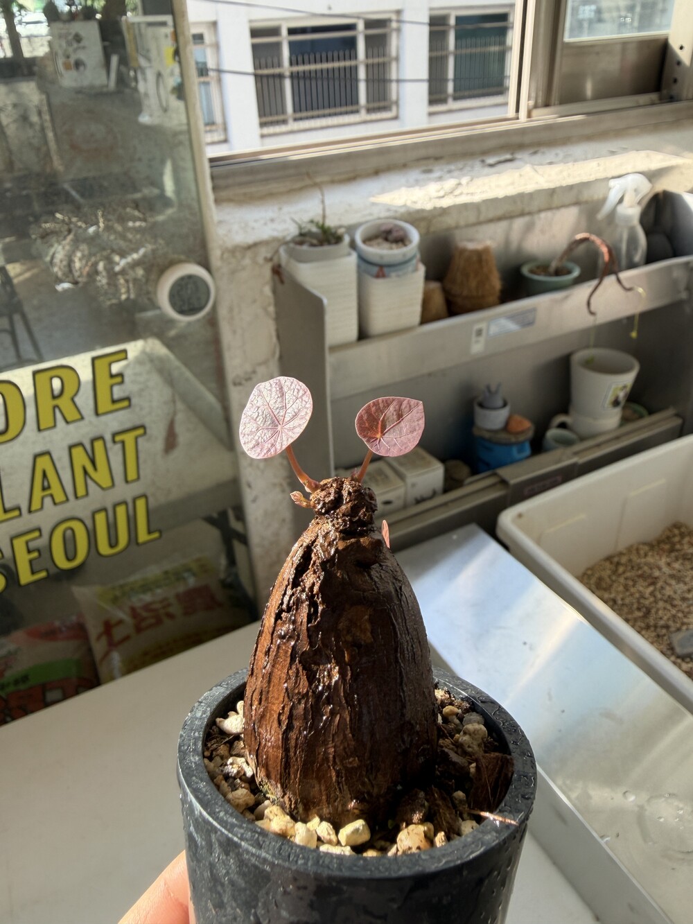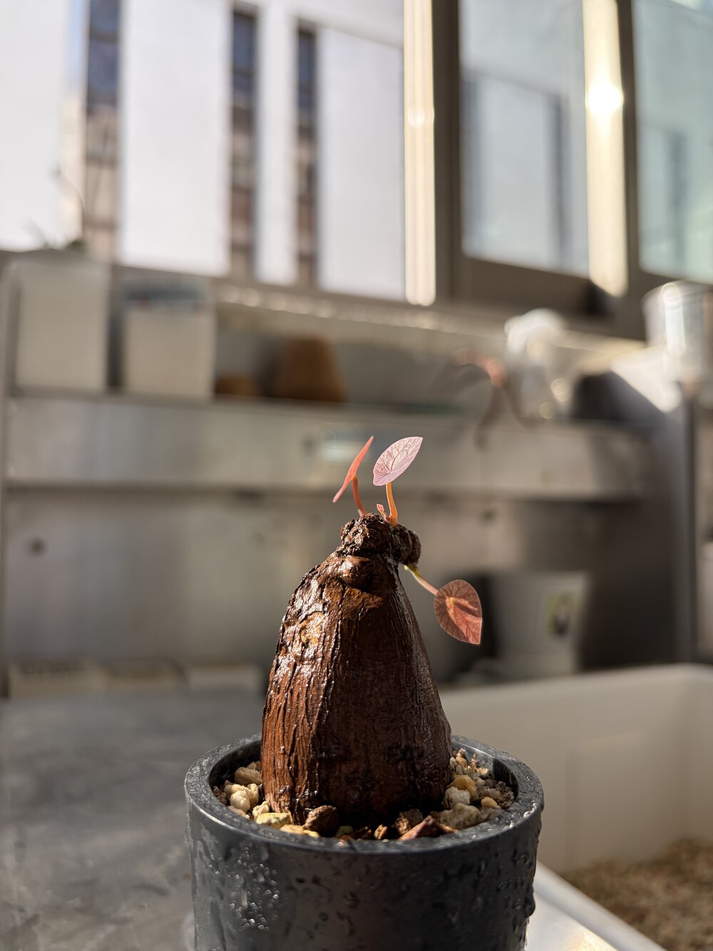 'Caudex' 식물들은 늦가을부터 자연스럽게 잎이 떨어집니다. (환경에 따라 잎이 지지 않을 수 있습니다.) 잎이 떨어지기 시작하면 서서히 물을 줄여나가며 휴면기인 겨울 동안에는 2-3주 1회 가볍게 분무 해주시면 됩니다.