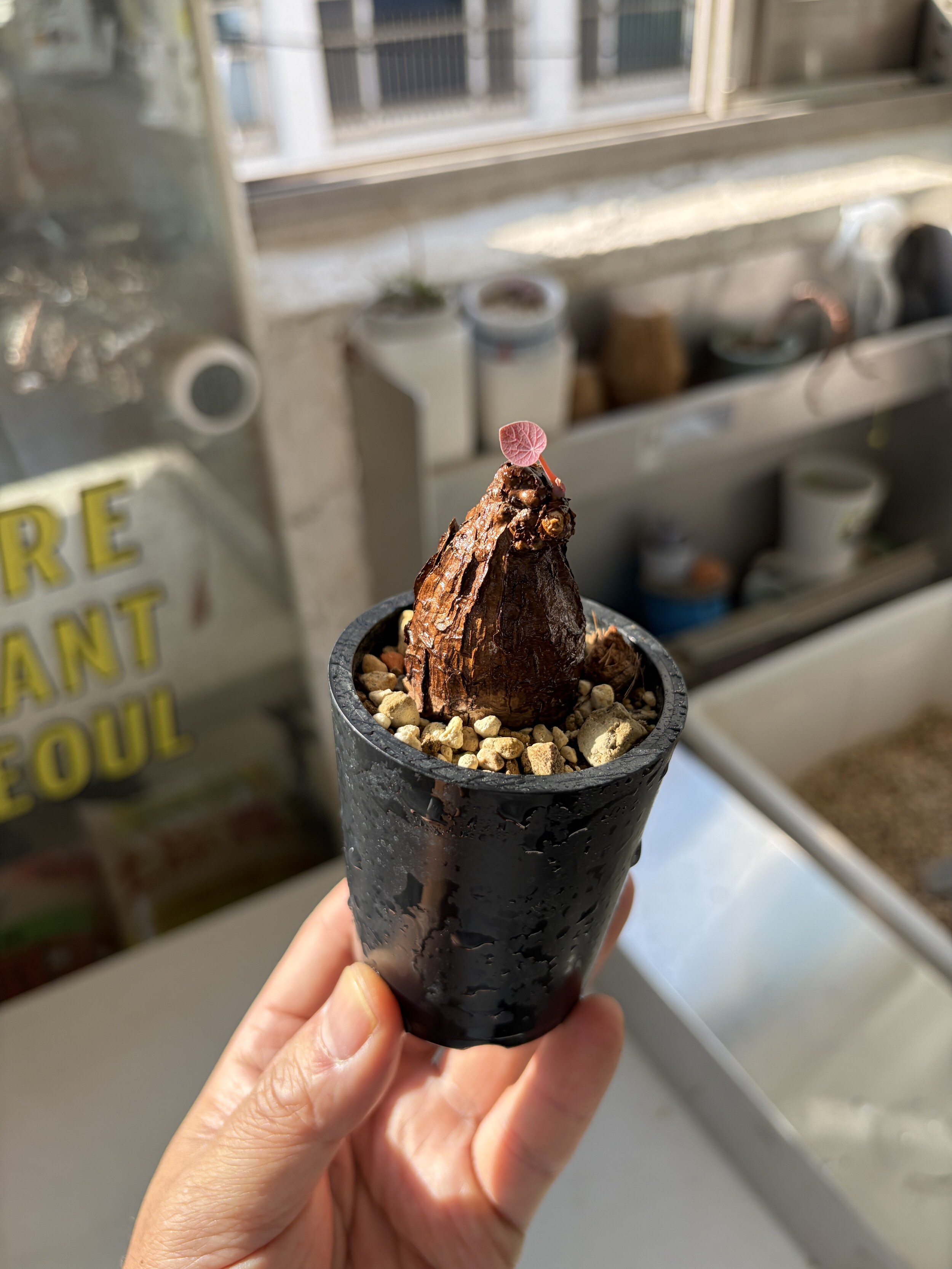 'Caudex' 식물들은 늦가을부터 자연스럽게 잎이 떨어집니다. (환경에 따라 잎이 지지 않을 수 있습니다.) 잎이 떨어지기 시작하면 서서히 물을 줄여나가며 휴면기인 겨울 동안에는 2-3주 1회 가볍게 분무 해주시면 됩니다.