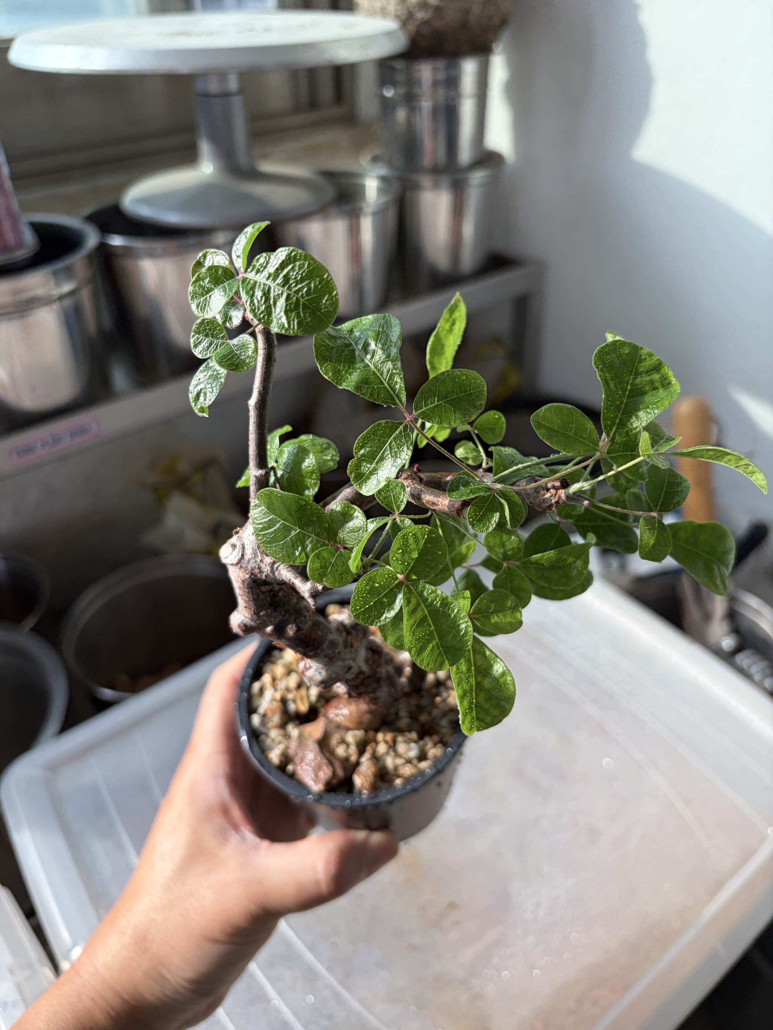 'Caudex' 식물들은 늦가을부터 자연스럽게 잎이 떨어집니다. (환경에 따라 잎이 지지 않을 수 있습니다.) 잎이 떨어지기 시작하면 서서히 물을 줄여나가며 휴면기인 겨울 동안에는 2-3주 1회 가볍게 분무 해주시면 됩니다.