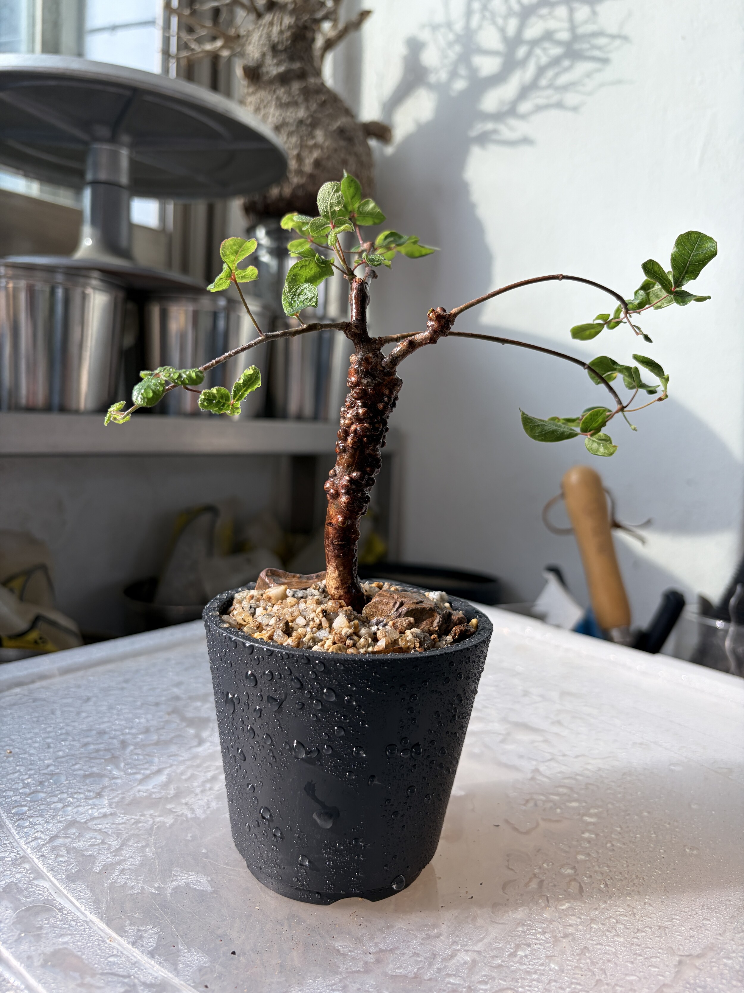 'Caudex' 식물들은 늦가을부터 자연스럽게 잎이 떨어집니다. (환경에 따라 잎이 지지 않을 수 있습니다.) 잎이 떨어지기 시작하면 서서히 물을 줄여나가며 휴면기인 겨울 동안에는 2-3주 1회 가볍게 분무 해주시면 됩니다.