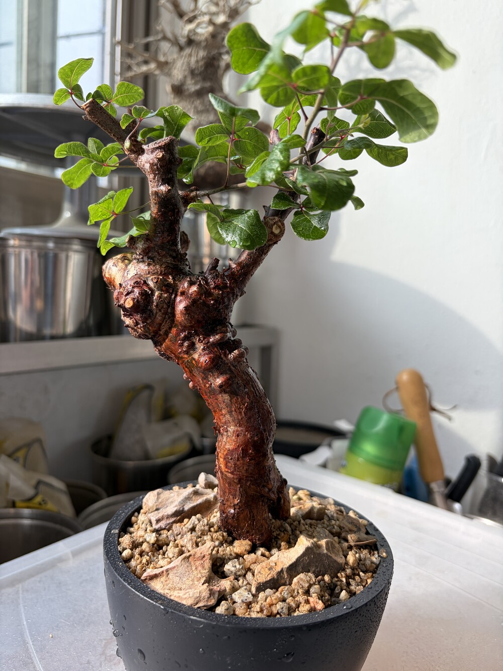 'Caudex' 식물들은 늦가을부터 자연스럽게 잎이 떨어집니다. (환경에 따라 잎이 지지 않을 수 있습니다.) 잎이 떨어지기 시작하면 서서히 물을 줄여나가며 휴면기인 겨울 동안에는 2-3주 1회 가볍게 분무 해주시면 됩니다.