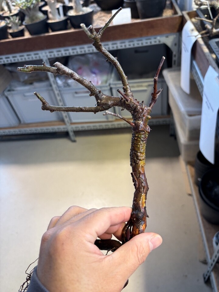 'Caudex' 식물들은 늦가을부터 자연스럽게 잎이 떨어집니다. (환경에 따라 잎이 지지 않을 수 있습니다.) 잎이 떨어지기 시작하면 서서히 물을 줄여나가며 휴면기인 겨울 동안에는 2-3주 1회 가볍게 분무 해주시면 됩니다.