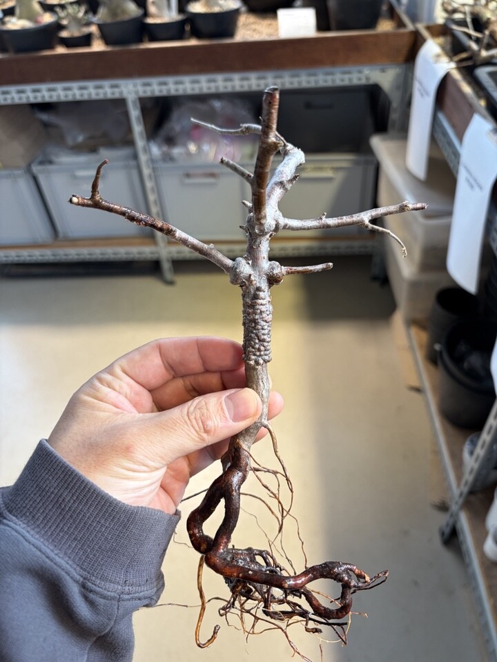 'Caudex' 식물들은 늦가을부터 자연스럽게 잎이 떨어집니다. (환경에 따라 잎이 지지 않을 수 있습니다.) 잎이 떨어지기 시작하면 서서히 물을 줄여나가며 휴면기인 겨울 동안에는 2-3주 1회 가볍게 분무 해주시면 됩니다.