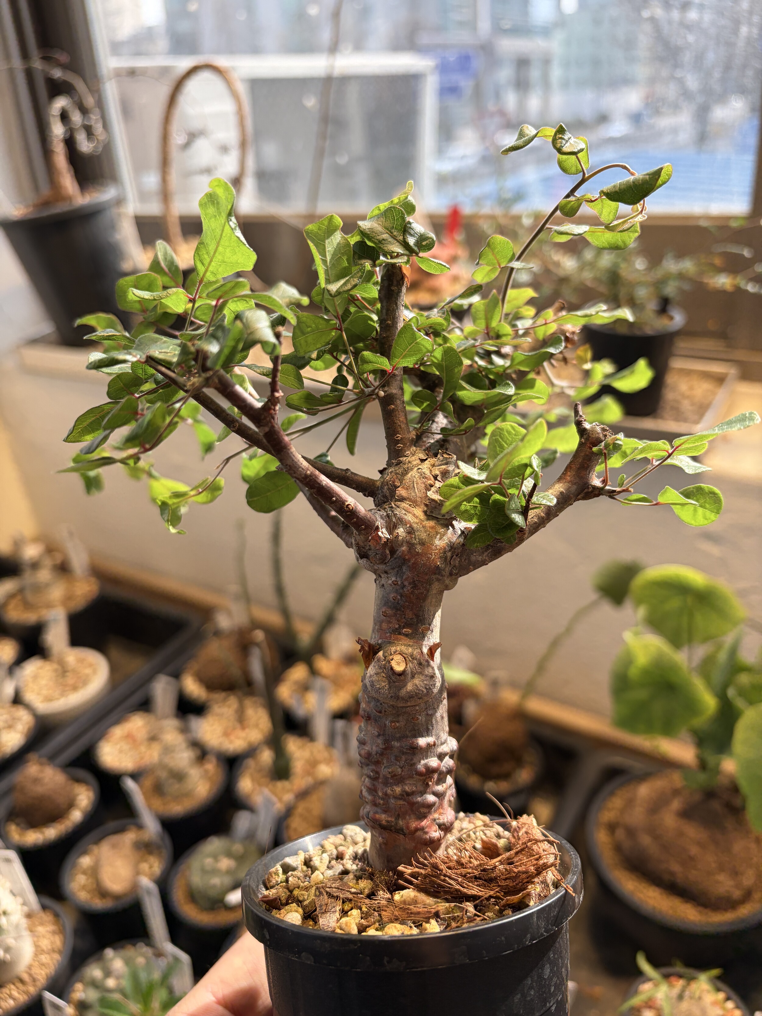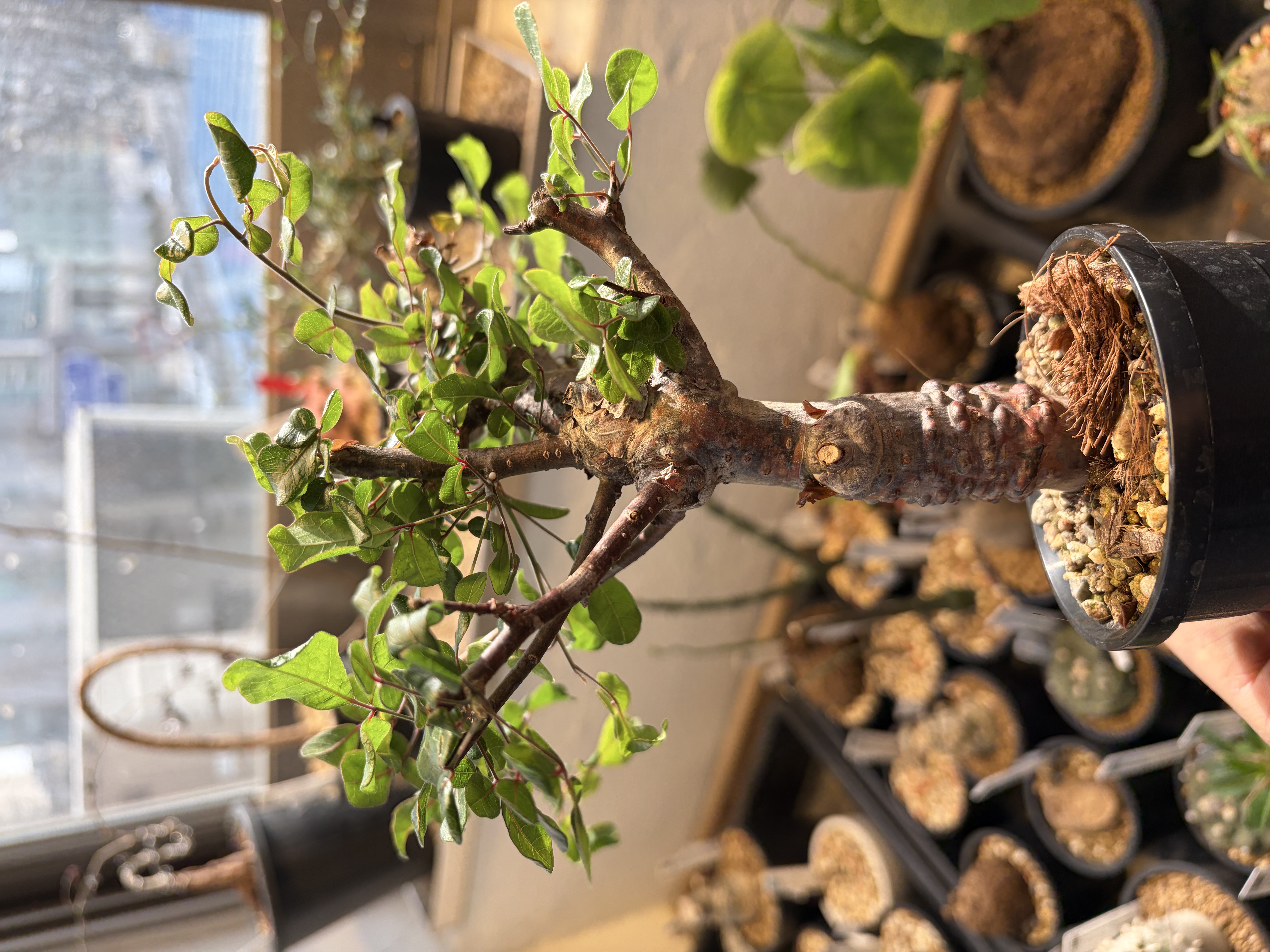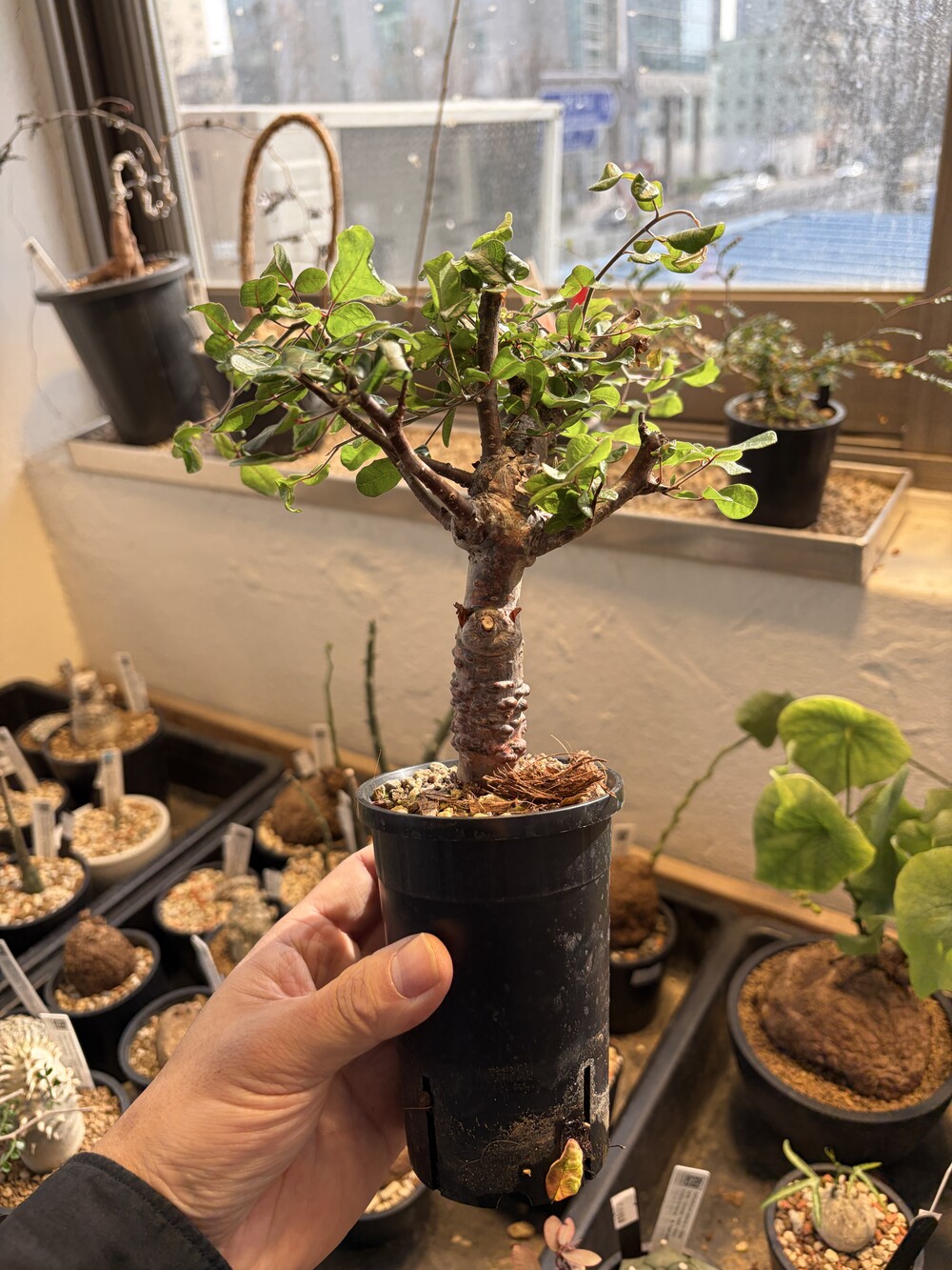 'Caudex' 식물들은 늦가을부터 자연스럽게 잎이 떨어집니다. (환경에 따라 잎이 지지 않을 수 있습니다.) 잎이 떨어지기 시작하면 서서히 물을 줄여나가며 휴면기인 겨울 동안에는 2-3주 1회 가볍게 분무 해주시면 됩니다.