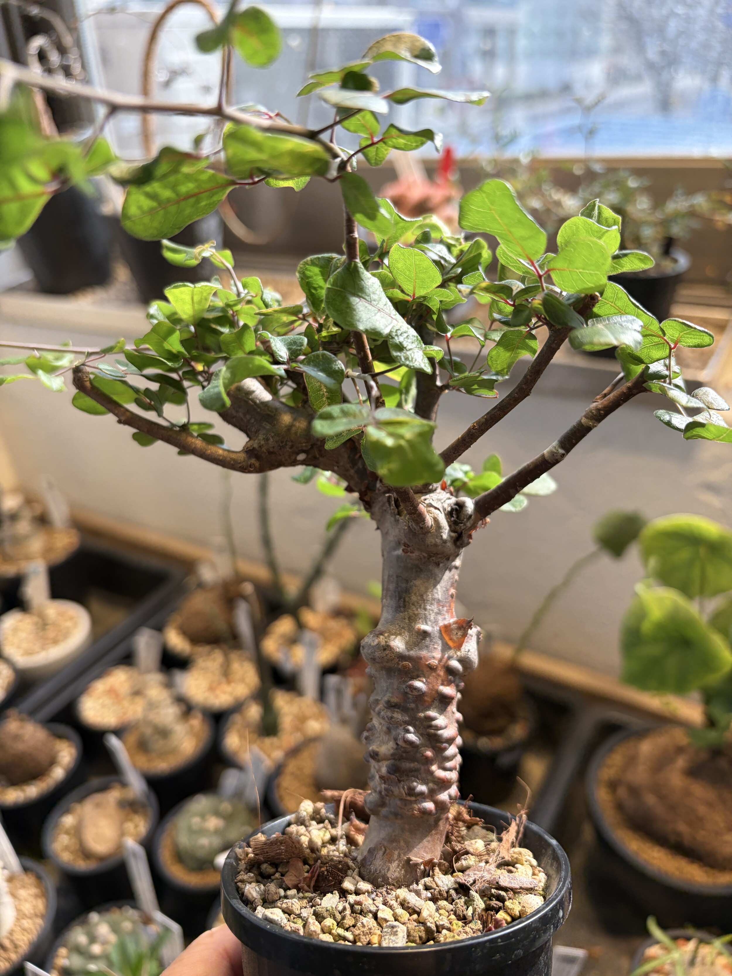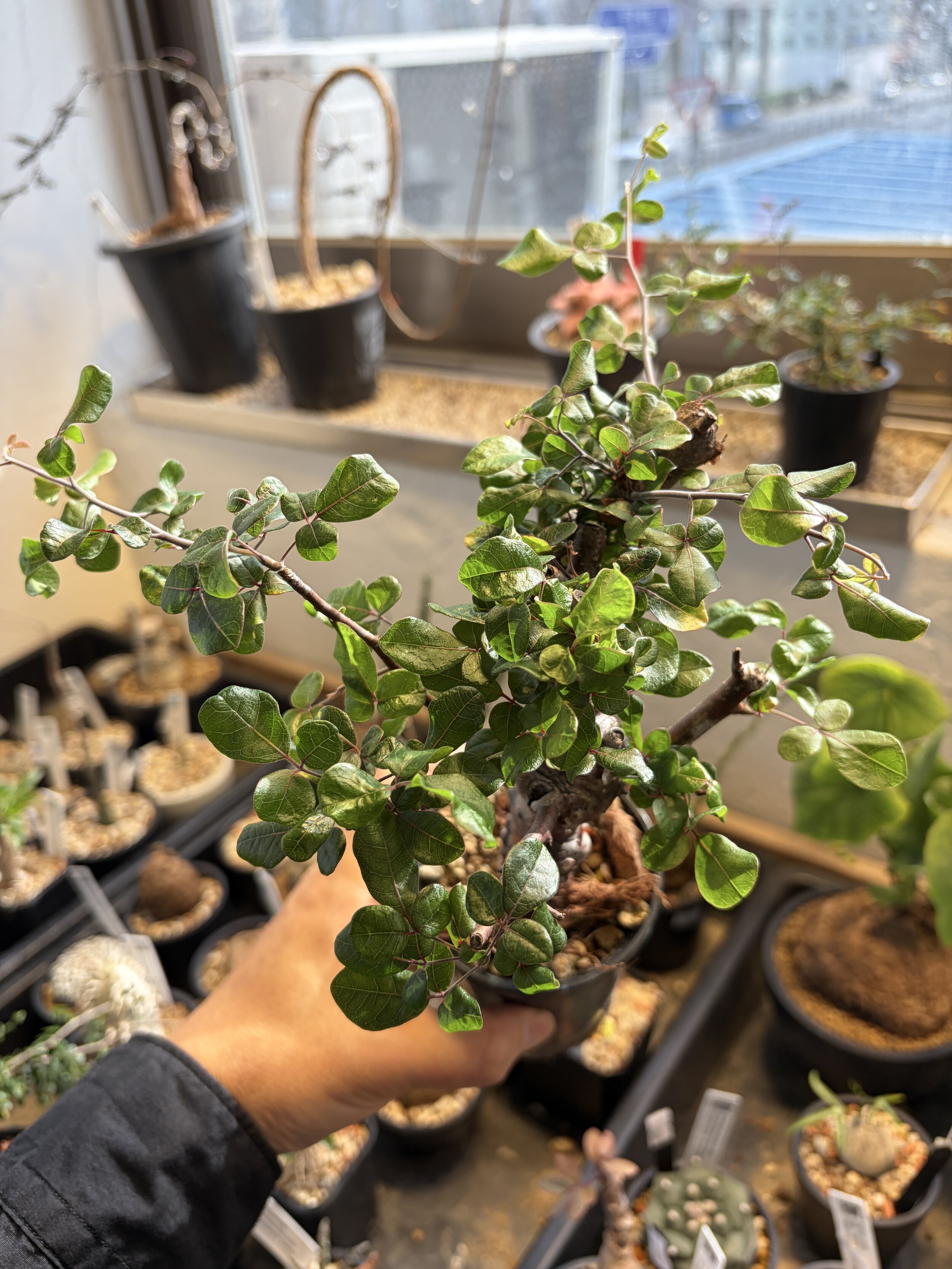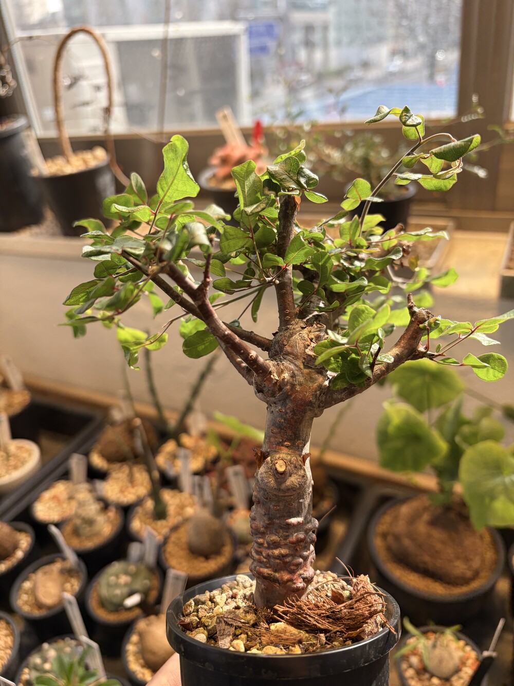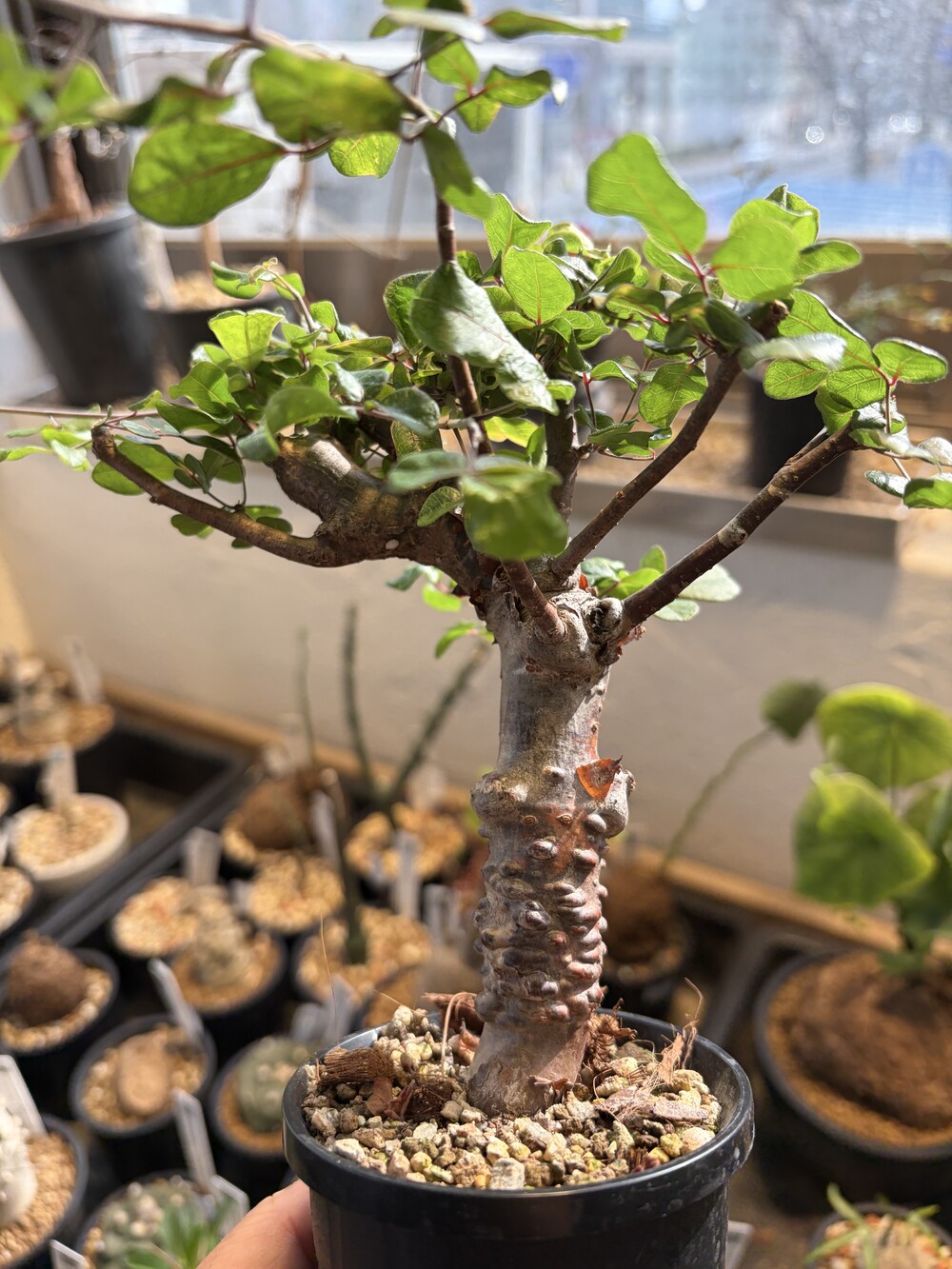 'Caudex' 식물들은 늦가을부터 자연스럽게 잎이 떨어집니다. (환경에 따라 잎이 지지 않을 수 있습니다.) 잎이 떨어지기 시작하면 서서히 물을 줄여나가며 휴면기인 겨울 동안에는 2-3주 1회 가볍게 분무 해주시면 됩니다.