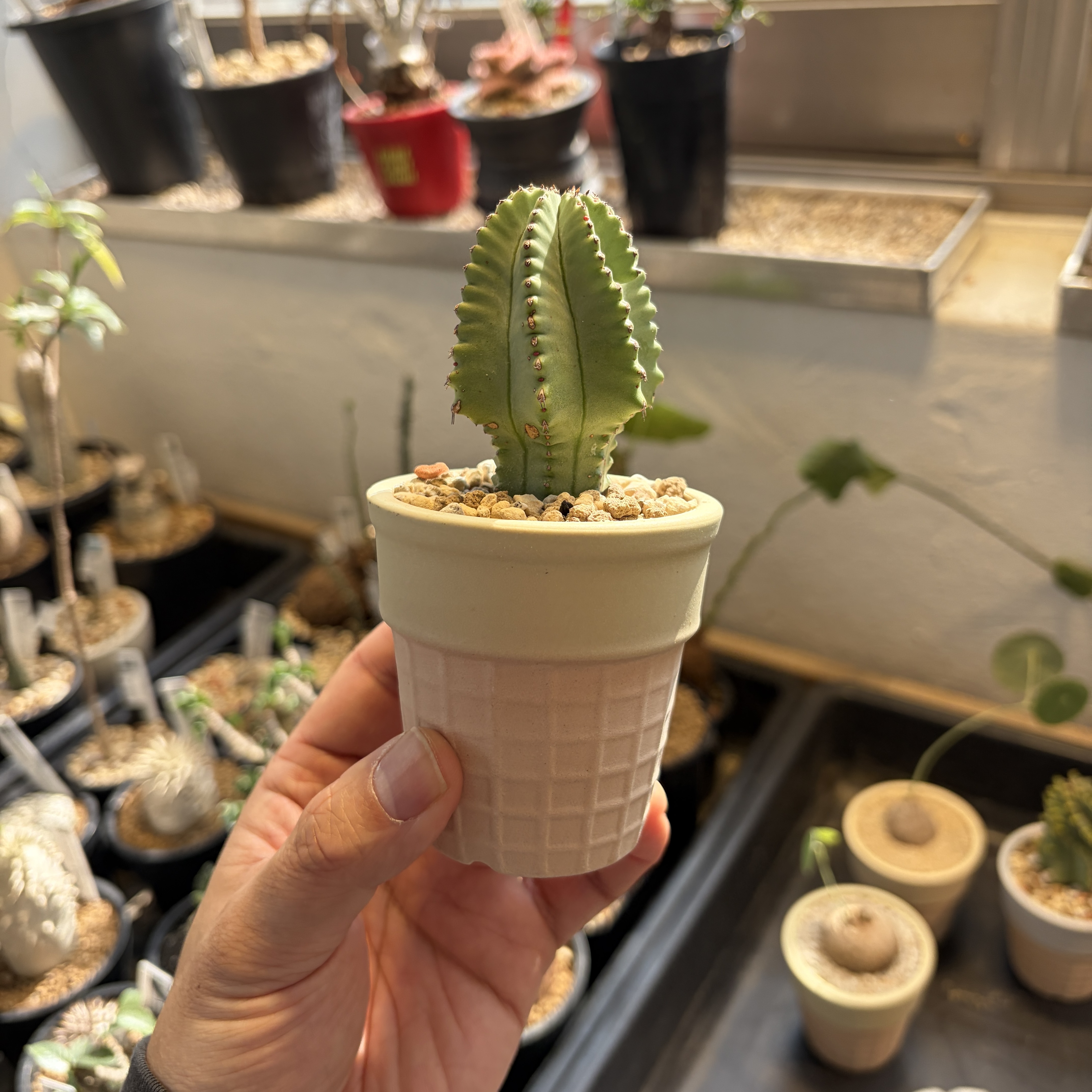 'Caudex' 식물들은 늦가을부터 자연스럽게 잎이 떨어집니다. (환경에 따라 잎이 지지 않을 수 있습니다.) 잎이 떨어지기 시작하면 서서히 물을 줄여나가며 휴면기인 겨울 동안에는 2-3주 1회 가볍게 분무 해주시면 됩니다.