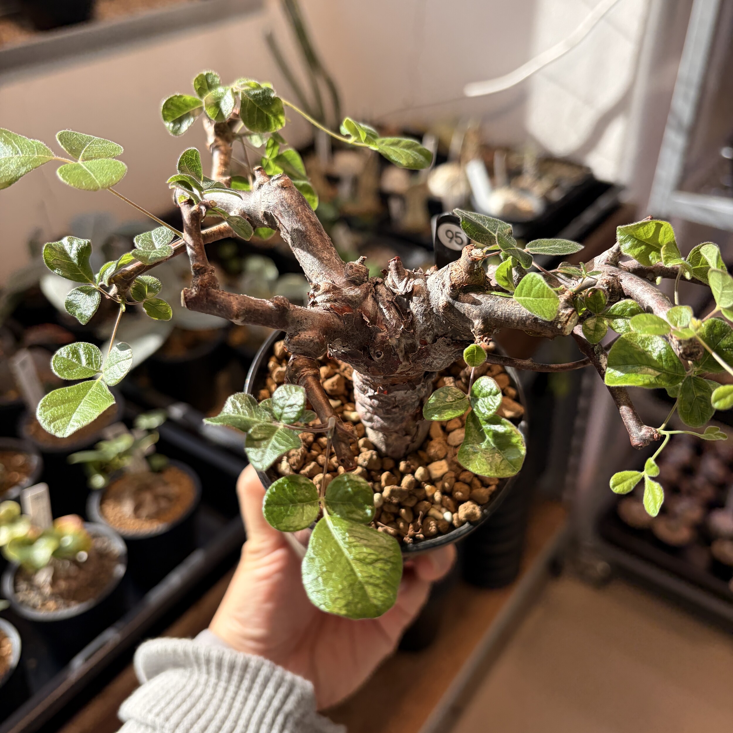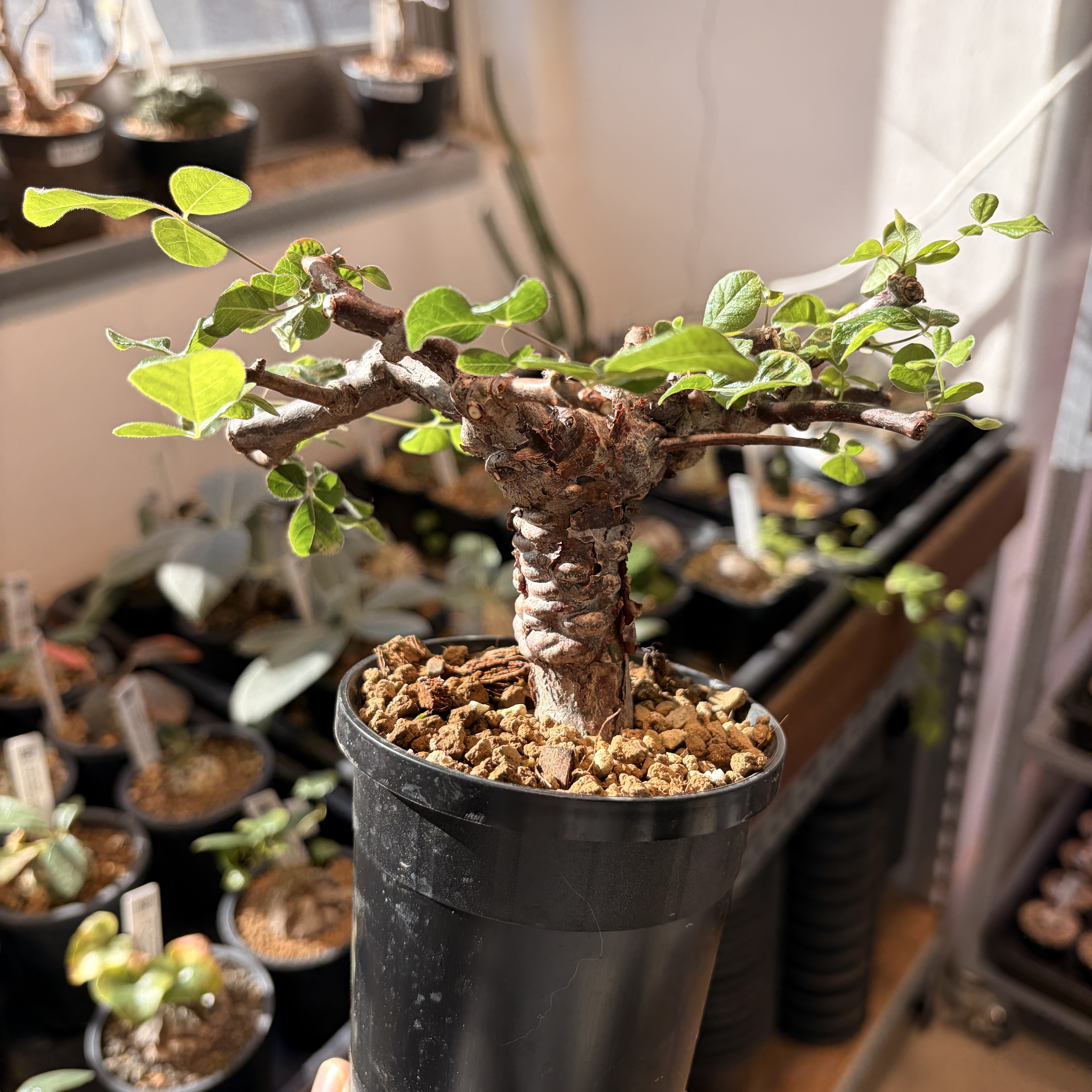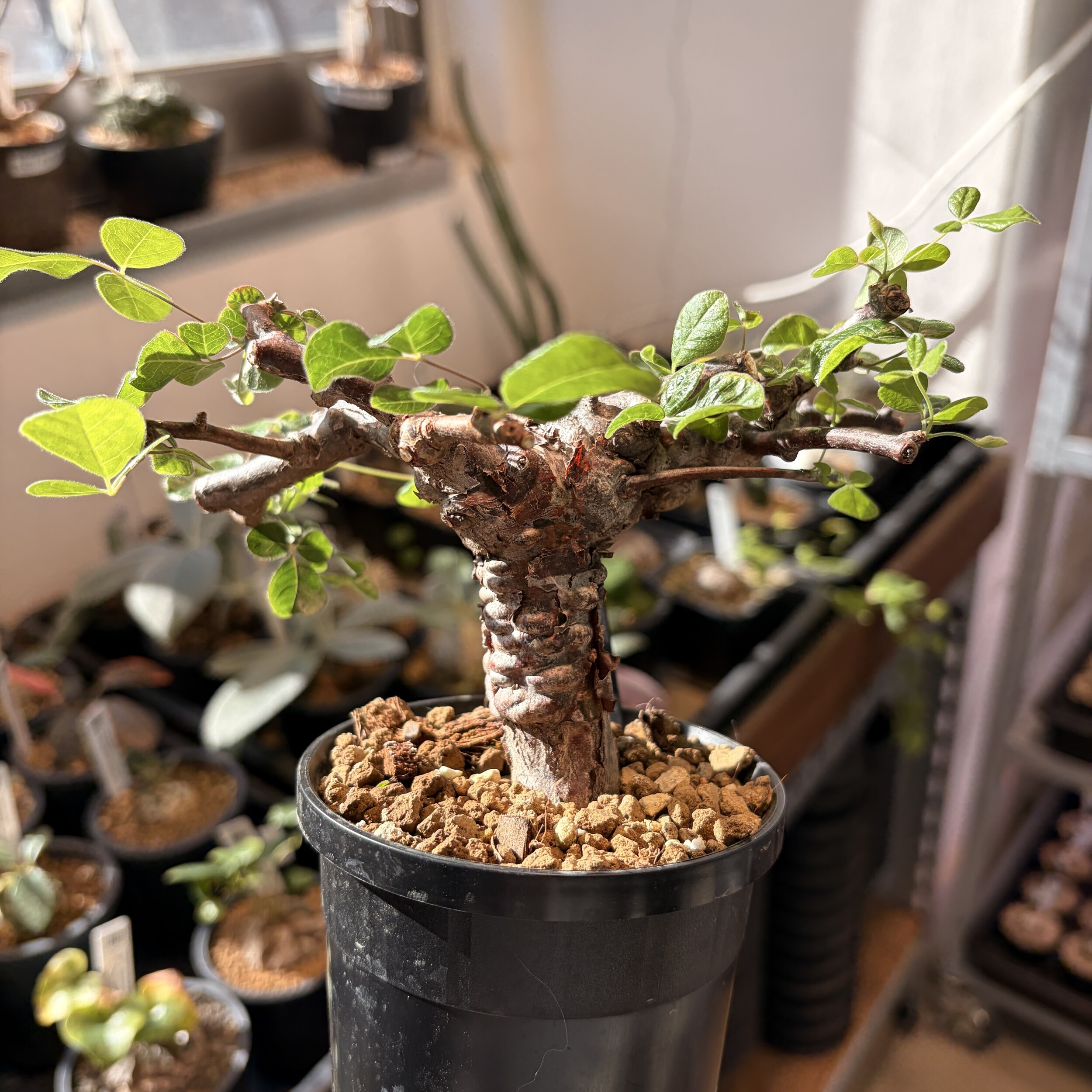 'Caudex' 식물들은 늦가을부터 자연스럽게 잎이 떨어집니다. (환경에 따라 잎이 지지 않을 수 있습니다.) 잎이 떨어지기 시작하면 서서히 물을 줄여나가며 휴면기인 겨울 동안에는 2-3주 1회 가볍게 분무 해주시면 됩니다.