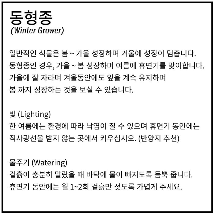●모든 식물은 화분 채 발송되며 사진과 동일한 식물이나 모양의 차이가 발생 할 수 있습니다. 최대한 건강한 식물들만 발송 해드립니다. 수형이 궁금하신분은 구매 후 연락주시면 미리 사진을 보내드리며 확인 한 뒤 발송 하겠습니다.