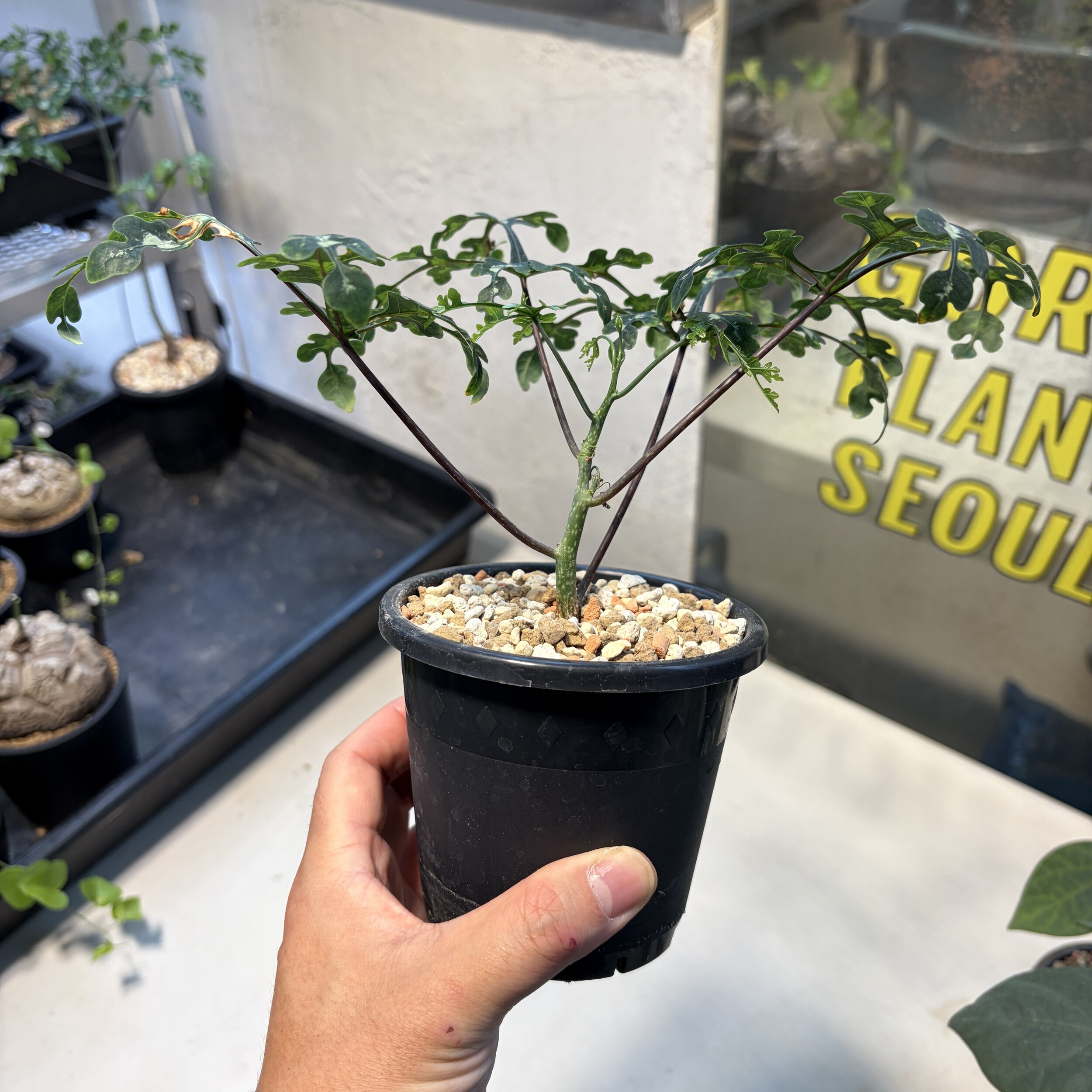 'Caudex' 식물들은 늦가을부터 자연스럽게 잎이 떨어집니다. (환경에 따라 잎이 지지 않을 수 있습니다.) 잎이 떨어지기 시작하면 서서히 물을 줄여나가며 휴면기인 겨울 동안에는 2-3주 1회 가볍게 분무 해주시면 됩니다.