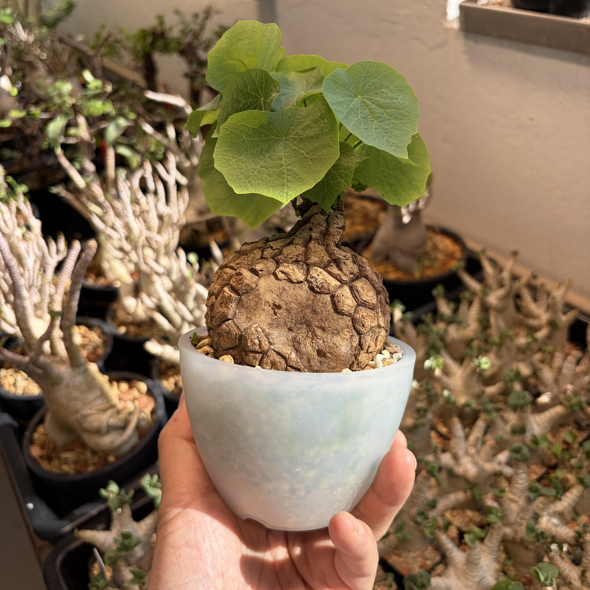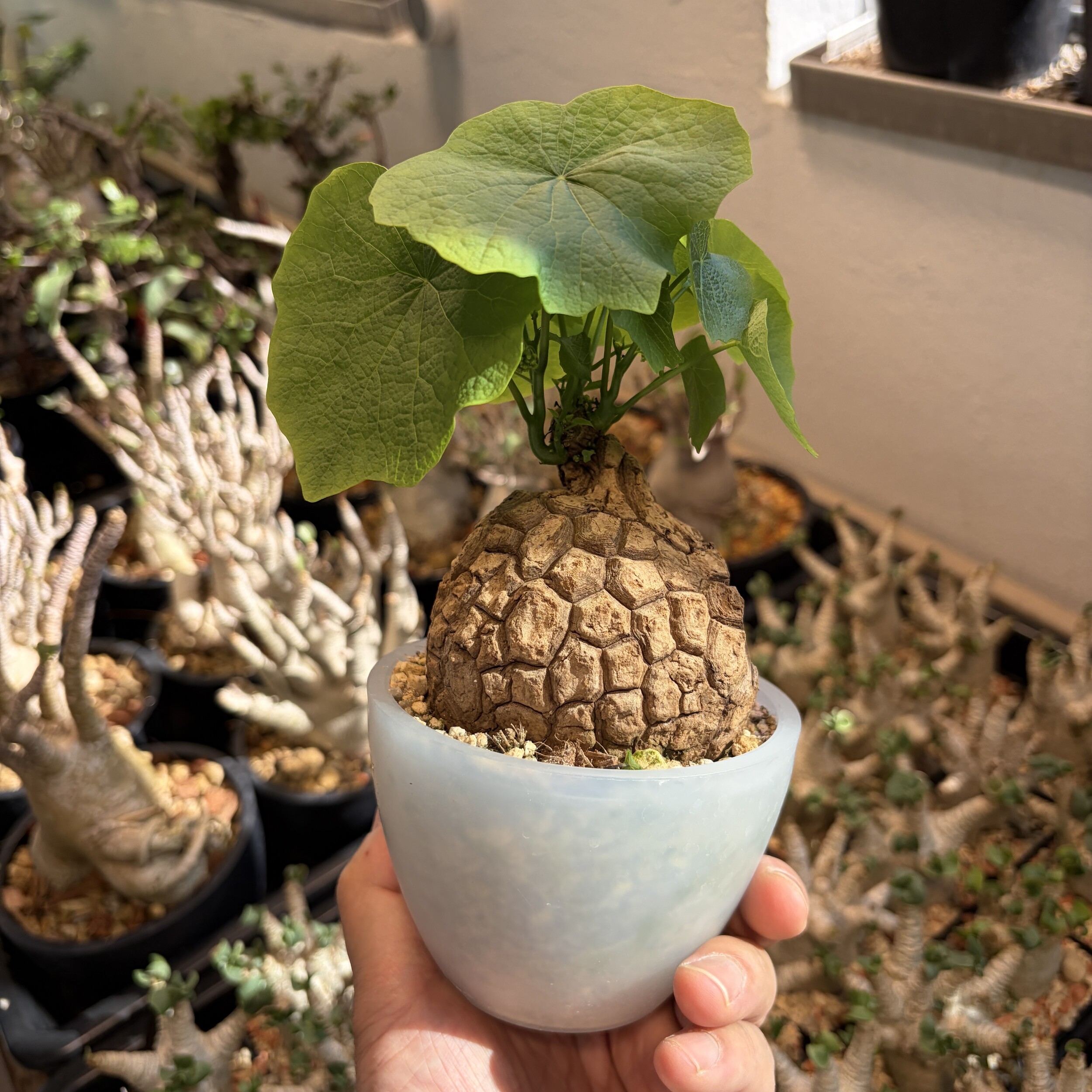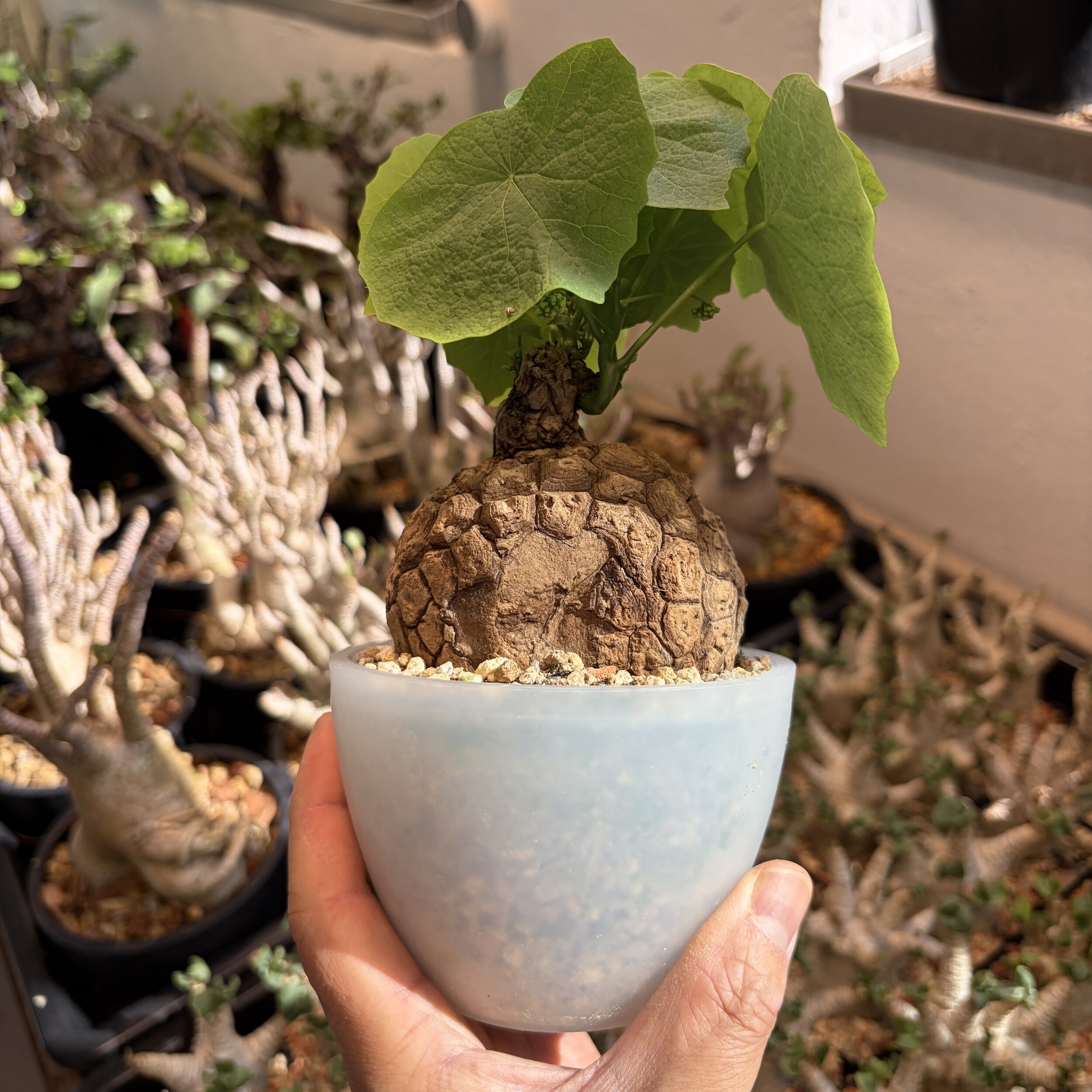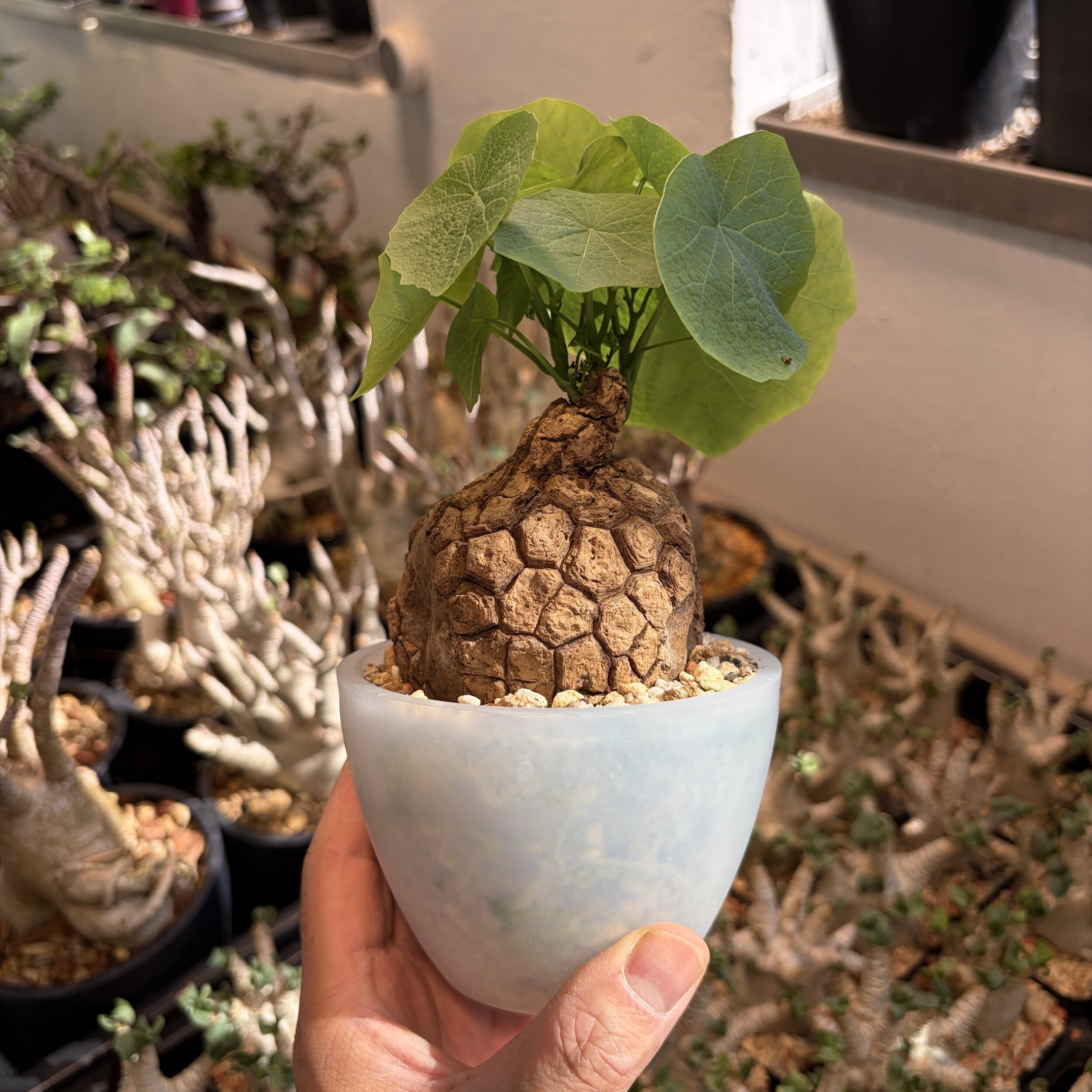 'Caudex' 식물들은 늦가을부터 자연스럽게 잎이 떨어집니다. (환경에 따라 잎이 지지 않을 수 있습니다.) 잎이 떨어지기 시작하면 서서히 물을 줄여나가며 휴면기인 겨울 동안에는 2-3주 1회 가볍게 분무 해주시면 됩니다.
