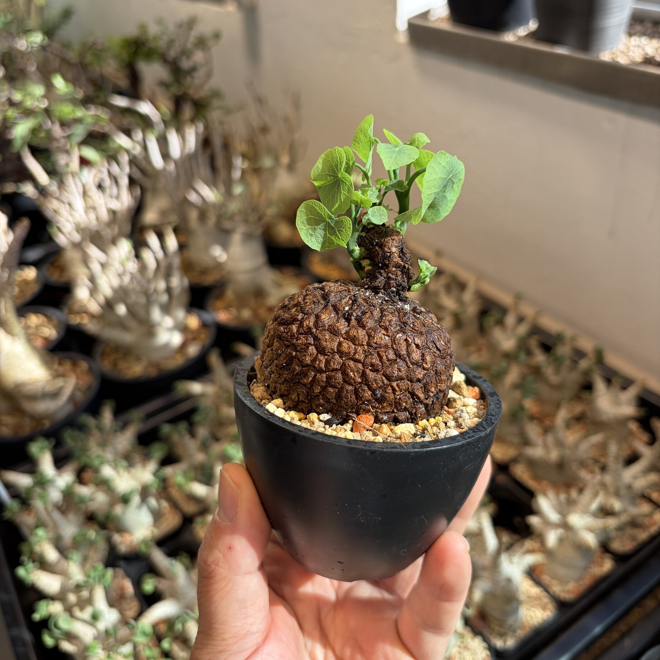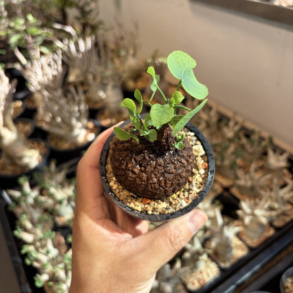 'Caudex' 식물들은 늦가을부터 자연스럽게 잎이 떨어집니다. (환경에 따라 잎이 지지 않을 수 있습니다.) 잎이 떨어지기 시작하면 서서히 물을 줄여나가며 휴면기인 겨울 동안에는 2-3주 1회 가볍게 분무 해주시면 됩니다.