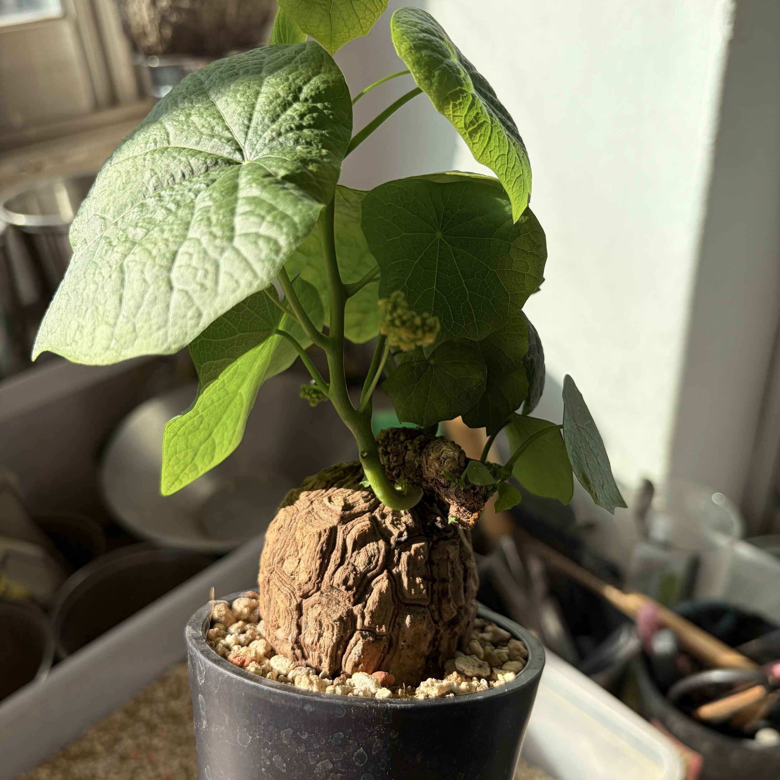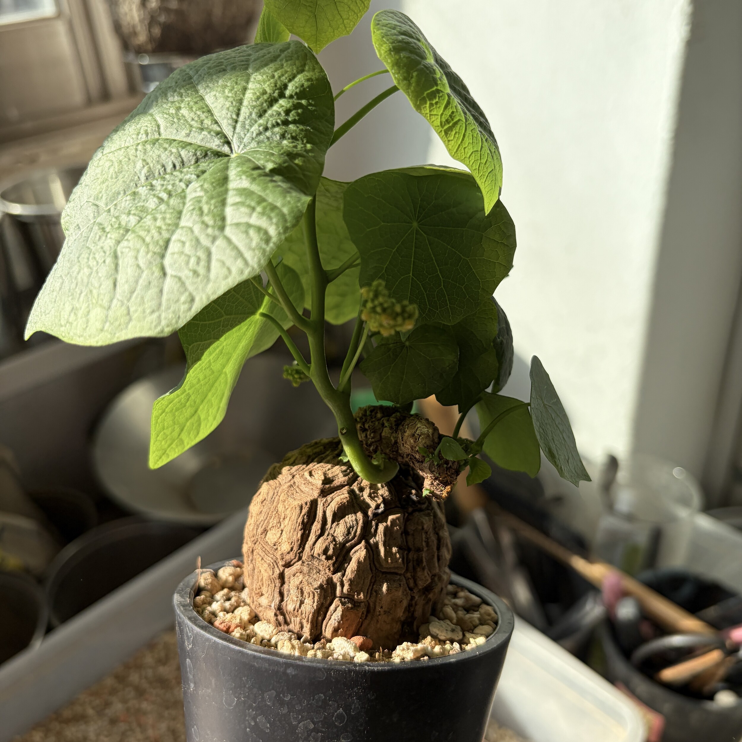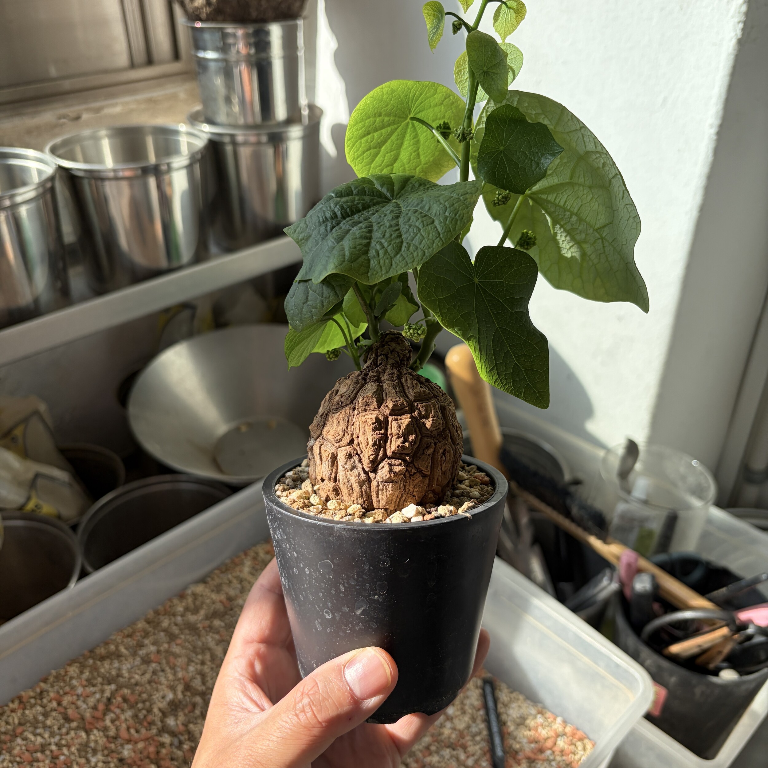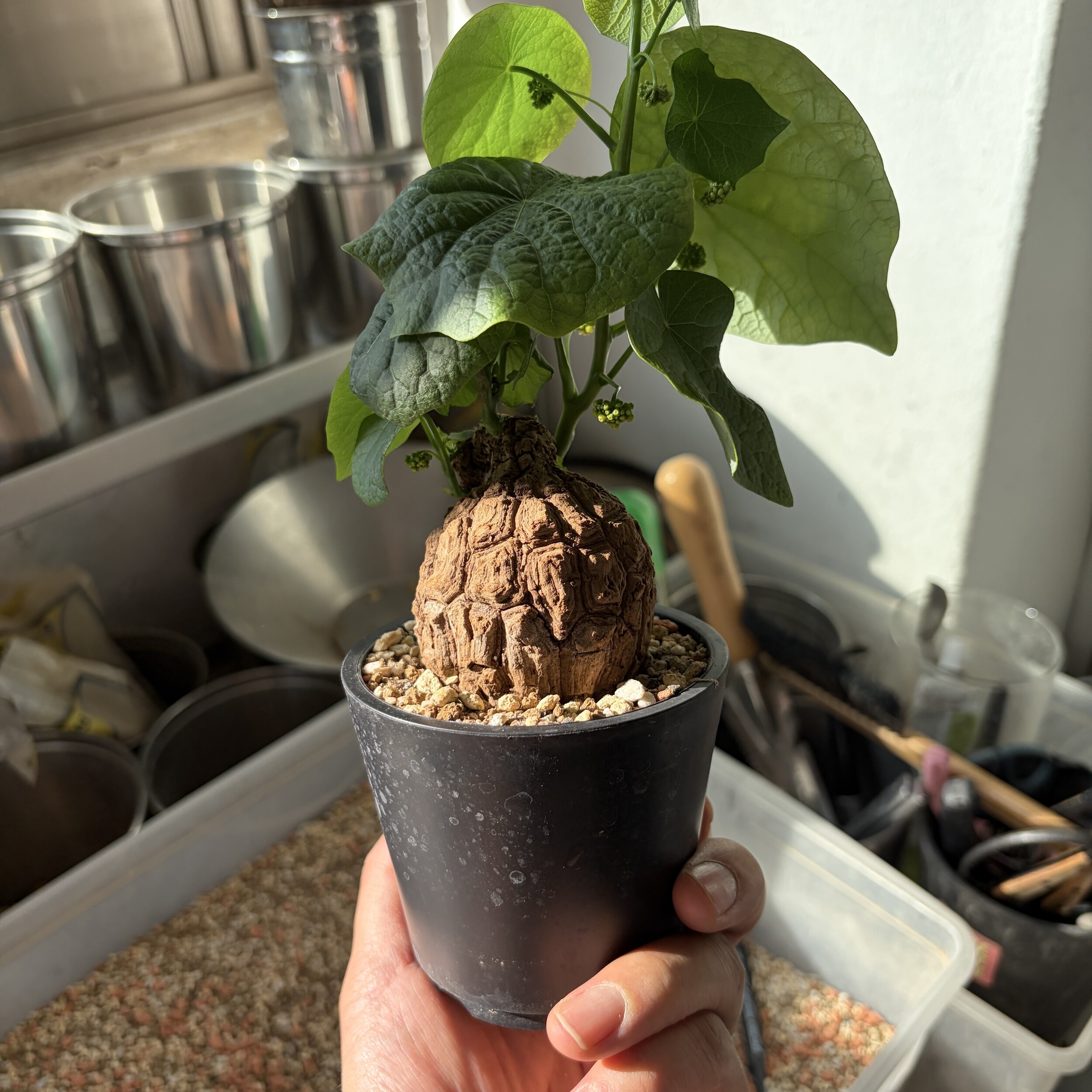 'Caudex' 식물들은 늦가을부터 자연스럽게 잎이 떨어집니다. (환경에 따라 잎이 지지 않을 수 있습니다.) 잎이 떨어지기 시작하면 서서히 물을 줄여나가며 휴면기인 겨울 동안에는 2-3주 1회 가볍게 분무 해주시면 됩니다.