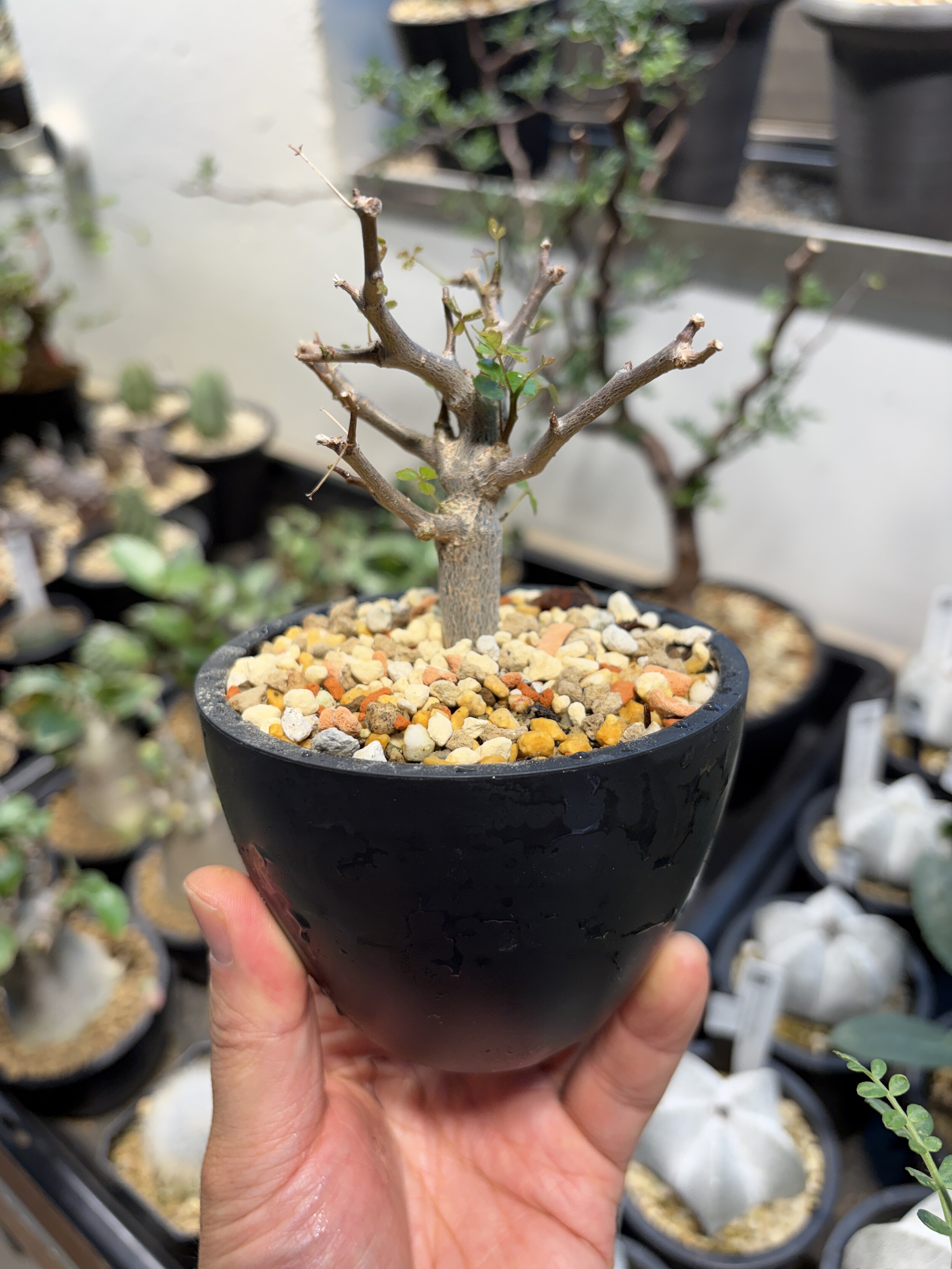 'Caudex' 식물들은 늦가을부터 자연스럽게 잎이 떨어집니다. (환경에 따라 잎이 지지 않을 수 있습니다.) 잎이 떨어지기 시작하면 서서히 물을 줄여나가며 휴면기인 겨울 동안에는 2-3주 1회 가볍게 분무 해주시면 됩니다.