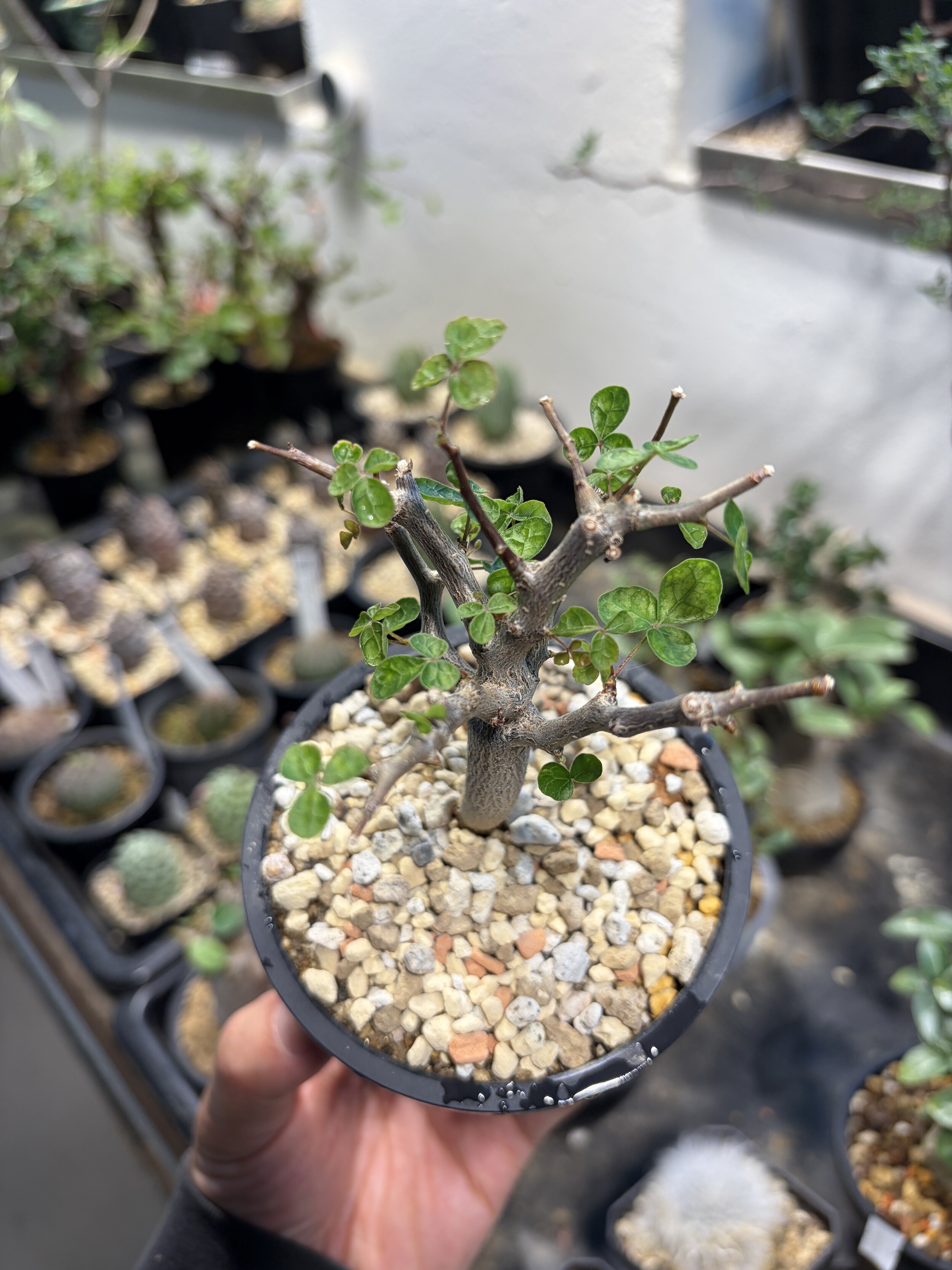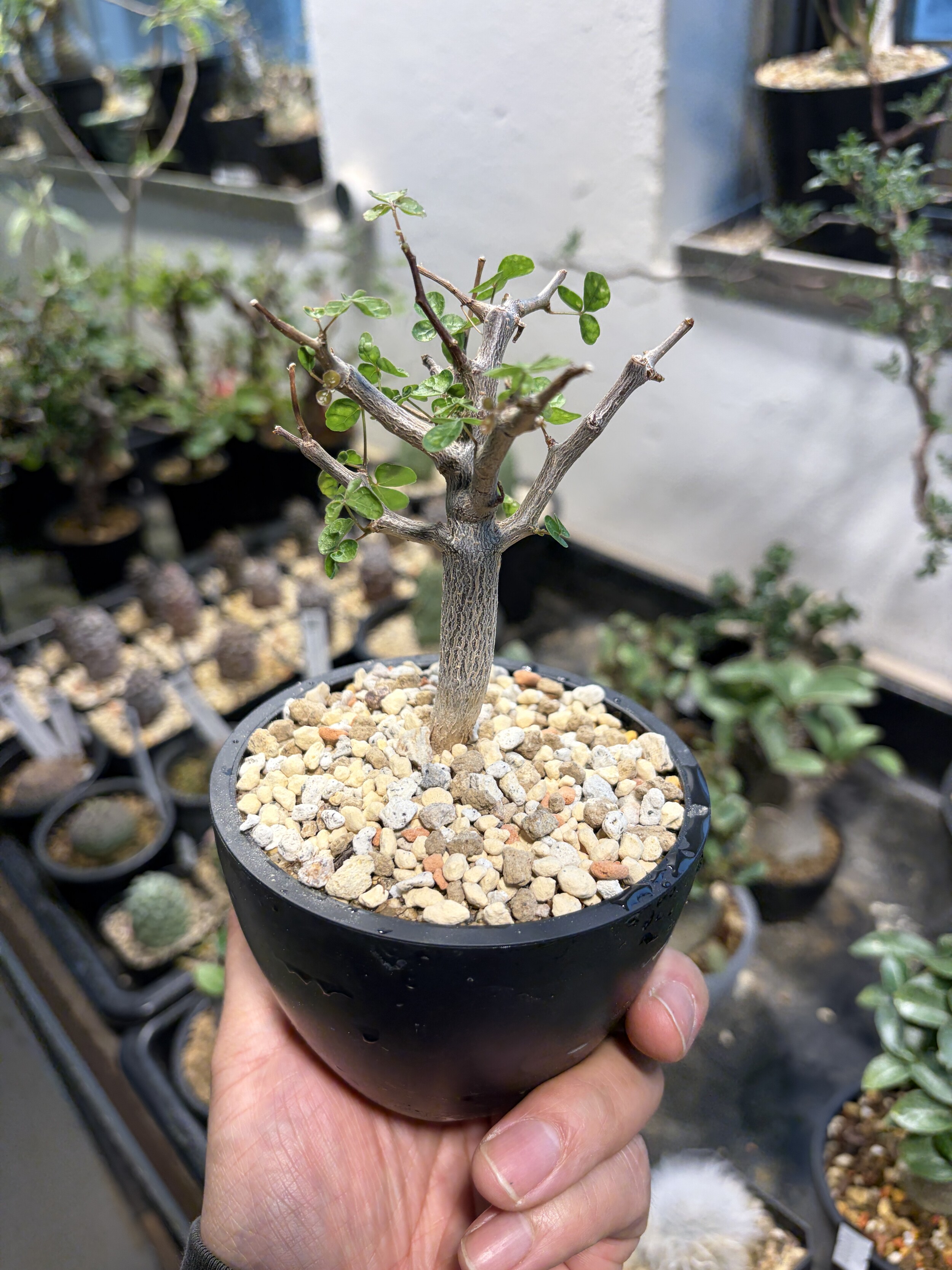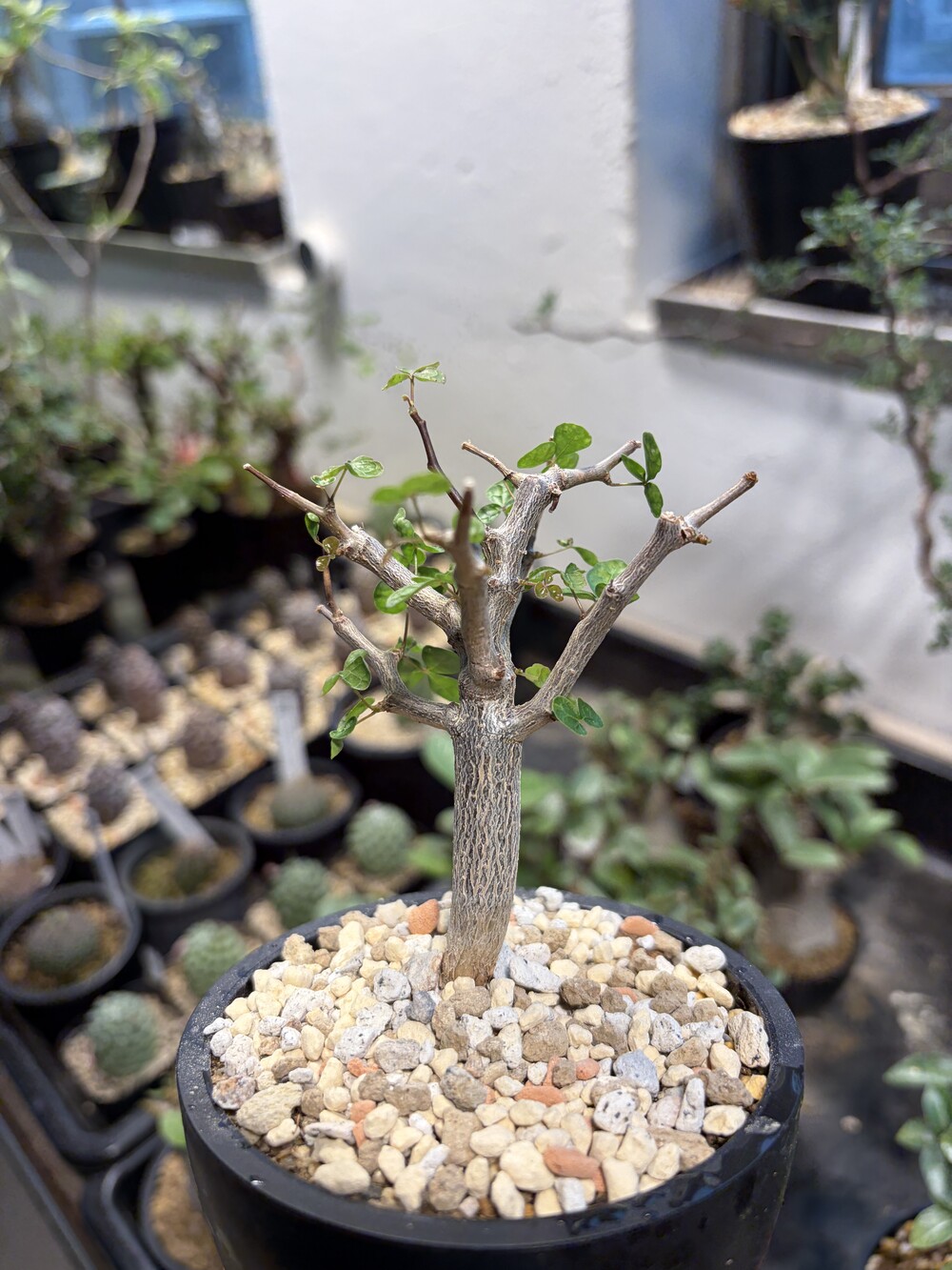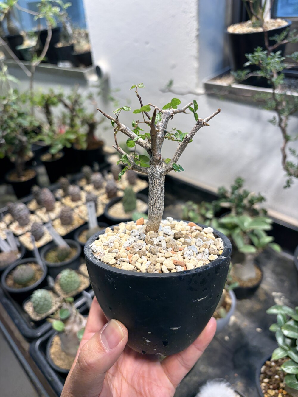 'Caudex' 식물들은 늦가을부터 자연스럽게 잎이 떨어집니다. (환경에 따라 잎이 지지 않을 수 있습니다.) 잎이 떨어지기 시작하면 서서히 물을 줄여나가며 휴면기인 겨울 동안에는 2-3주 1회 가볍게 분무 해주시면 됩니다.