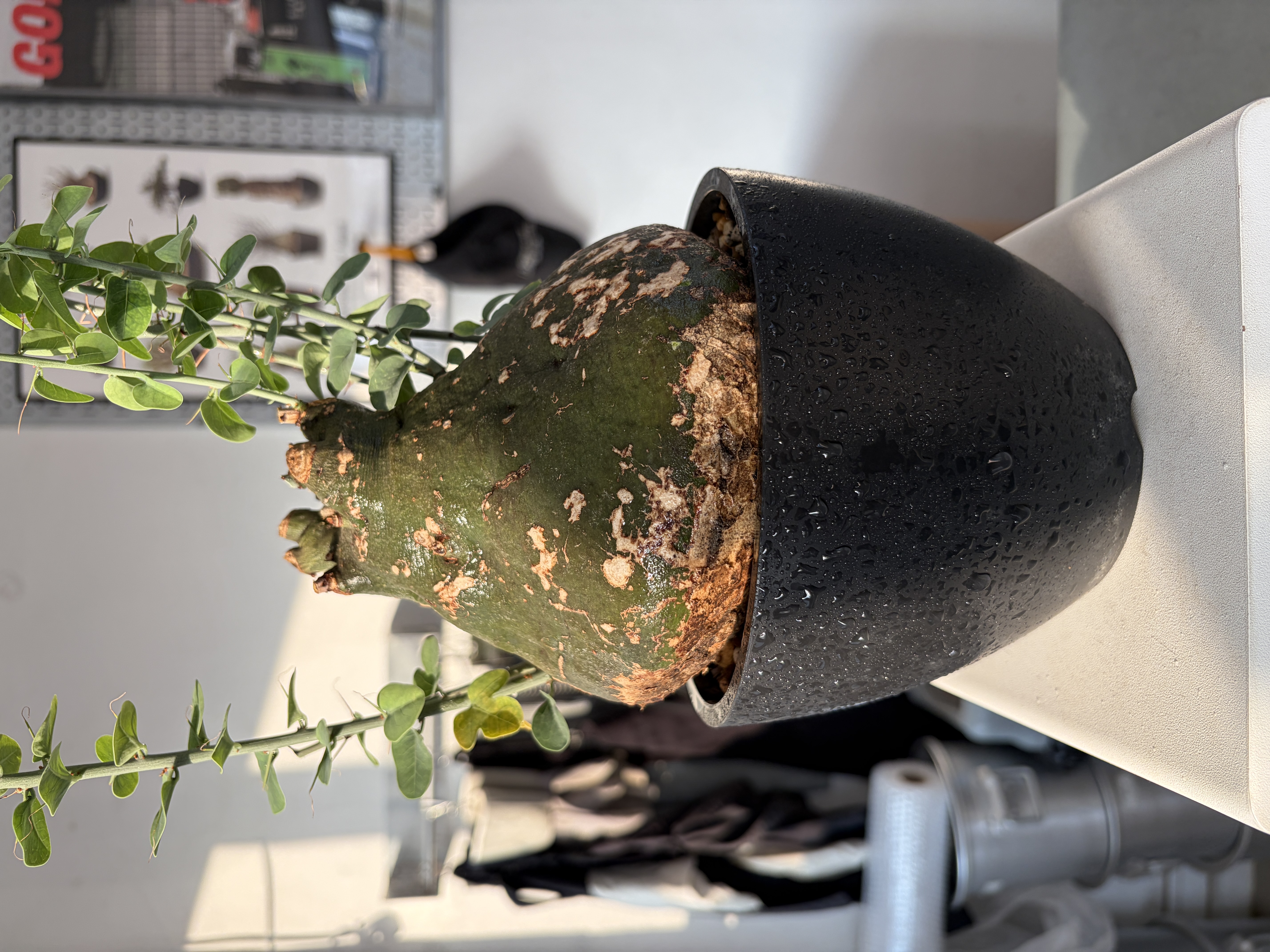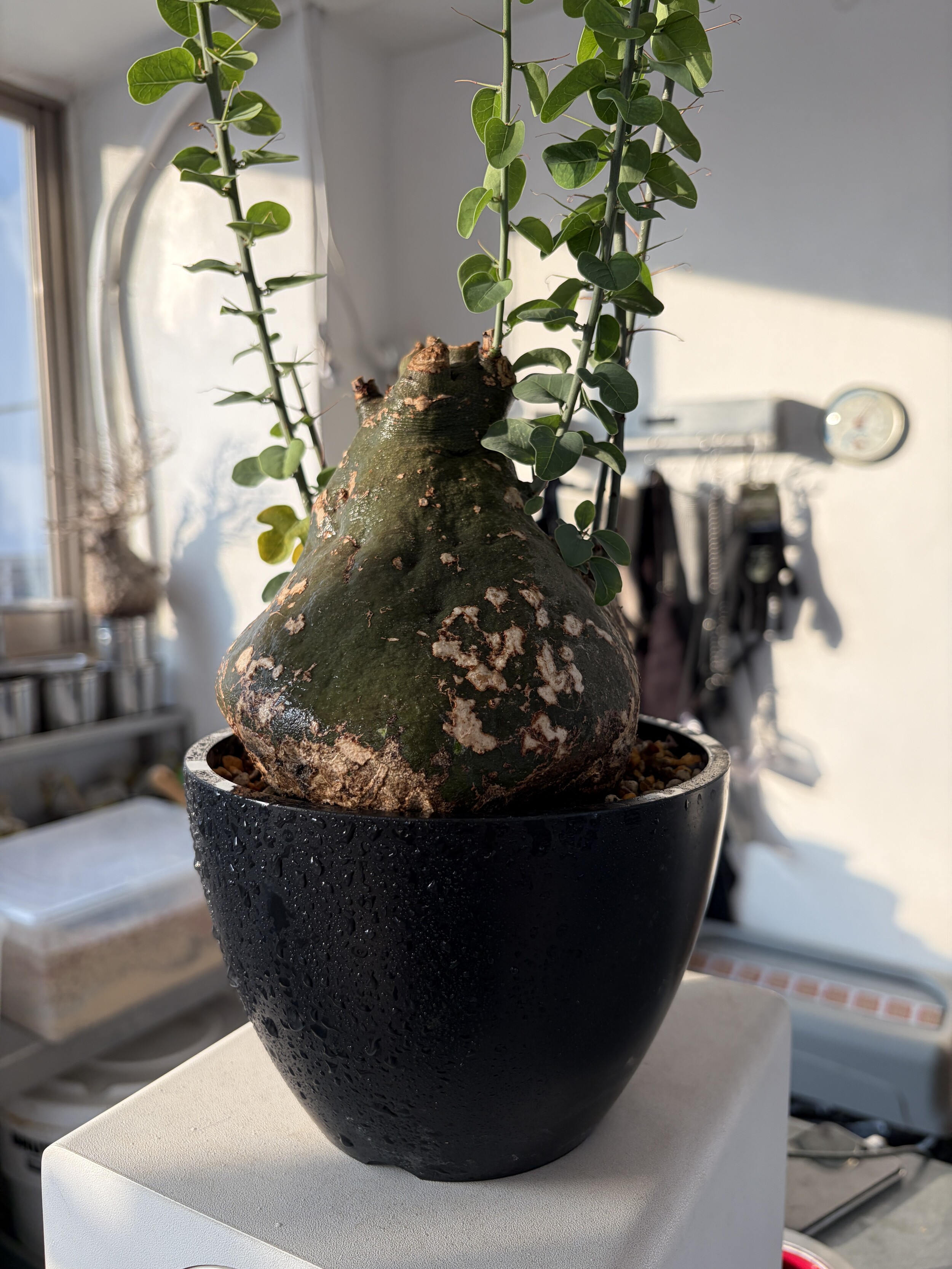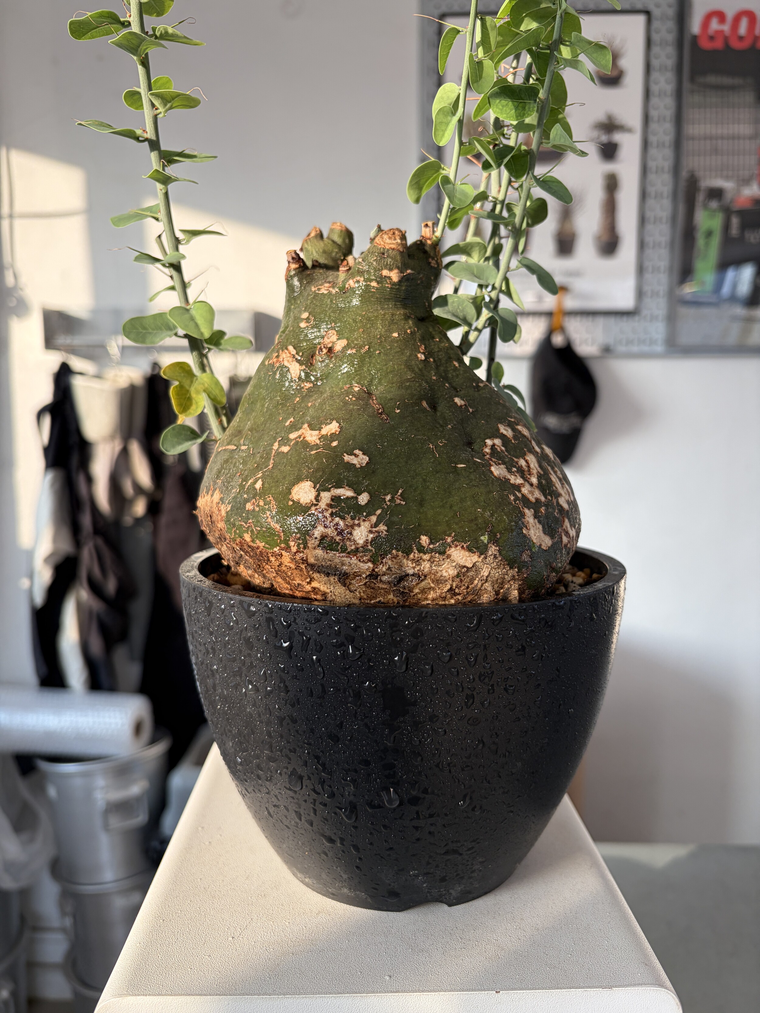 'Caudex' 식물들은 늦가을부터 자연스럽게 잎이 떨어집니다. (환경에 따라 잎이 지지 않을 수 있습니다.) 잎이 떨어지기 시작하면 서서히 물을 줄여나가며 휴면기인 겨울 동안에는 2-3주 1회 가볍게 분무 해주시면 됩니다.