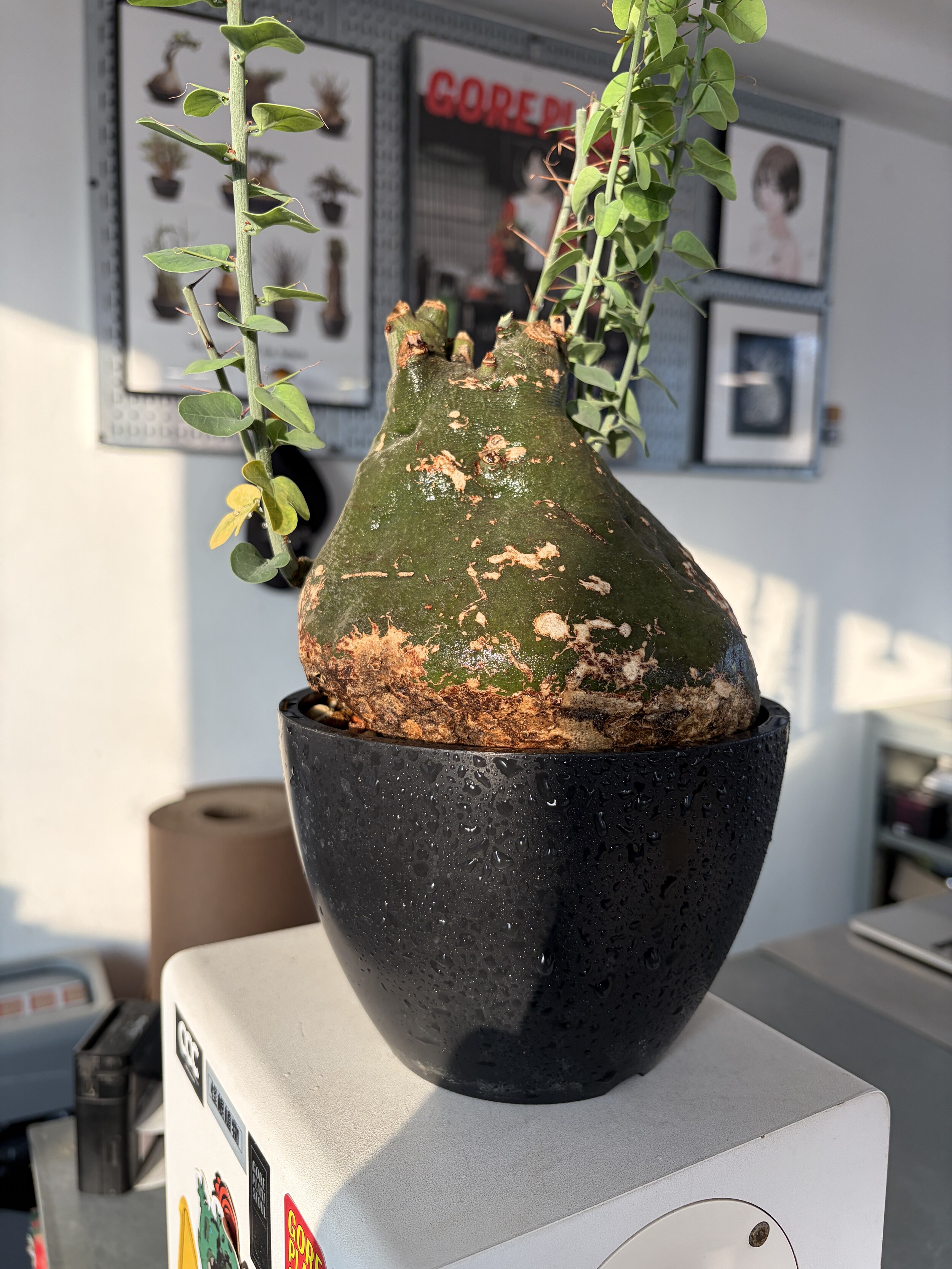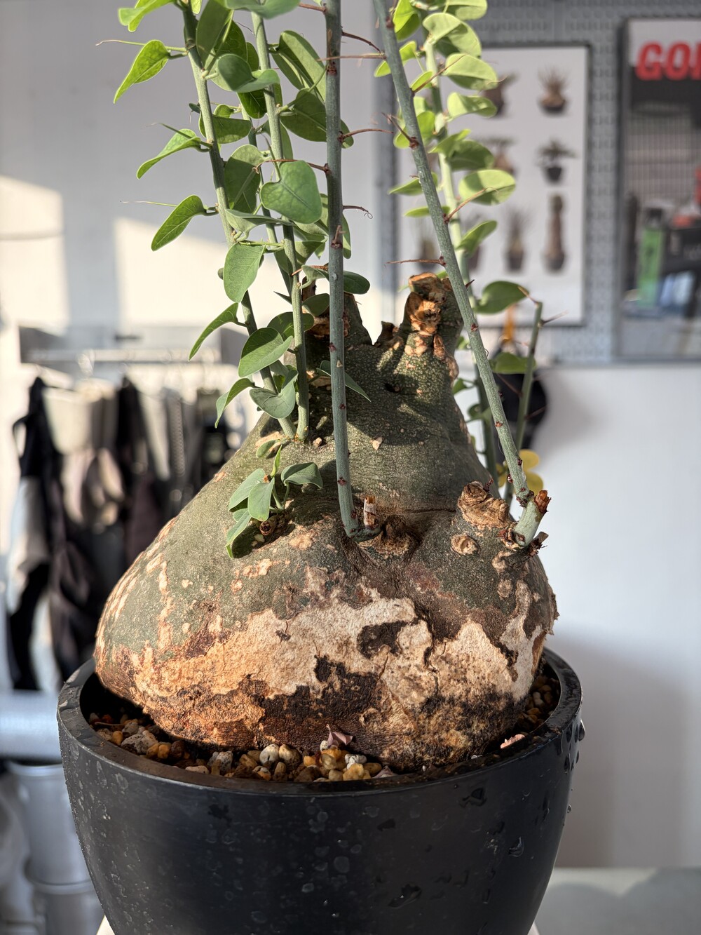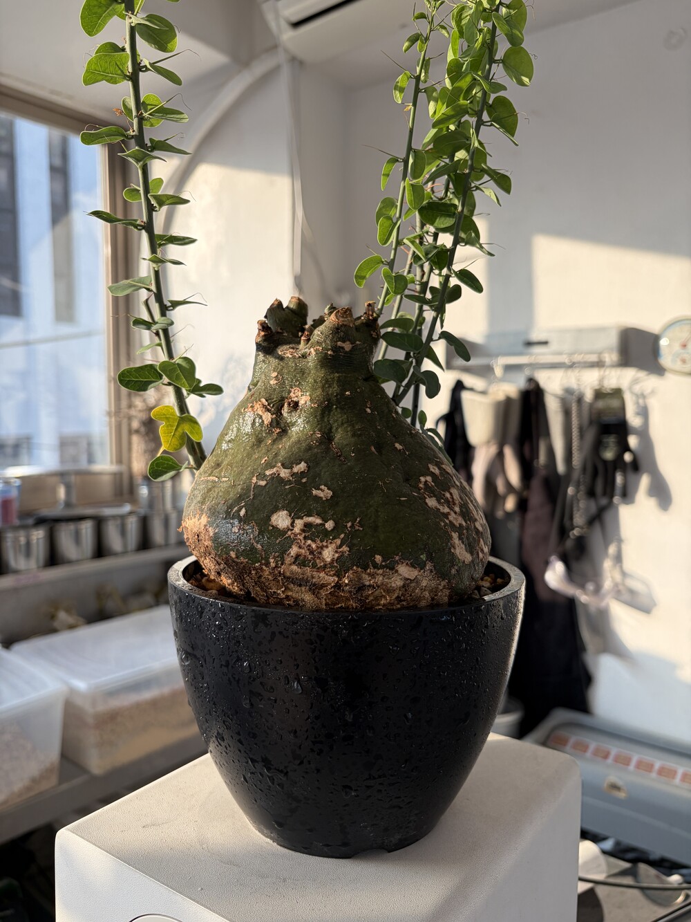 'Caudex' 식물들은 늦가을부터 자연스럽게 잎이 떨어집니다. (환경에 따라 잎이 지지 않을 수 있습니다.) 잎이 떨어지기 시작하면 서서히 물을 줄여나가며 휴면기인 겨울 동안에는 2-3주 1회 가볍게 분무 해주시면 됩니다.