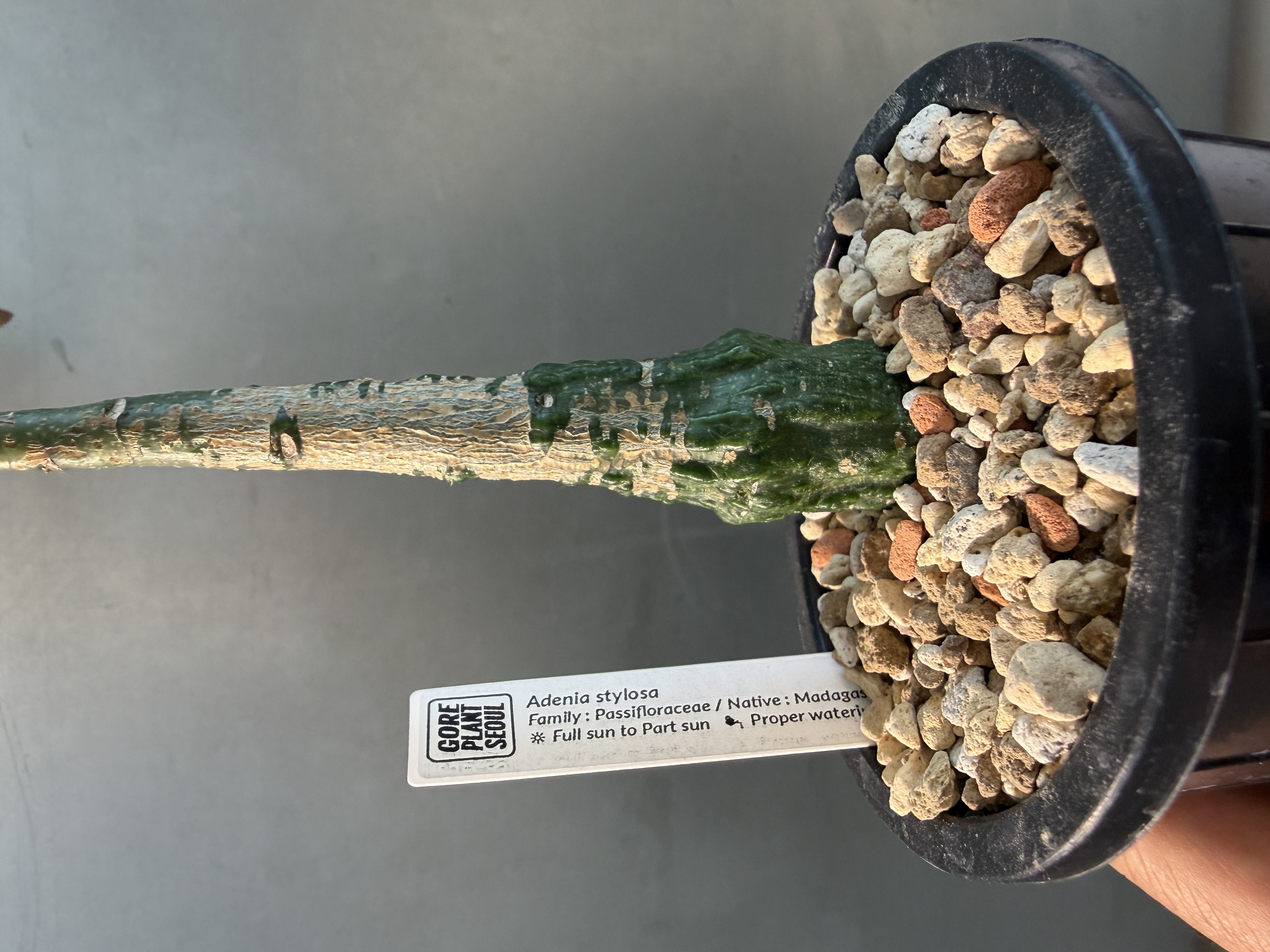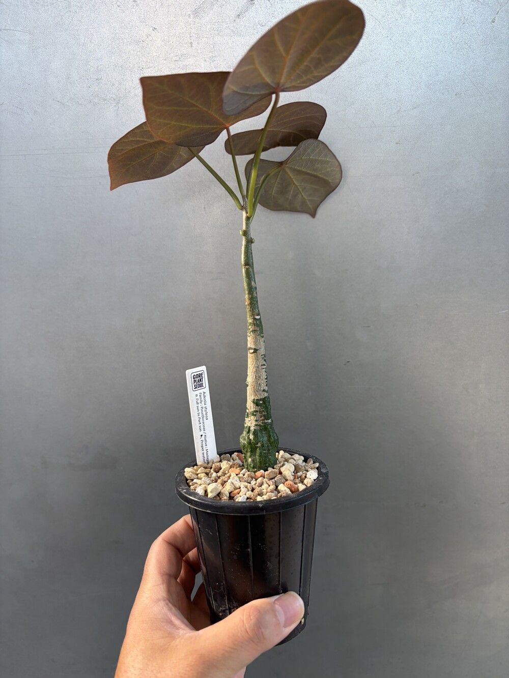 'Caudex' 식물들은 늦가을부터 자연스럽게 잎이 떨어집니다. (환경에 따라 잎이 지지 않을 수 있습니다.) 잎이 떨어지기 시작하면 서서히 물을 줄여나가며 휴면기인 겨울 동안에는 2-3주 1회 가볍게 분무 해주시면 됩니다.