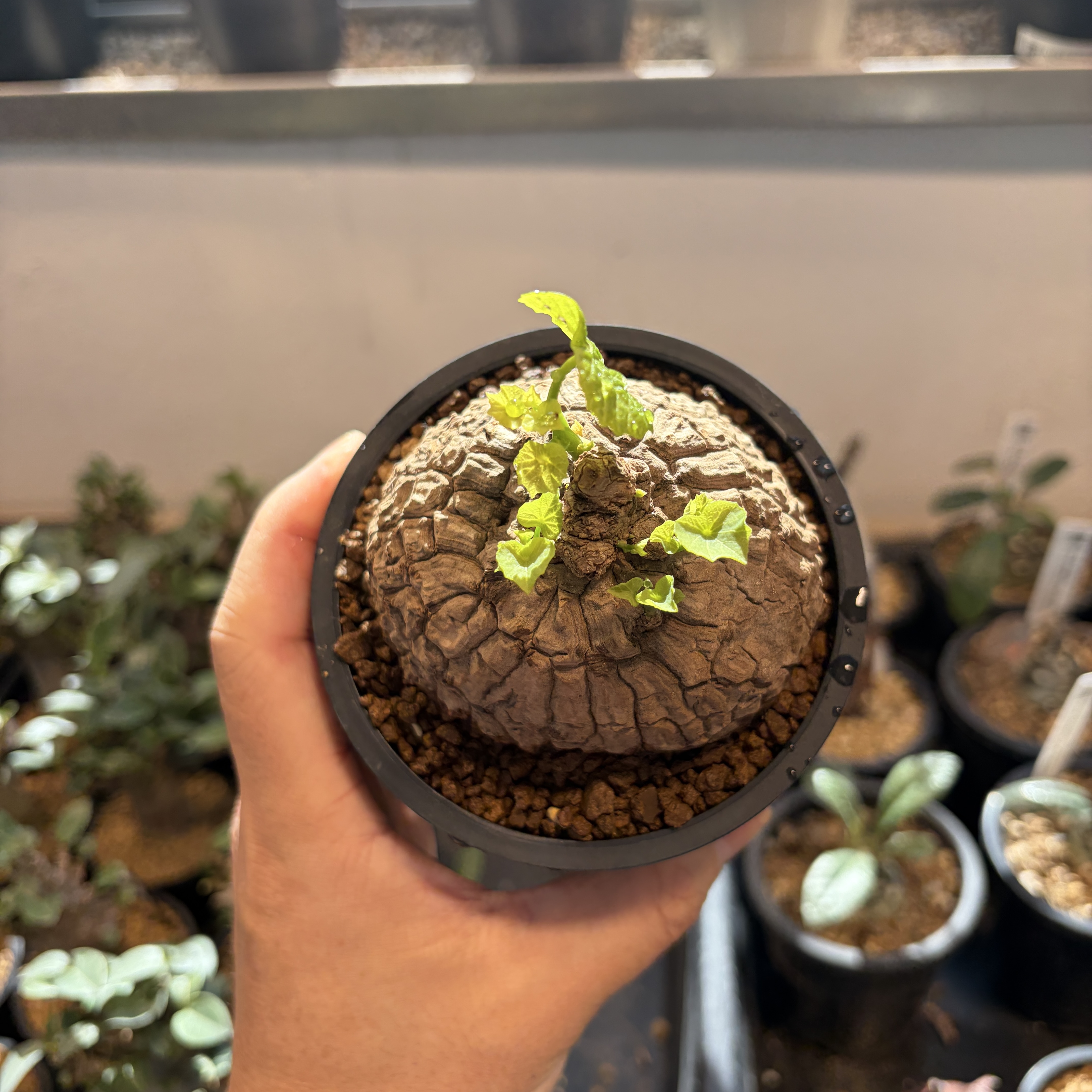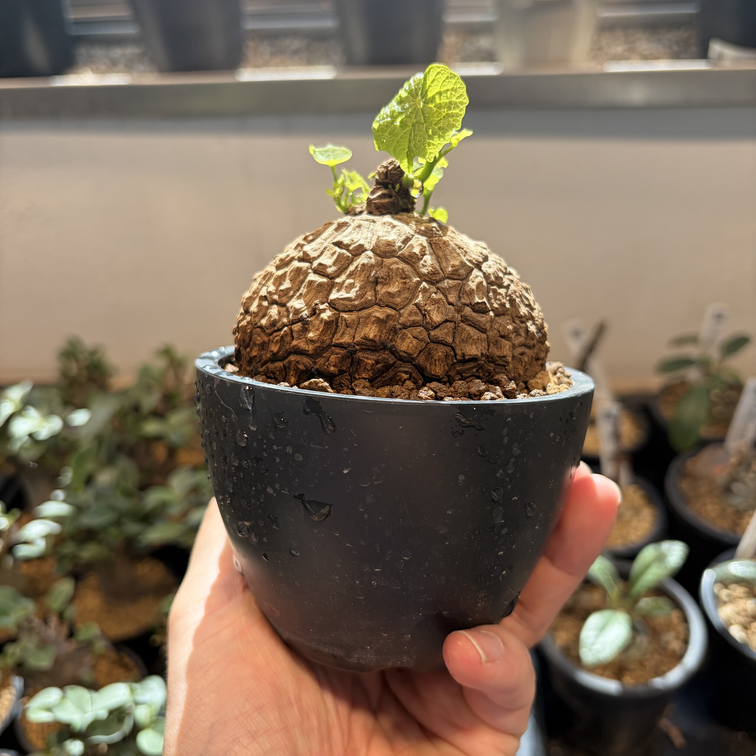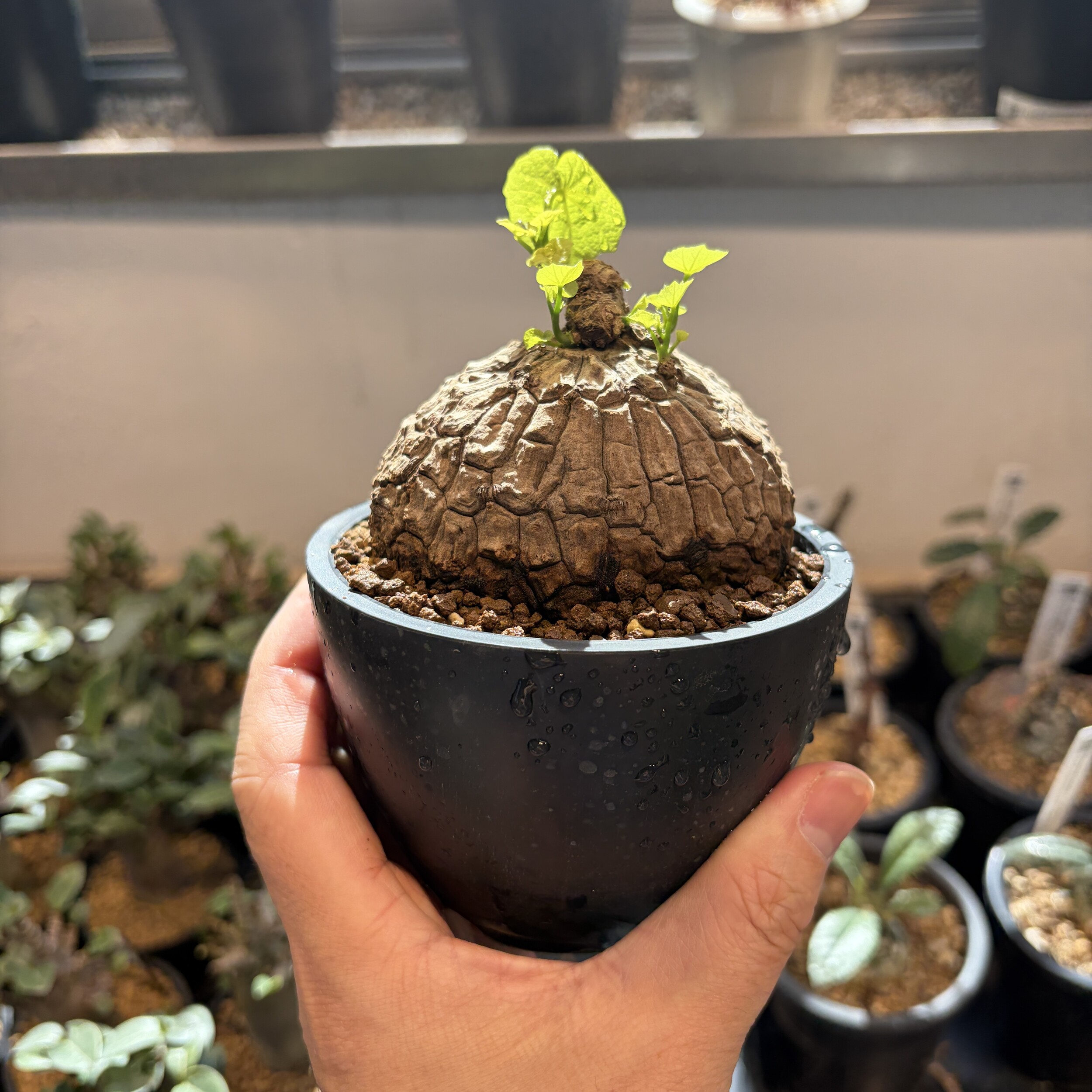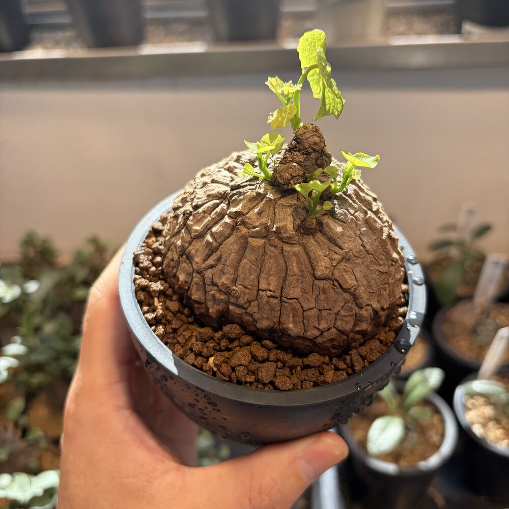 'Caudex' 식물들은 늦가을부터 자연스럽게 잎이 떨어집니다. (환경에 따라 잎이 지지 않을 수 있습니다.) 잎이 떨어지기 시작하면 서서히 물을 줄여나가며 휴면기인 겨울 동안에는 2-3주 1회 가볍게 분무 해주시면 됩니다.