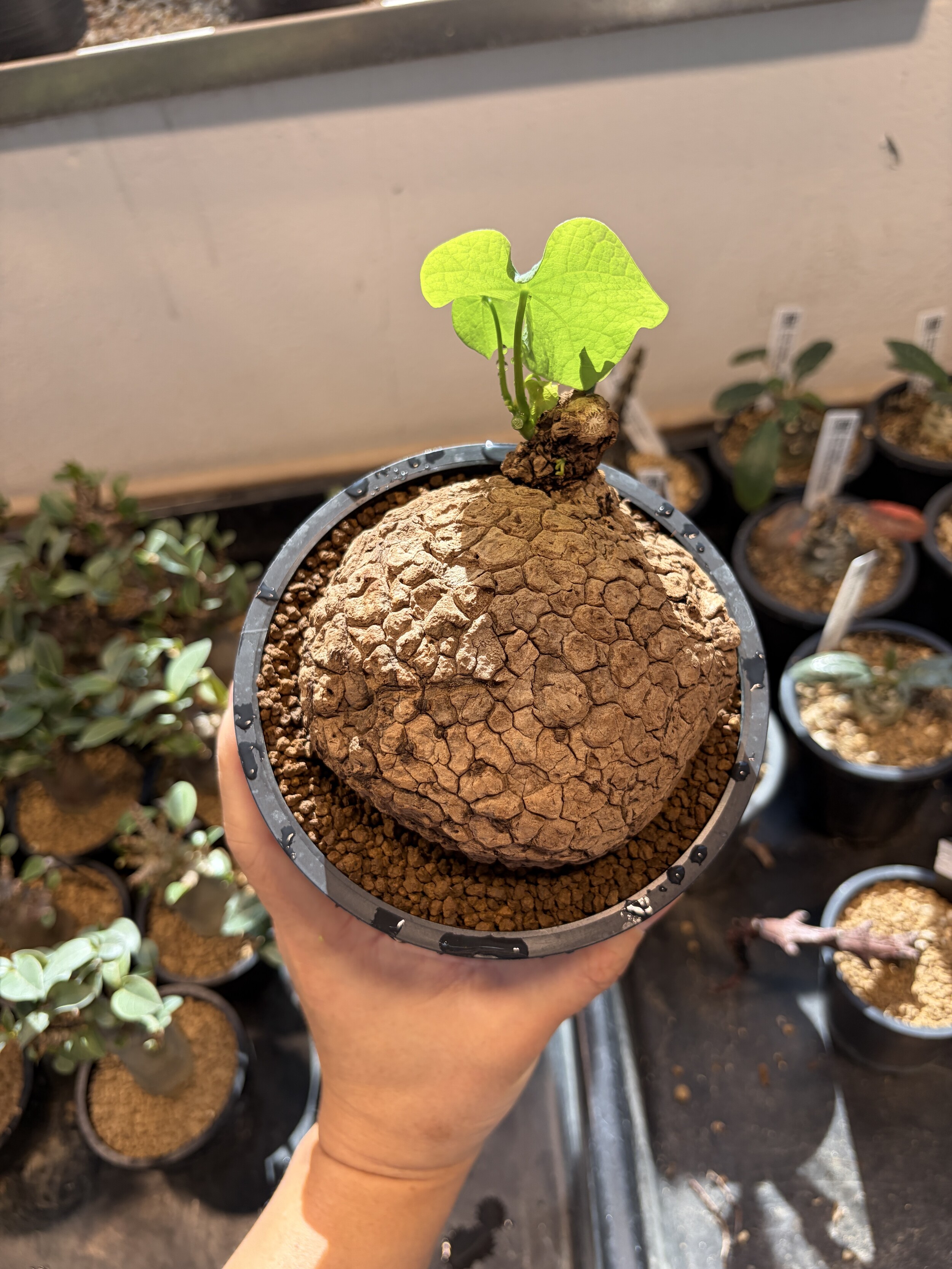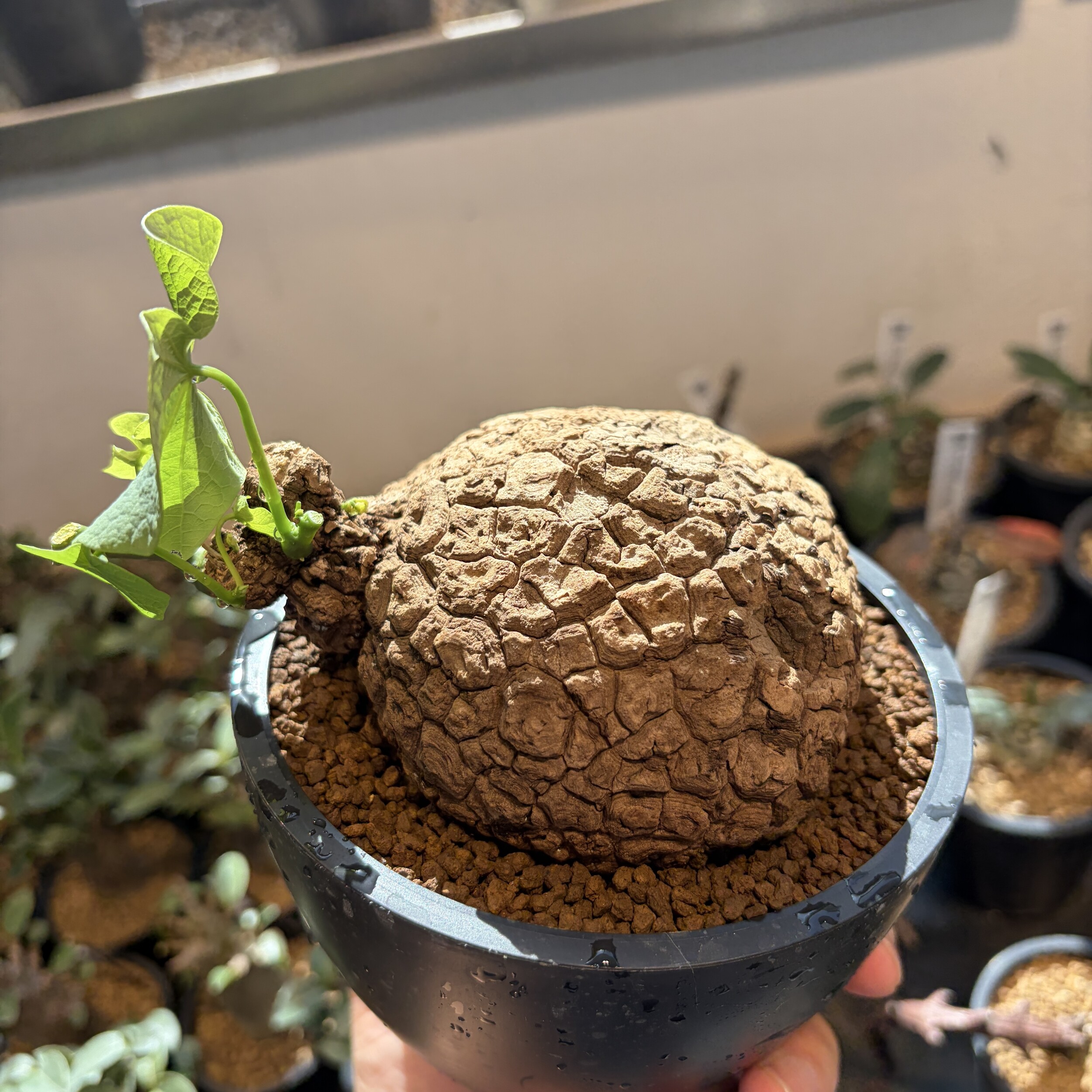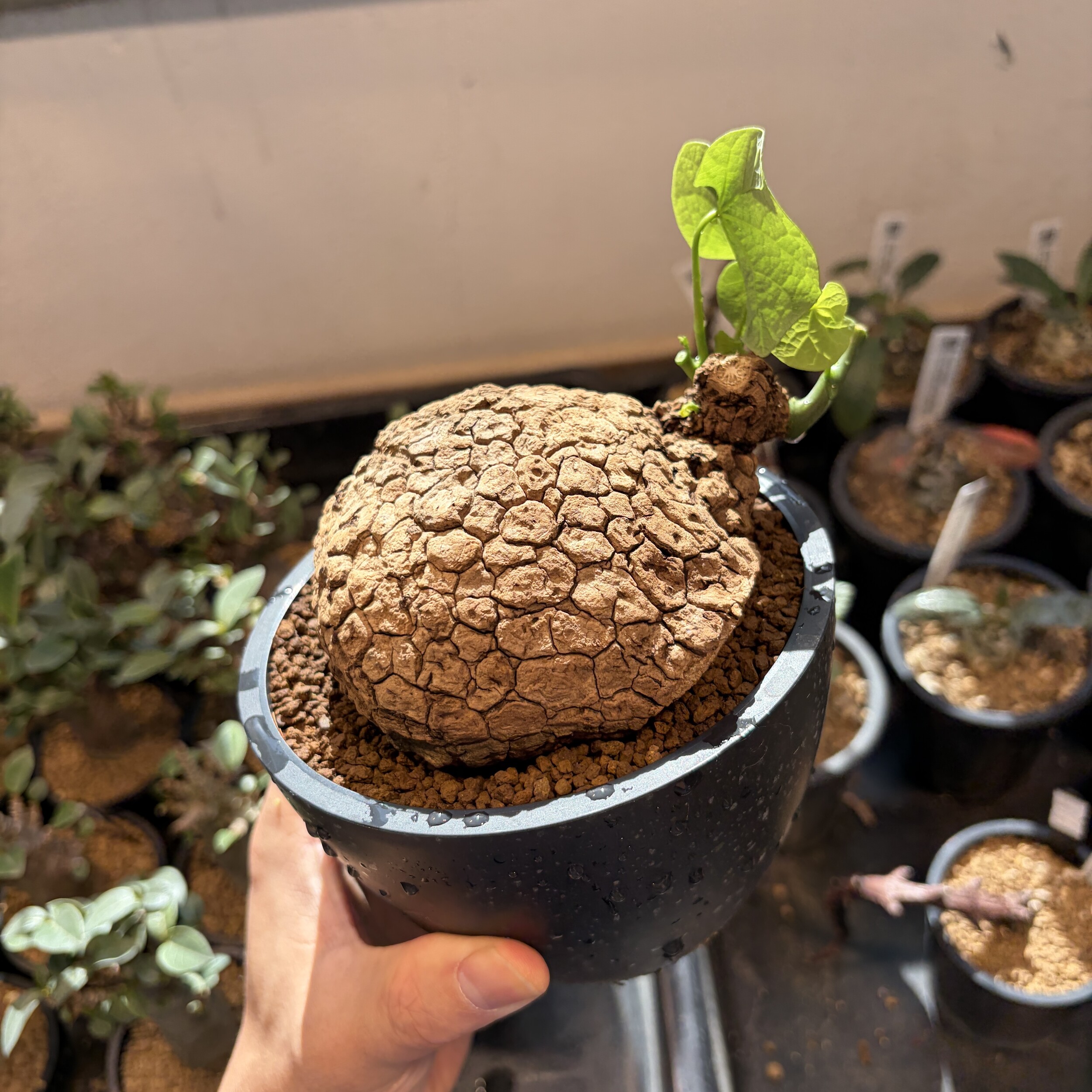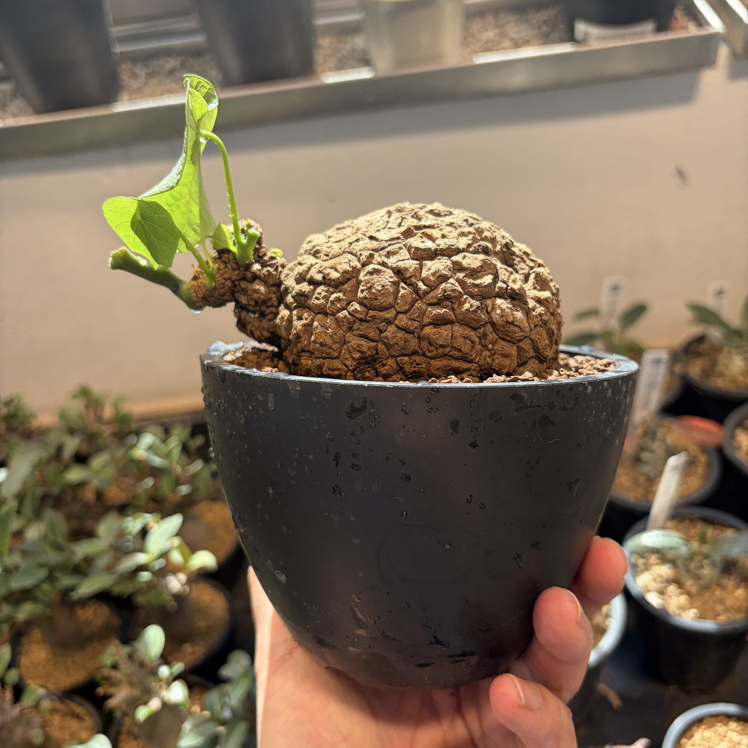 'Caudex' 식물들은 늦가을부터 자연스럽게 잎이 떨어집니다. (환경에 따라 잎이 지지 않을 수 있습니다.) 잎이 떨어지기 시작하면 서서히 물을 줄여나가며 휴면기인 겨울 동안에는 2-3주 1회 가볍게 분무 해주시면 됩니다.