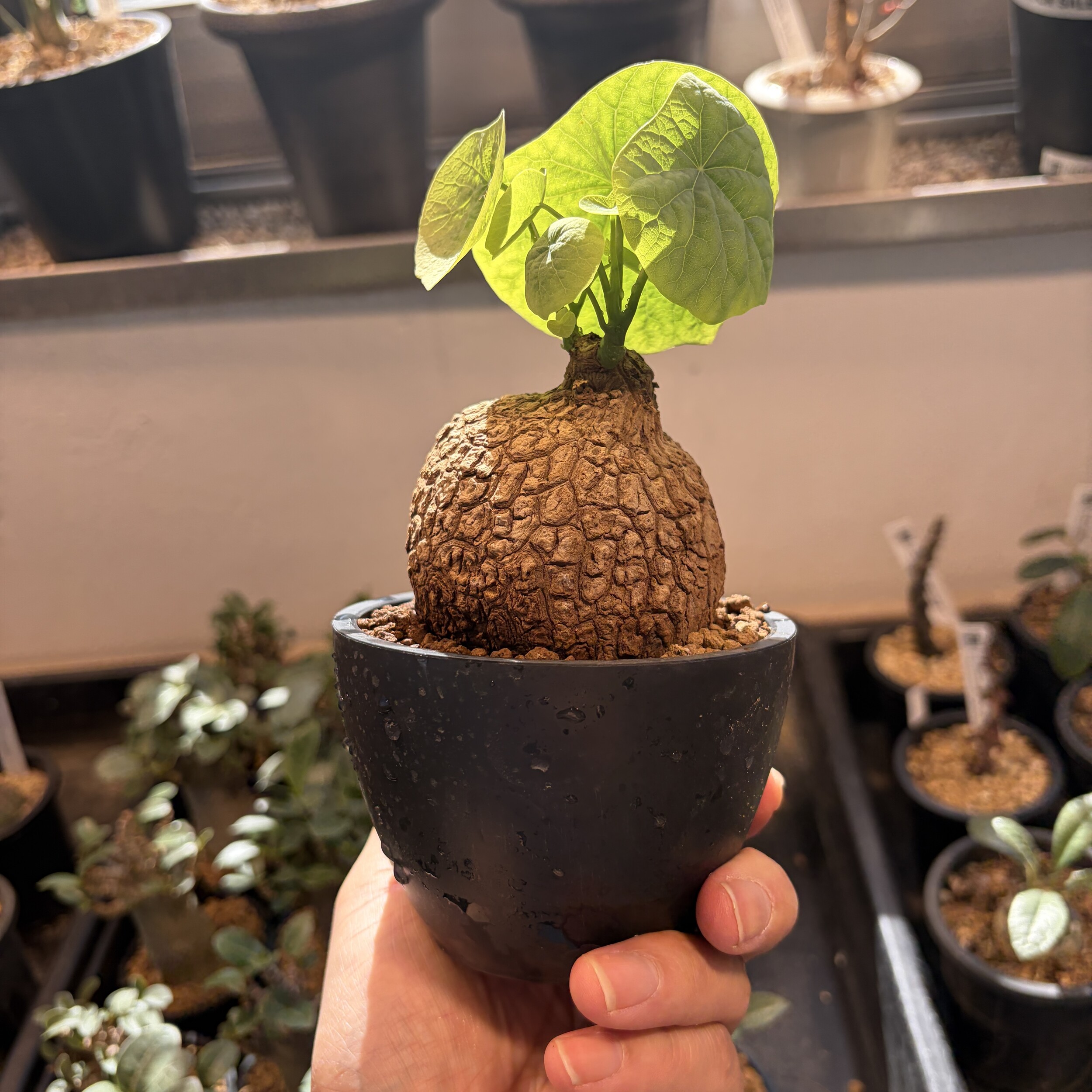 'Caudex' 식물들은 늦가을부터 자연스럽게 잎이 떨어집니다. (환경에 따라 잎이 지지 않을 수 있습니다.) 잎이 떨어지기 시작하면 서서히 물을 줄여나가며 휴면기인 겨울 동안에는 2-3주 1회 가볍게 분무 해주시면 됩니다.
