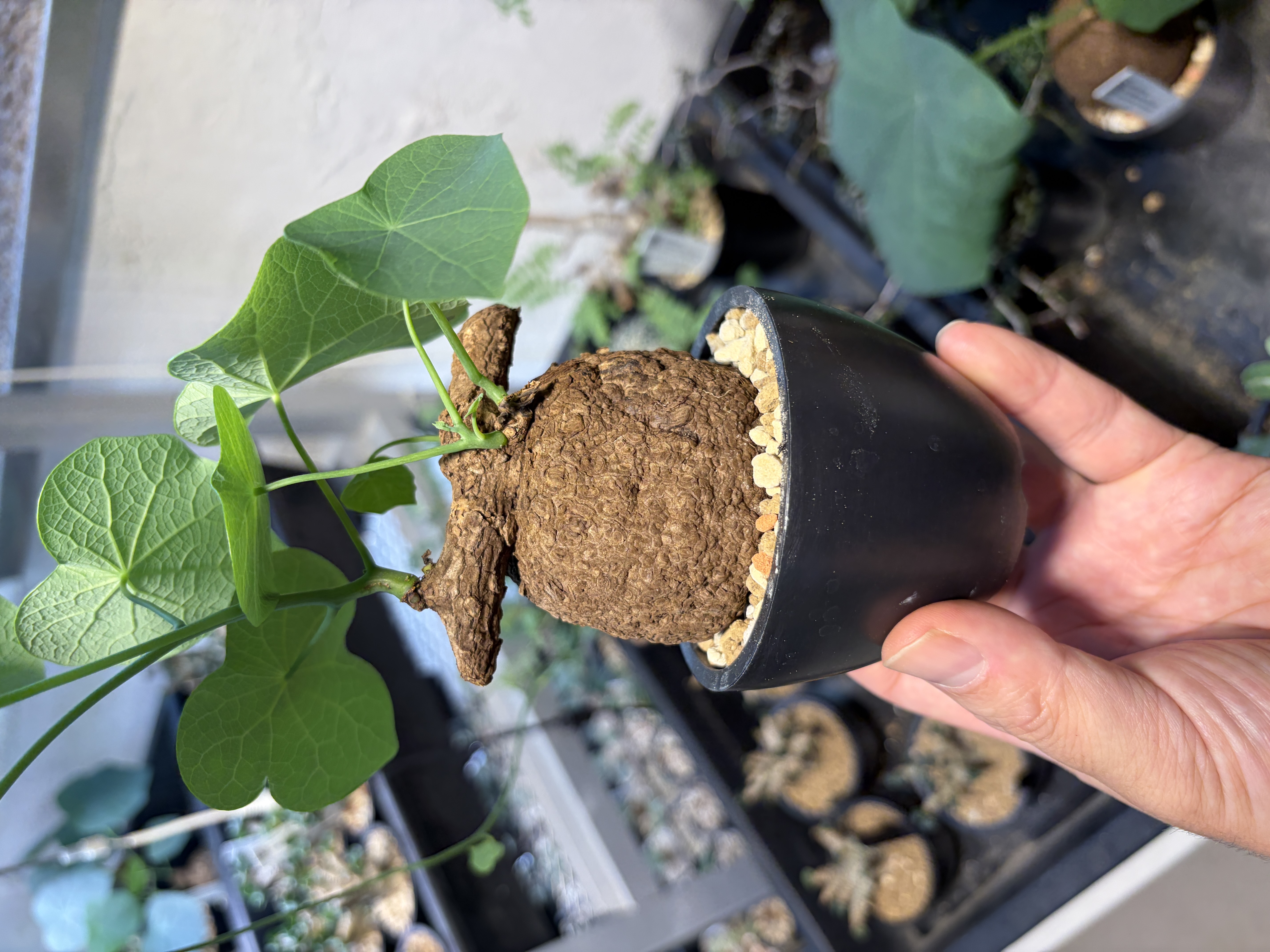 'Caudex' 식물들은 늦가을부터 자연스럽게 잎이 떨어집니다. (환경에 따라 잎이 지지 않을 수 있습니다.) 잎이 떨어지기 시작하면 서서히 물을 줄여나가며 휴면기인 겨울 동안에는 2-3주 1회 가볍게 분무 해주시면 됩니다.