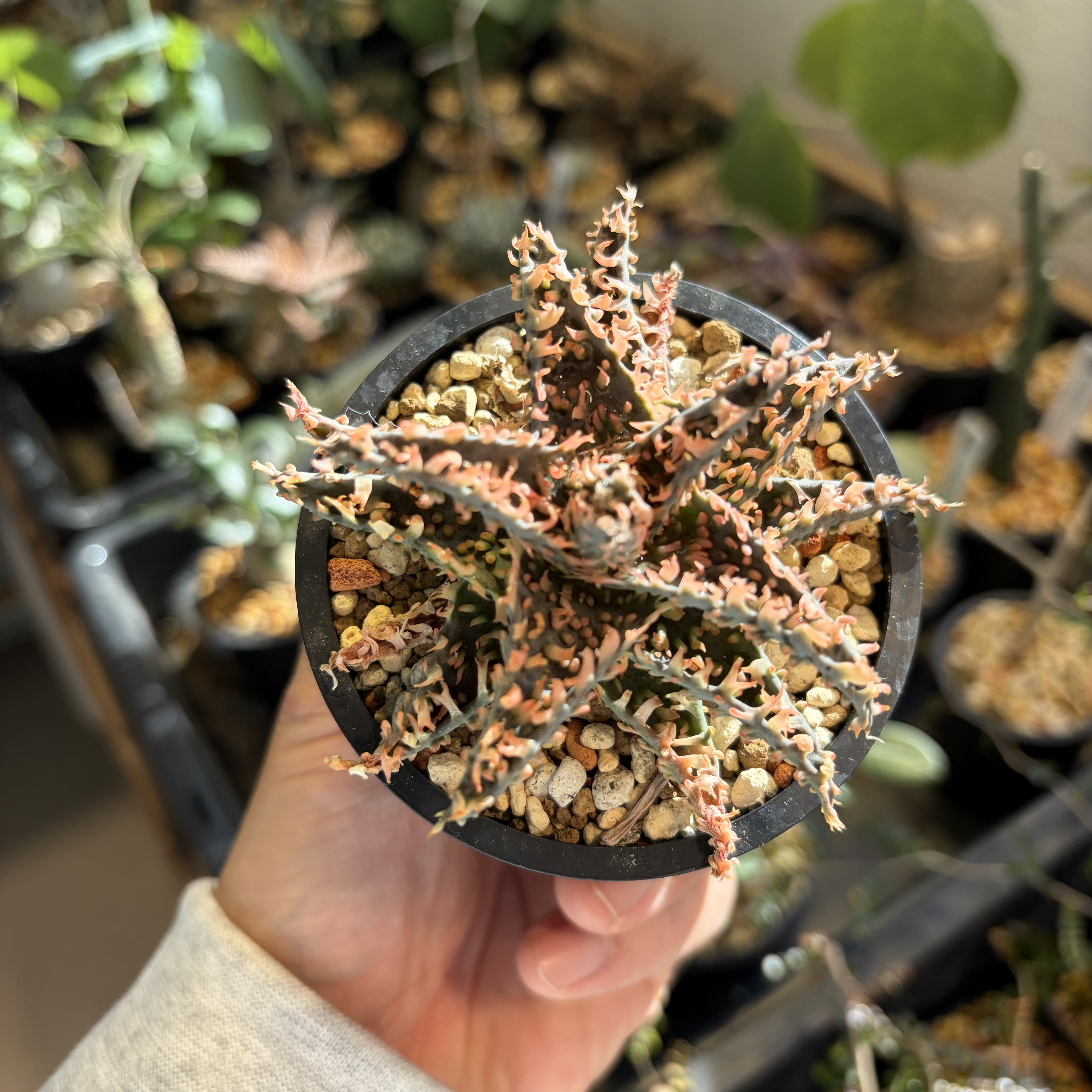 'Caudex' 식물들은 늦가을부터 자연스럽게 잎이 떨어집니다. 잎이 떨어지기 시작하면 서서히 물을 줄여나가며 휴면기인 겨울 동안에는 급수를 중단해야 합니다.