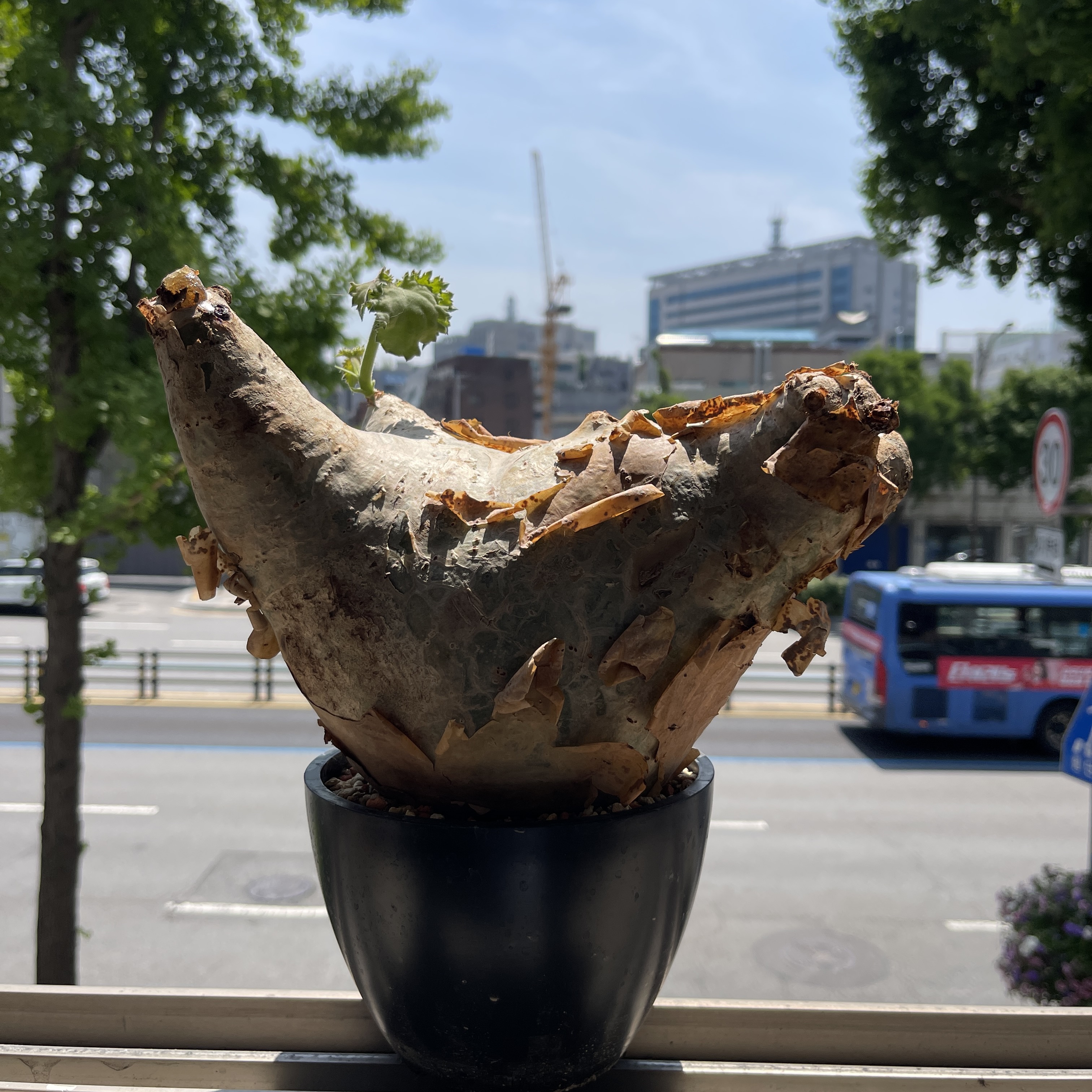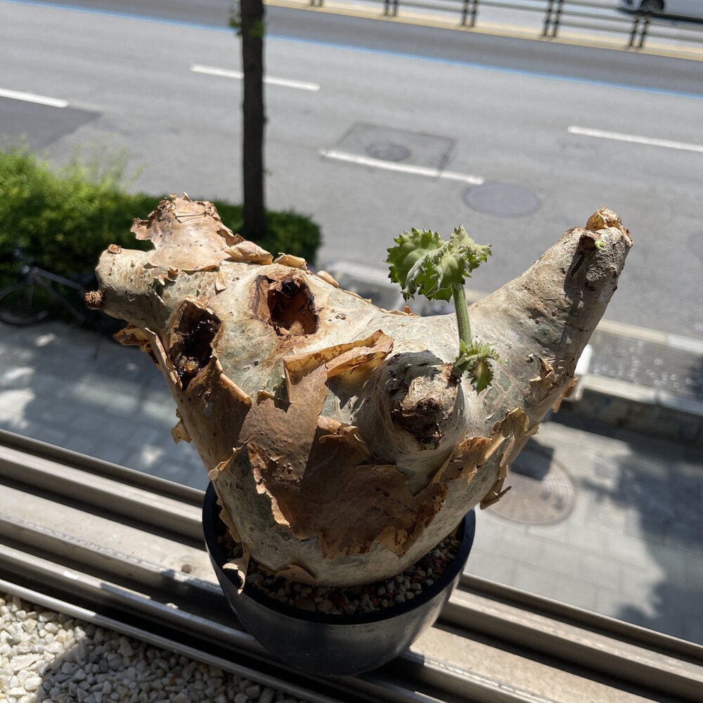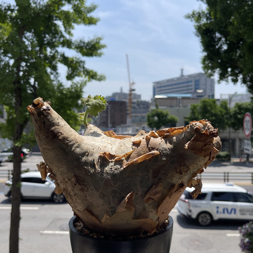 'Caudex' 식물들은 늦가을부터 자연스럽게 잎이 떨어집니다. (환경에 따라 잎이 지지 않을 수 있습니다.) 잎이 떨어지기 시작하면 서서히 물을 줄여나가며 휴면기인 겨울 동안에는 2-3주 1회 가볍게 분무 해주시면 됩니다.