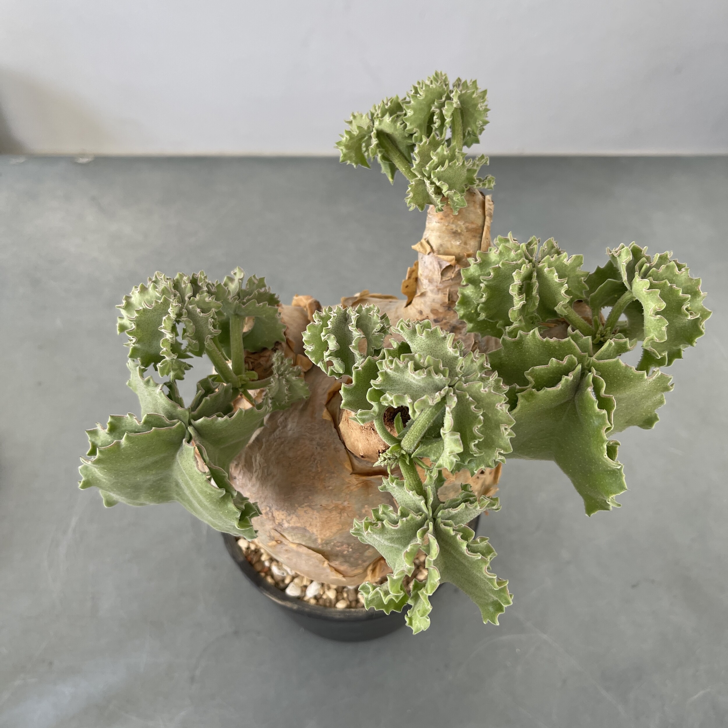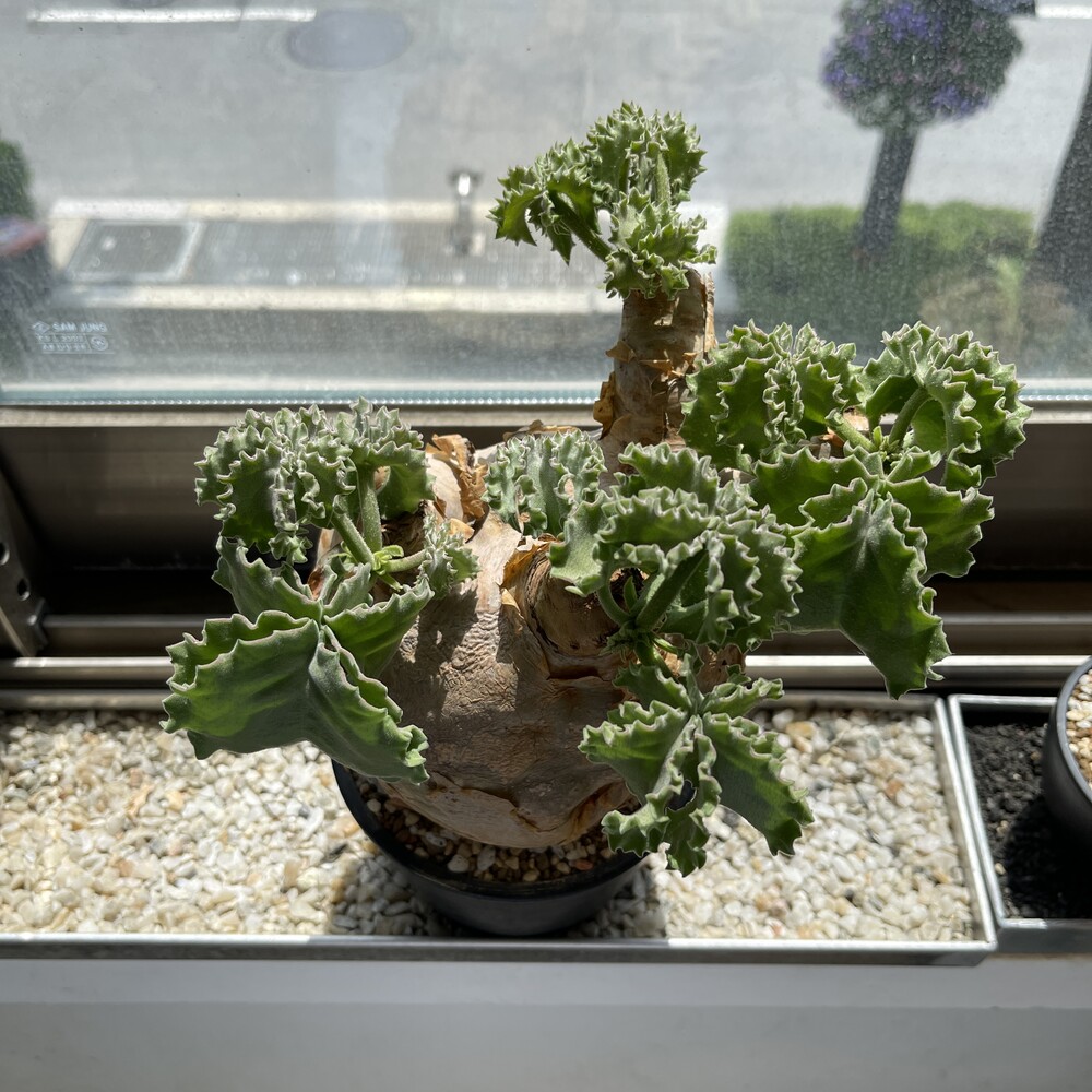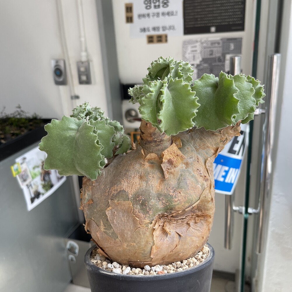 'Caudex' 식물들은 늦가을부터 자연스럽게 잎이 떨어집니다. (환경에 따라 잎이 지지 않을 수 있습니다.) 잎이 떨어지기 시작하면 서서히 물을 줄여나가며 휴면기인 겨울 동안에는 2-3주 1회 가볍게 분무 해주시면 됩니다.
